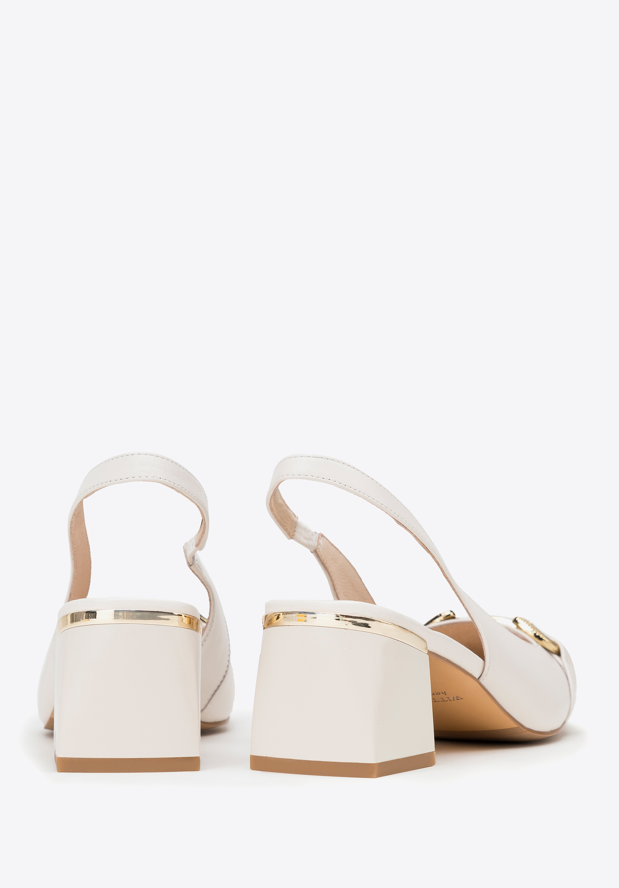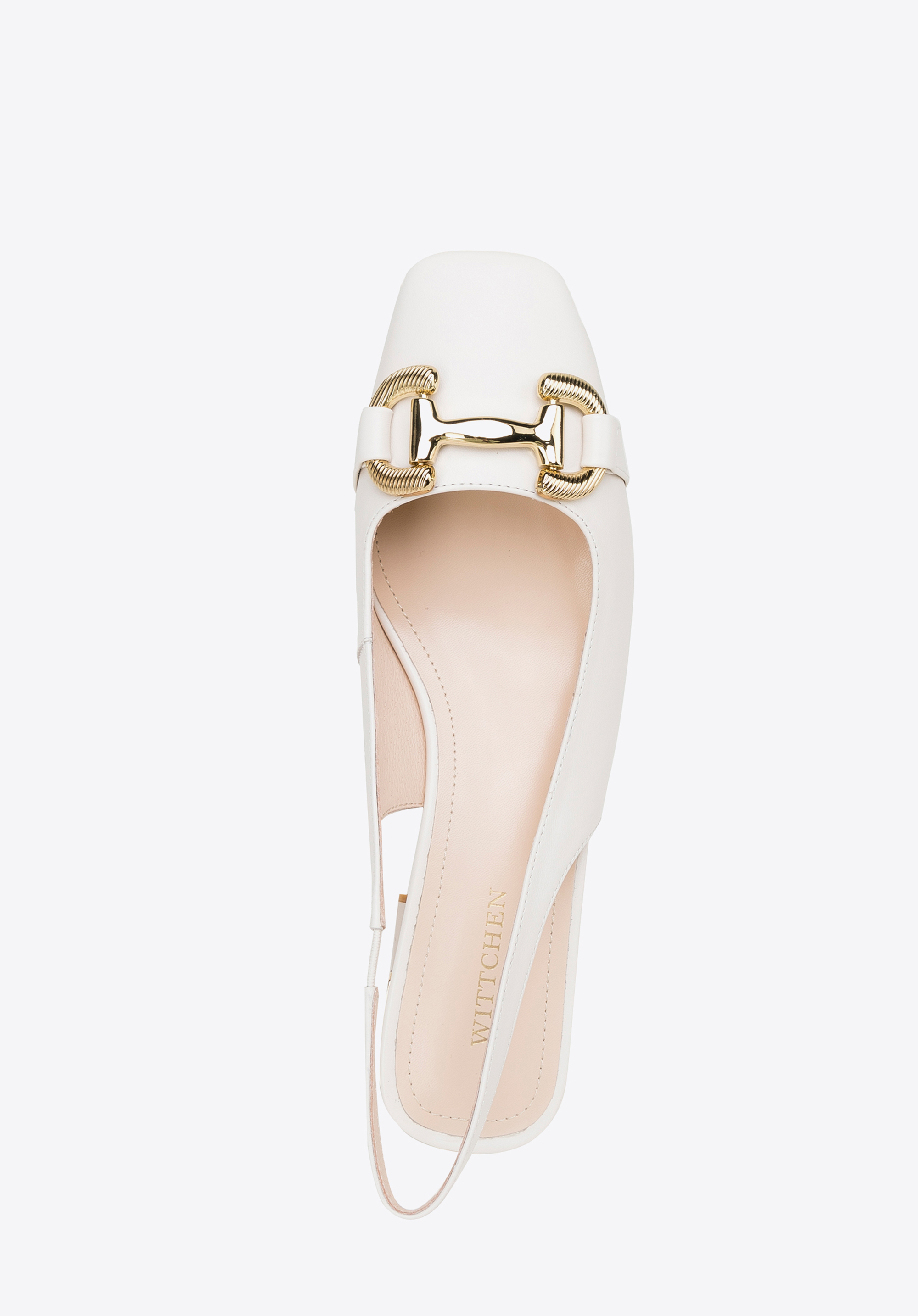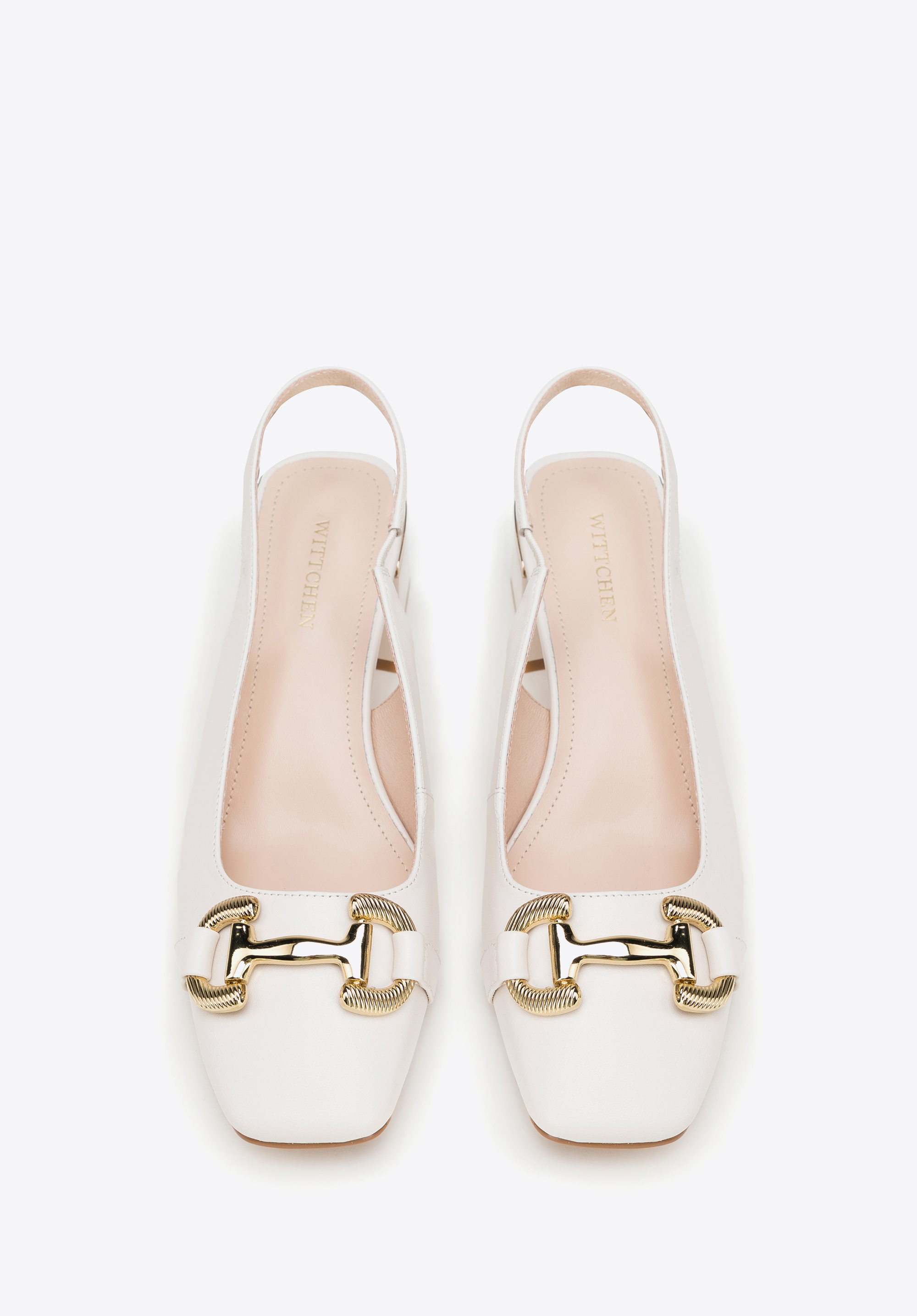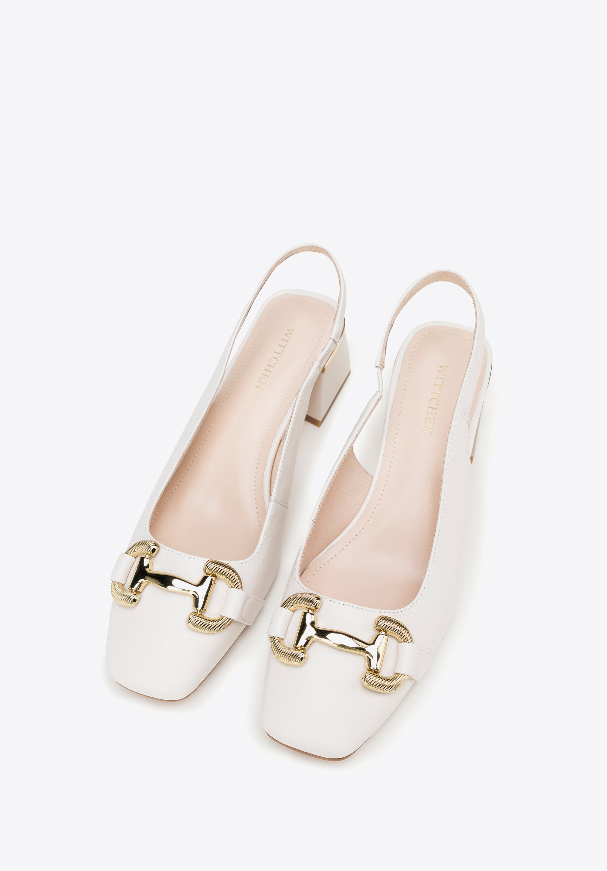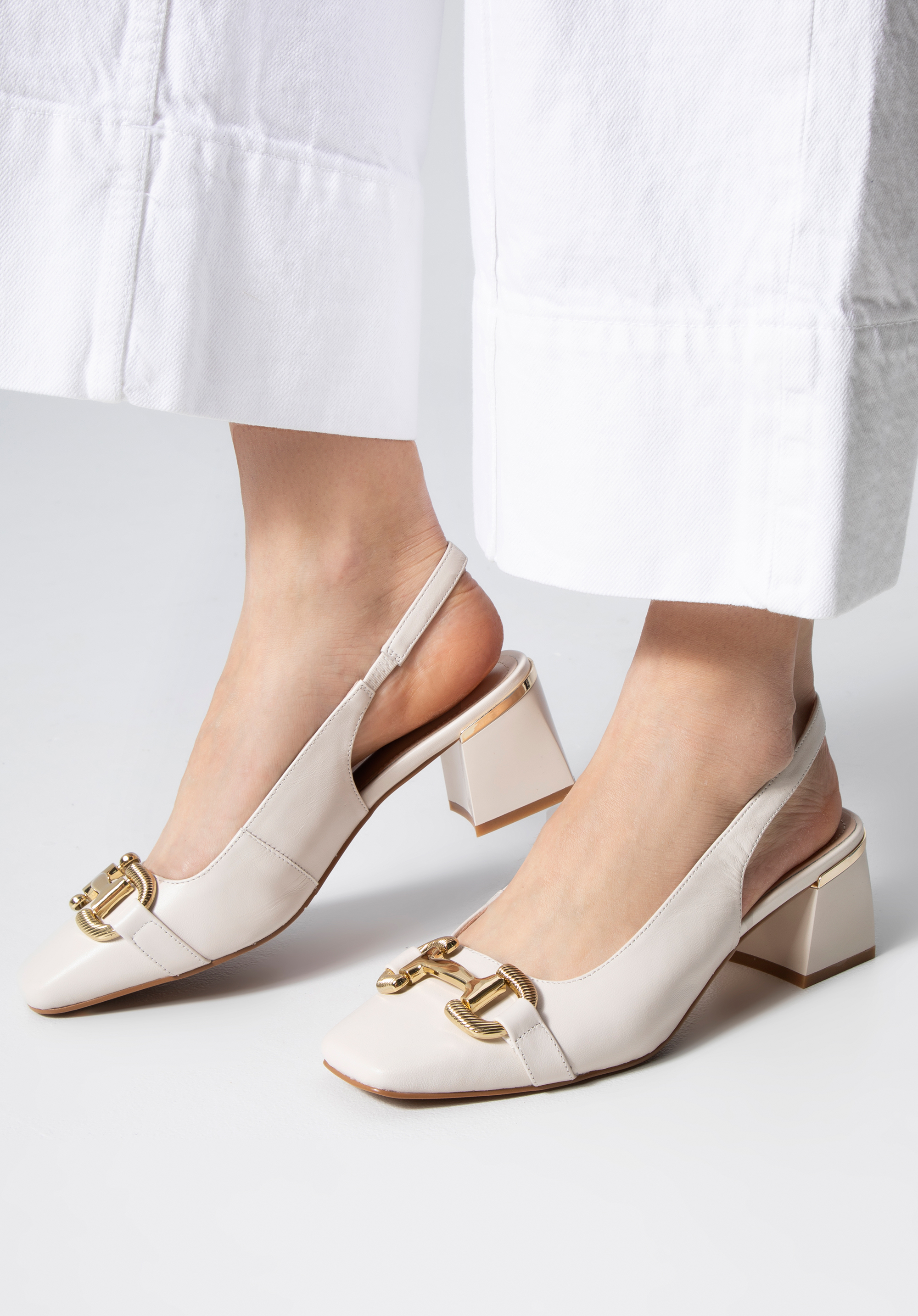 Ці елегантні туфлі - чудовий вибір для щоденного використання: як для роботи, так і після роботи. Вони виготовлені з високоякісної натуральної козячої шкіри, тому м''які і в них можна комфортно провести багато годин. Вони мають акуратний фасон sling back, який звужує ногу. Підкреслений золотистим ремінцем каблук додасть кілька сантиметрів до вашого зросту. Пряжка з декоративним тисненням додає блиск і підкреслює квадратний ніс. Носіть їх з улюбленою сукнею з коміром або додайте жіночності джинсам і сорочці великого розміру. Шкіряні туфлі з тисненою пряжкою — це класика в сучасному відтінку, яка стане в нагоді в багатьох випадках.