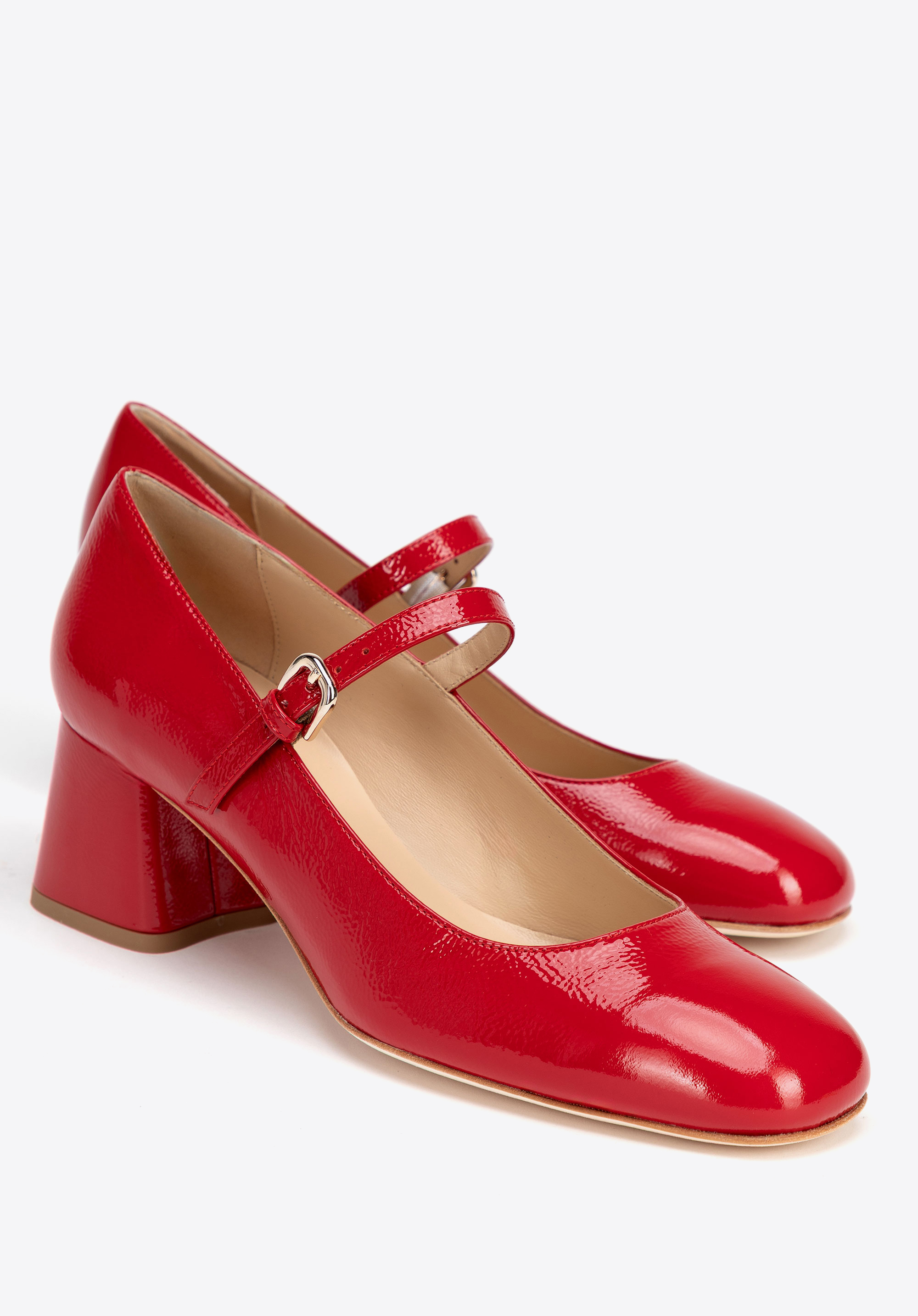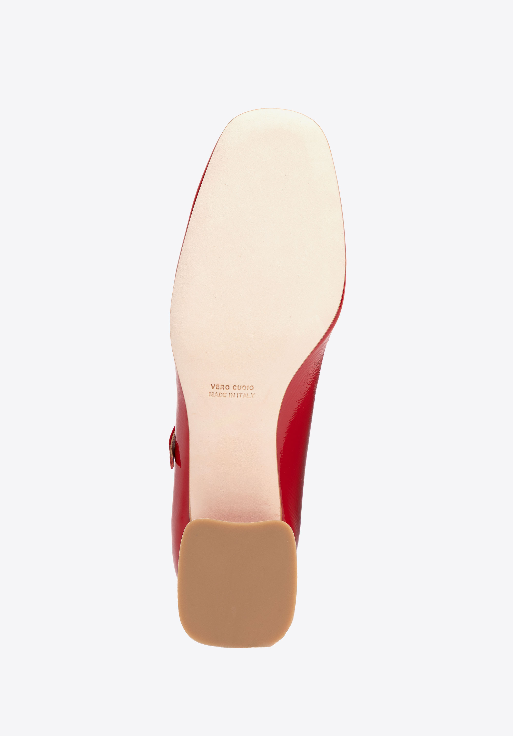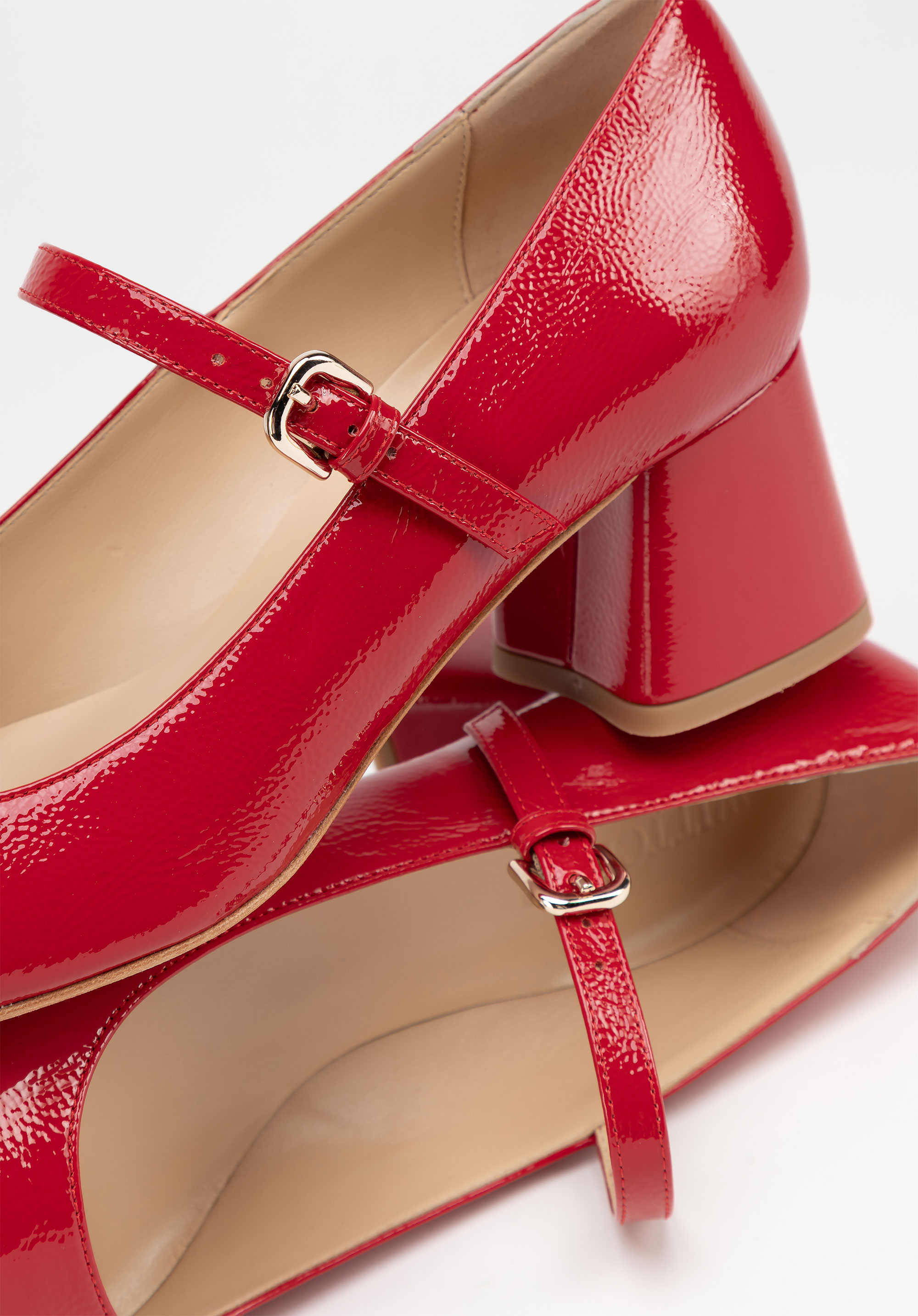Шкіряні жіночі туфлі з ремінцем Колір: червоний