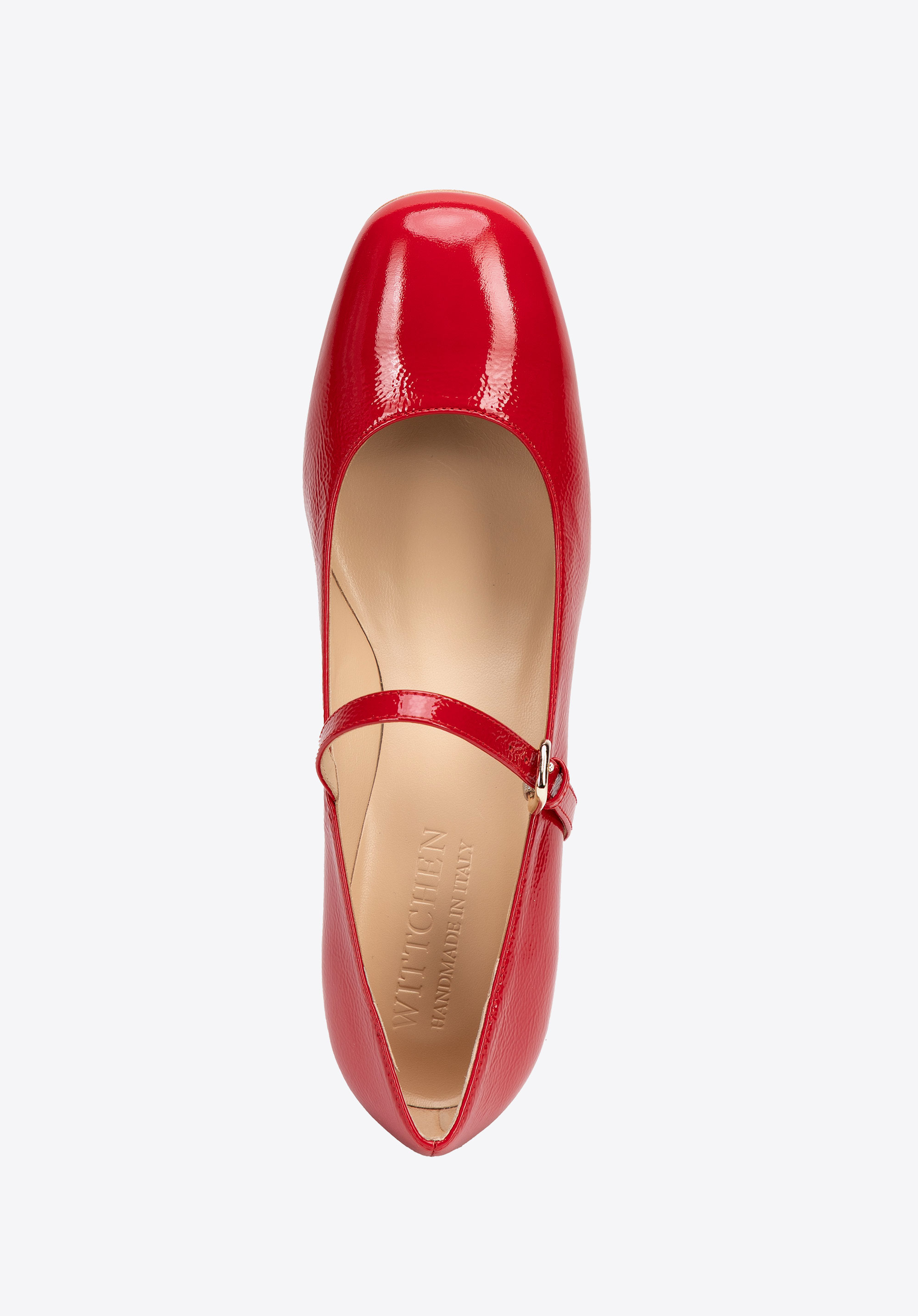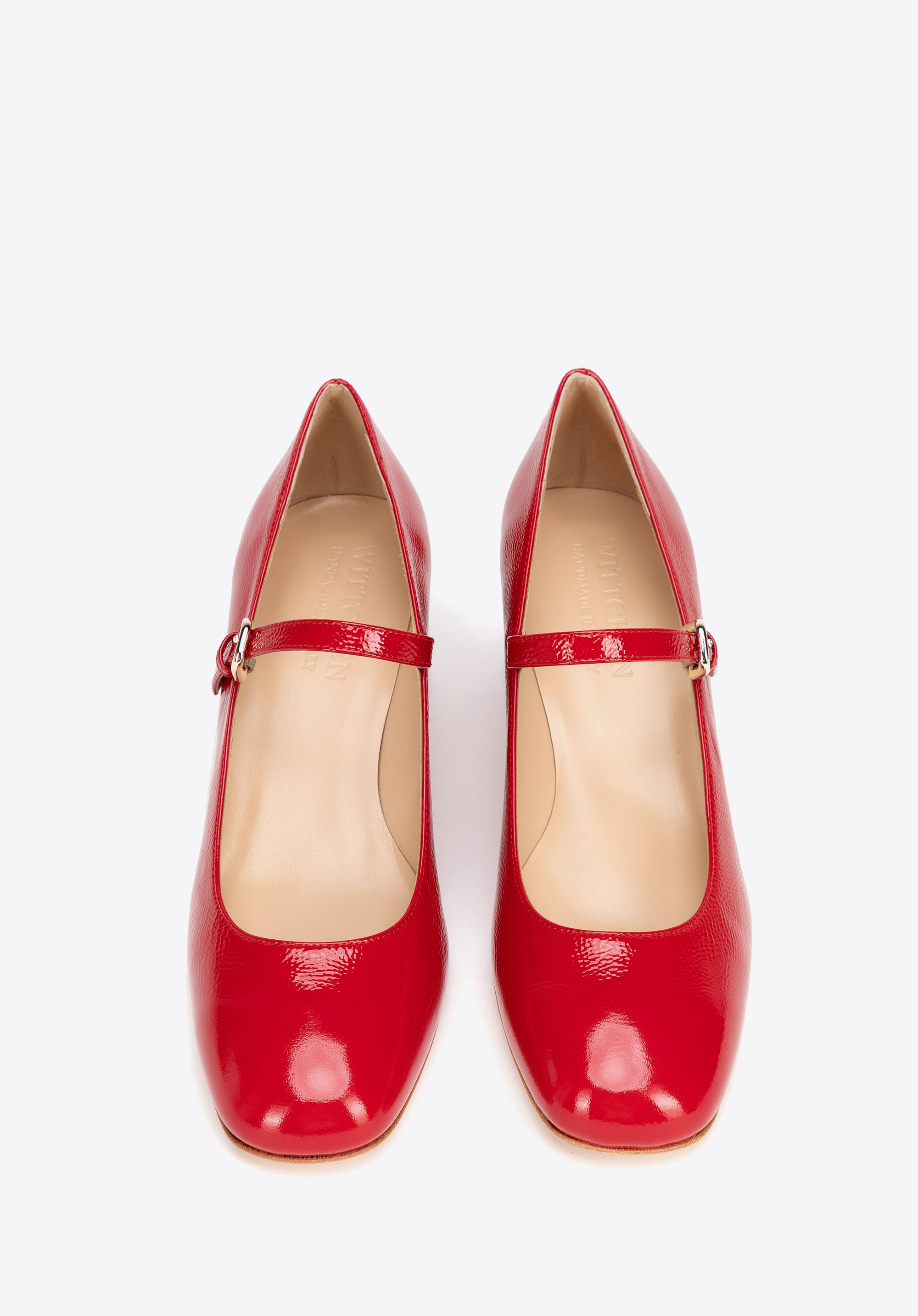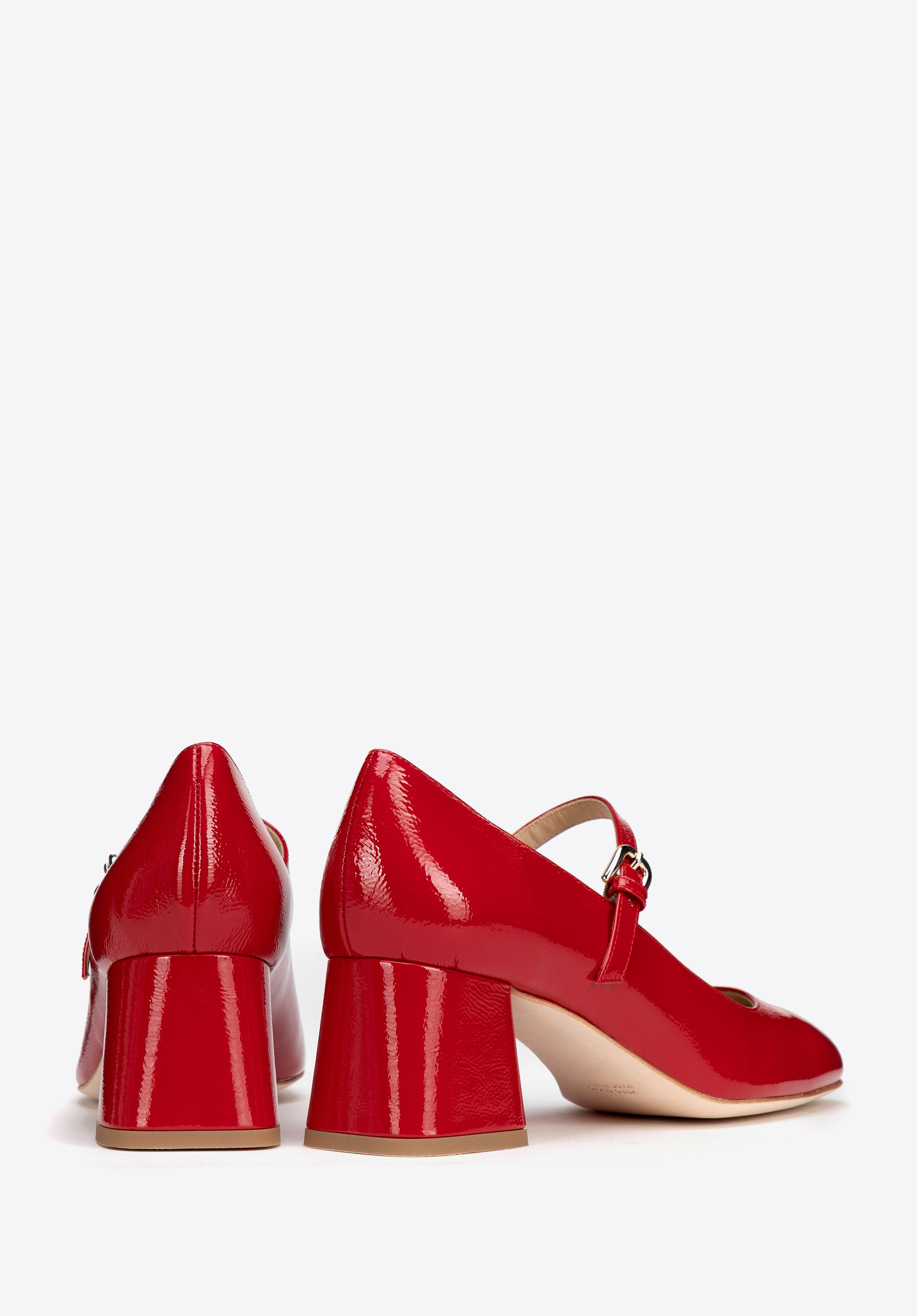 Шкіряні жіночі туфлі з ремінцем Колір: червоний