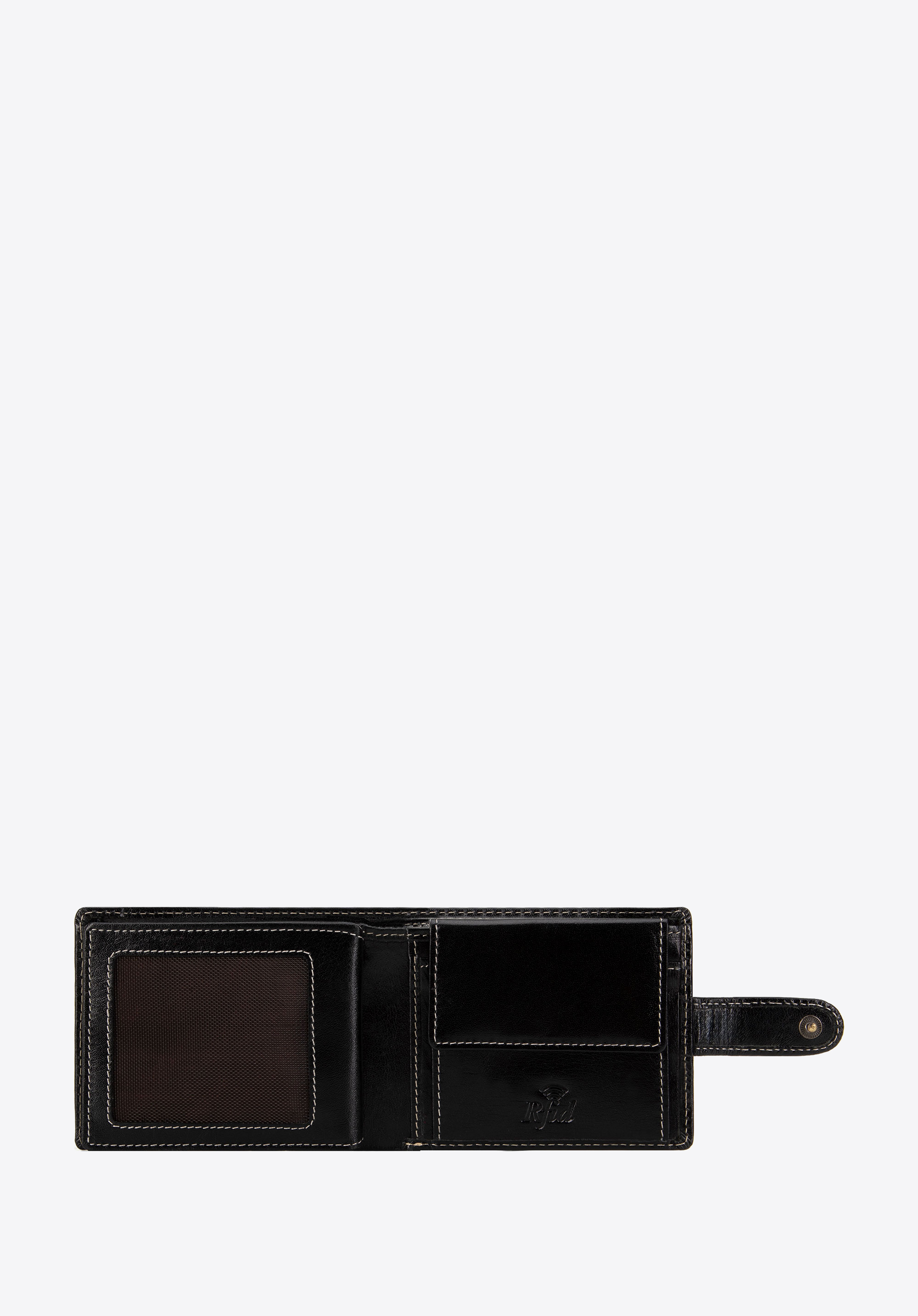 Шкіряний гаманець з шикарною декоративною строчкою. Модель, закривається ременем з застібкою, забезпечує ще кращий захист вмісту.