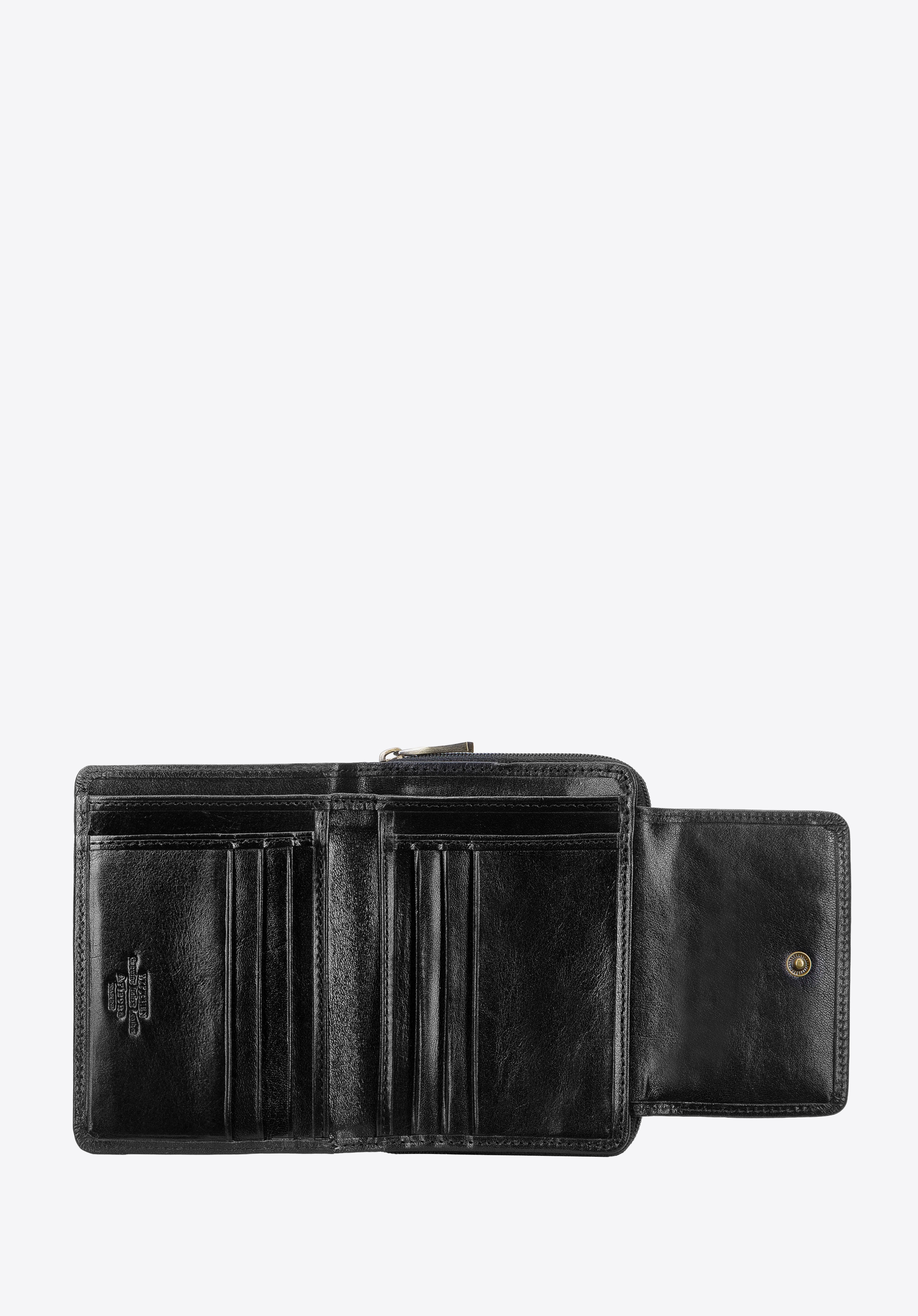 Простий гаманець середнього розміру - елегантний аксесуар для кожного. Виготовлений з м''якої натуральної шкіри з невеликим блиском, яка також оздоблює внутрішню частину гаманця. Має дві частини, що незалежно відкриваються: одна на засувку, інша на блискавку. У сховану під засувку частину можна заховати банкноти та картки, а в ту, що на блискавці - монети. Гаманець зручний, завдяки застібці він також відрізняється своїм дизайном. Шкіряний гаманець також стане відмінним подарунком.