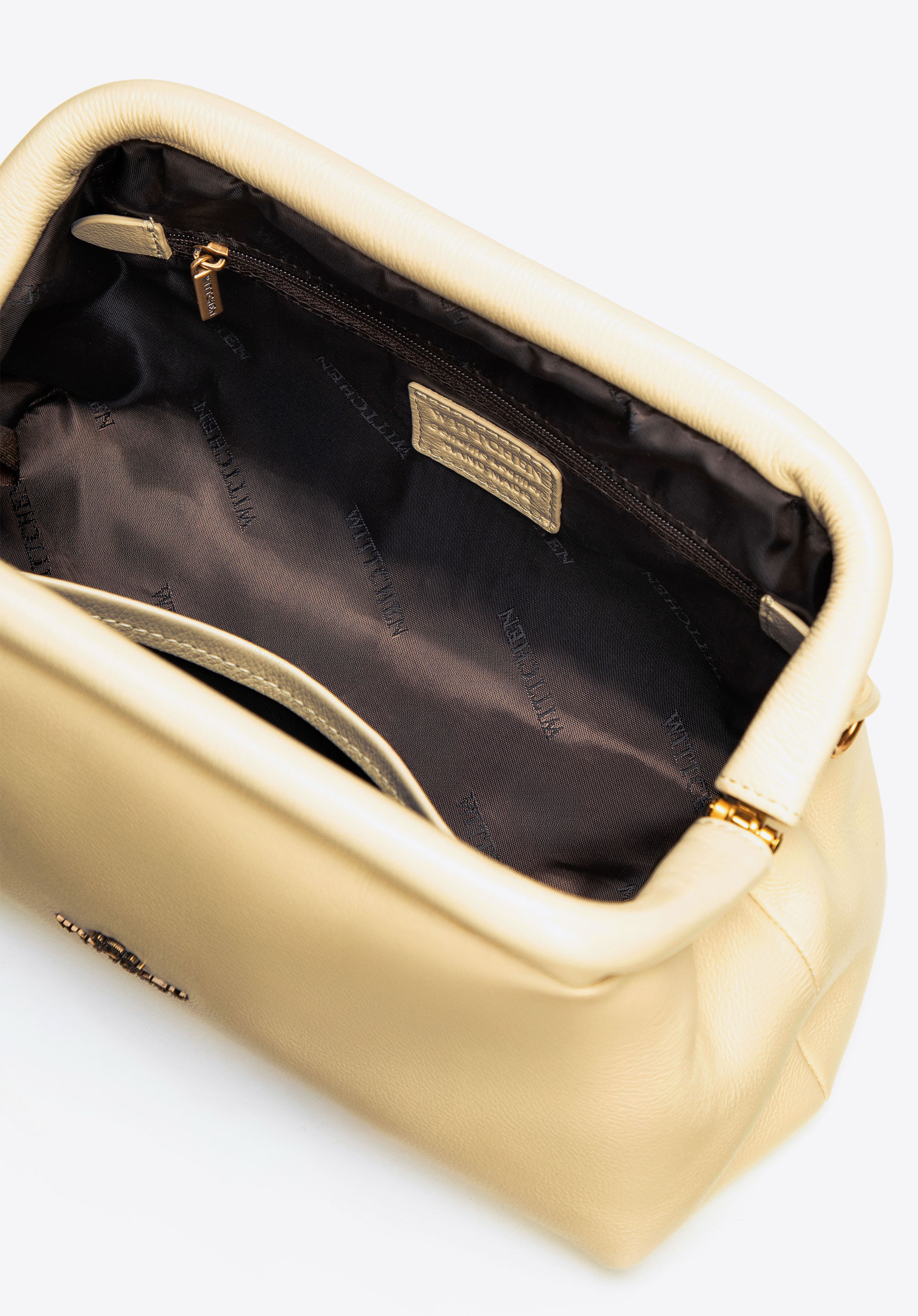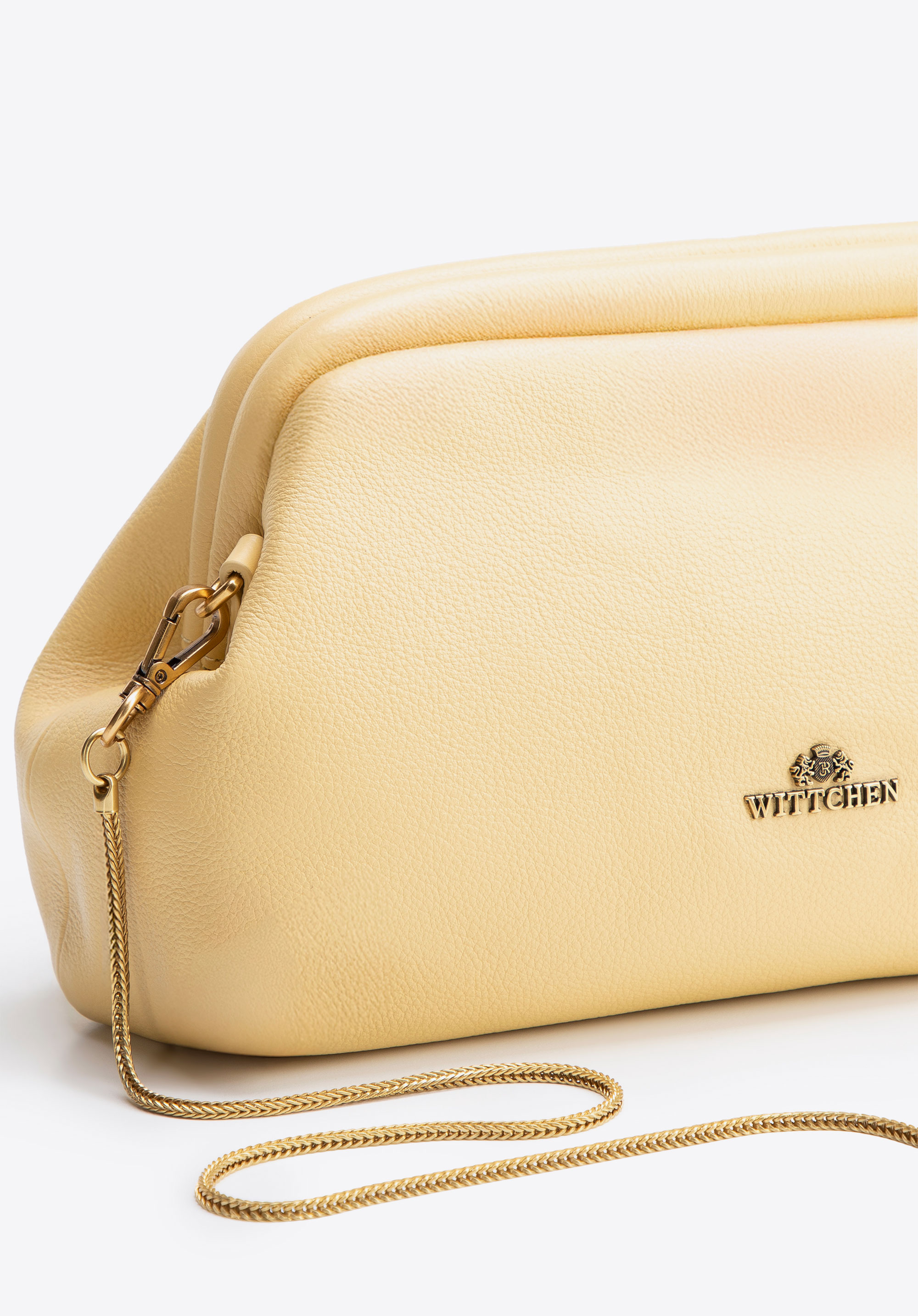 Цей елегантний клатч – вишуканий аксесуар, створений для того, щоб підкреслити ваш образ витонченою вишуканістю. Виготовлений з натуральної шкіри , він вирізняється розкішним виглядом та довговічністю, а оздоблення зі штучної шкіри на кишенях та ручці додає йому легкості та сучасності. Прихована застібка-рамка плавно вписується в силует, забезпечуючи безпеку ваших необхідних речей, не порушуючи чітких та елегантних ліній сумки. Тонкий знімний ремінець-ланцюжок дозволяє носити клатч через плече або в руці, залежно від нагоди.