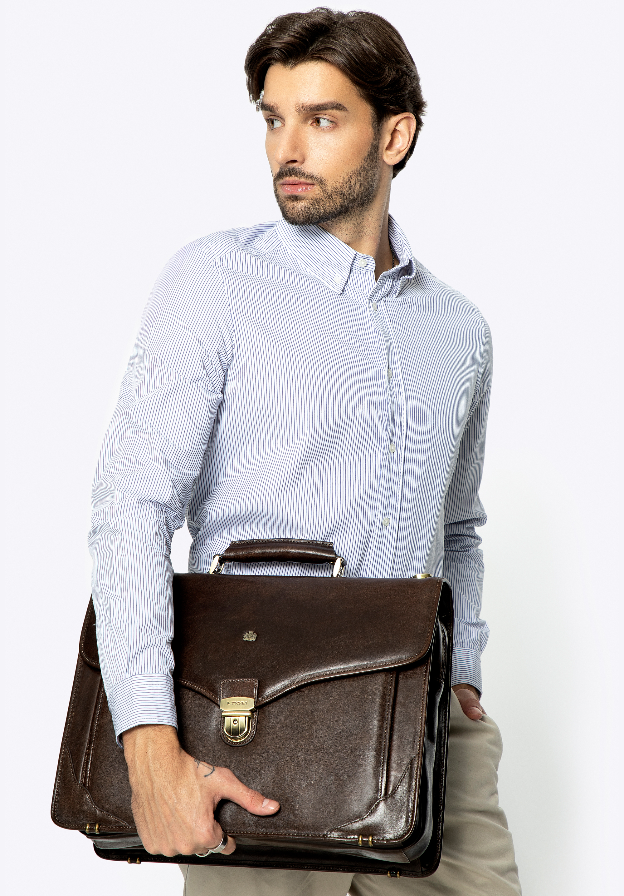 Шкіряний портфель для документів ручної роботи з міцної, м''яко мерехтливої телячої шкіри-це пропозиція для людини, яка цінує високу якість. Раціональне розподіл на перегородки дозволяє підтримувати бажаний порядок.