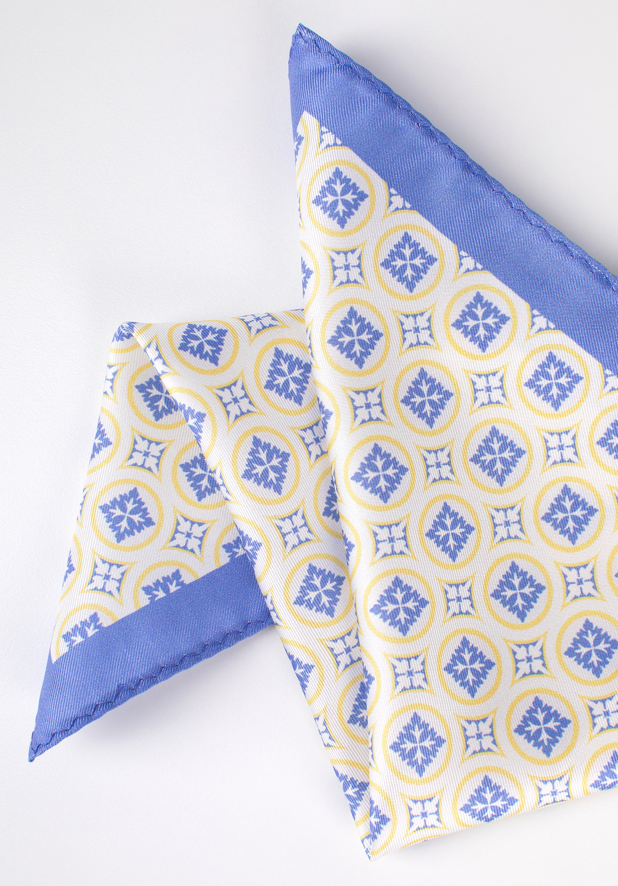 Шовкова кишенькова хустка з візерунком синьо-жовта
