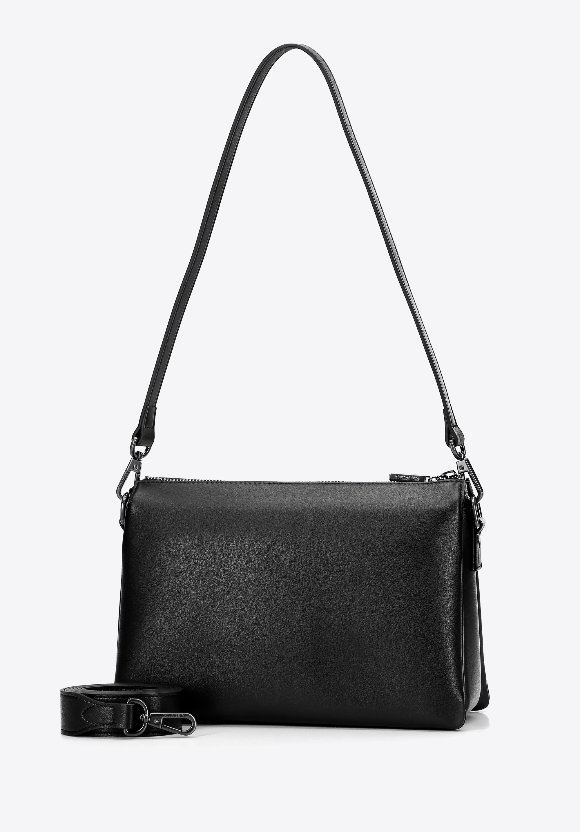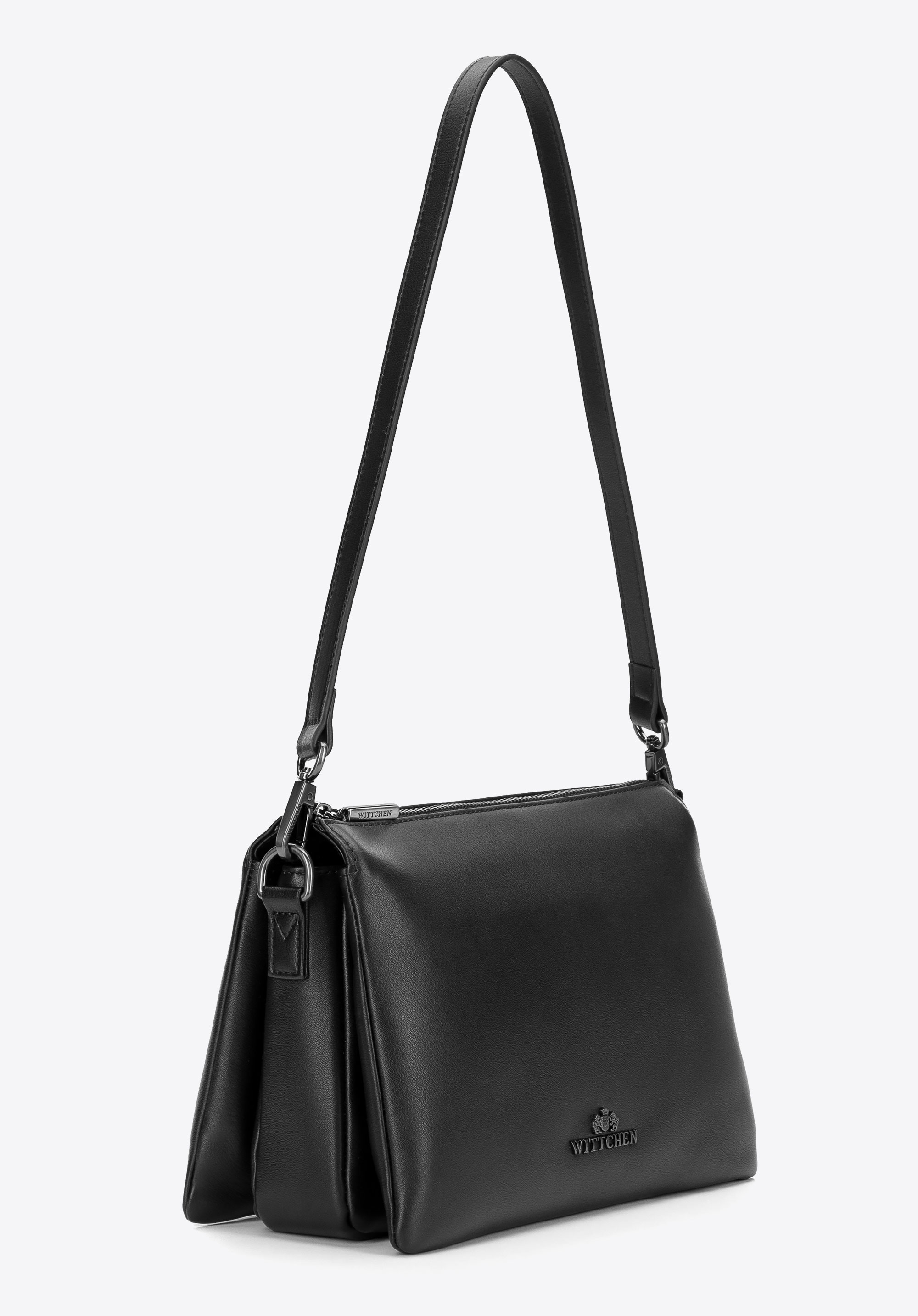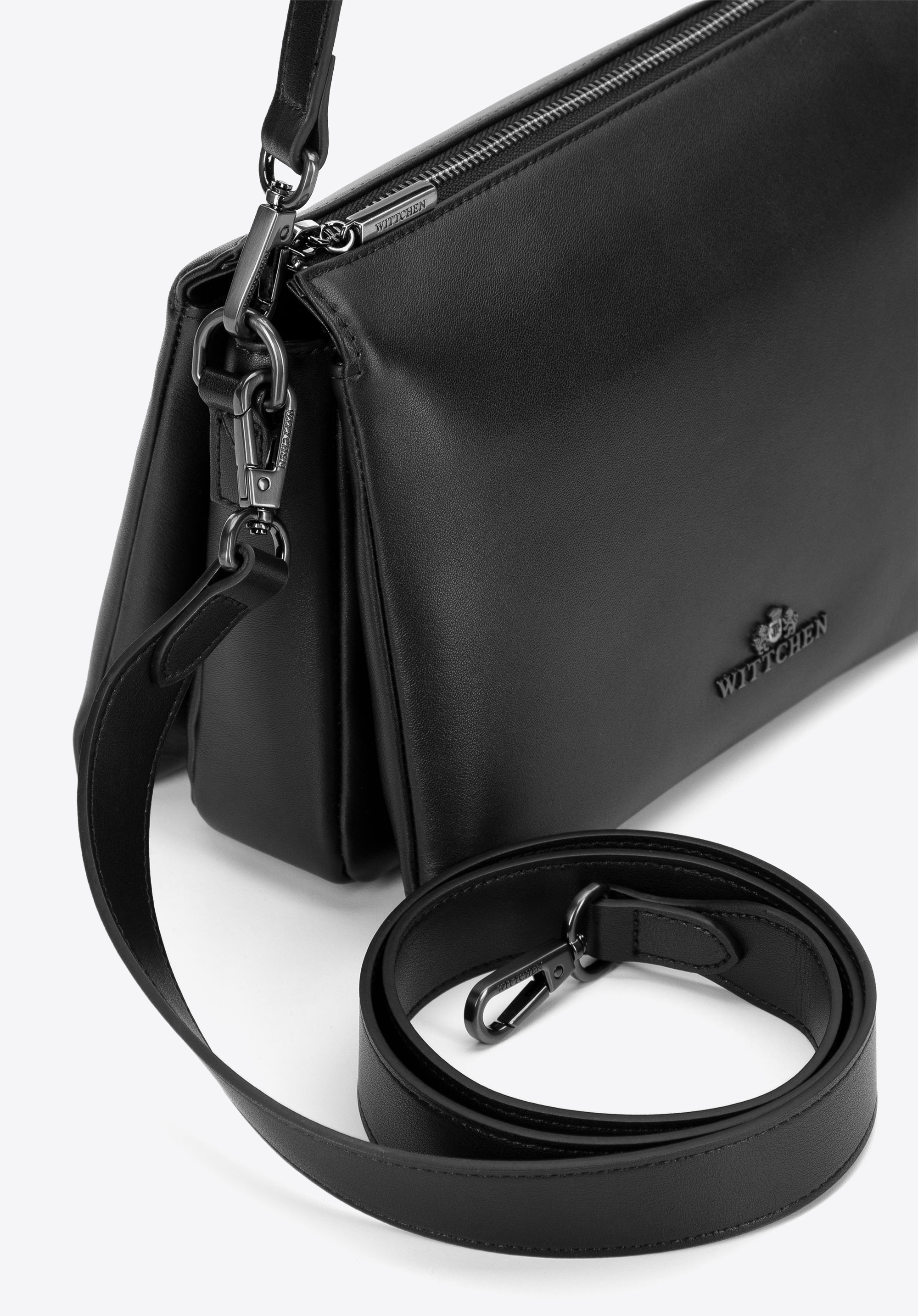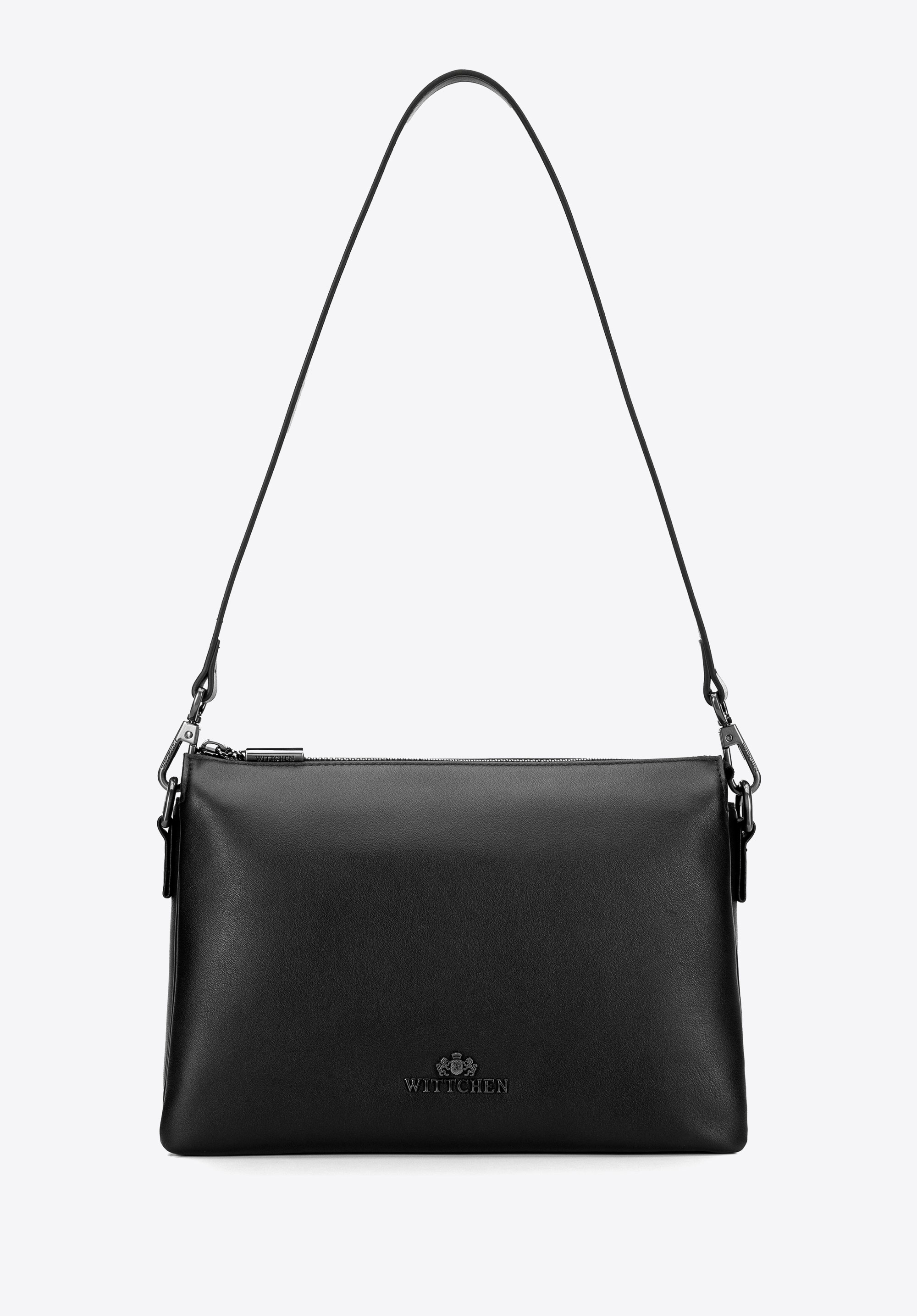 Сумка через плече з гладкої натуральної шкіри чорно-графітова