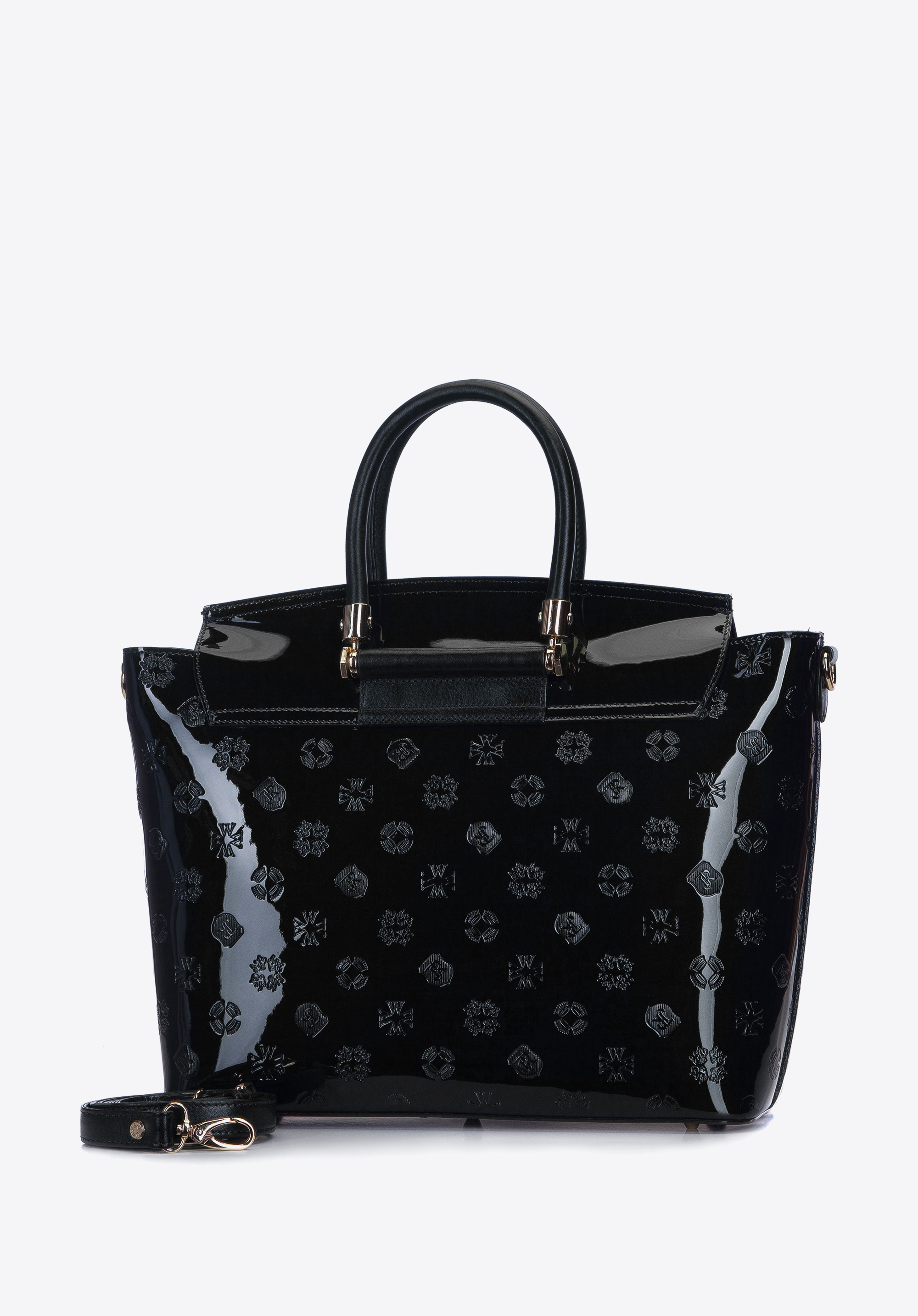 Сумки з монограмою підкорили серця багатьох ікон стилю і модниць. Дизайнери WITTCHEN відповіли на виклик сучасних тенденцій і підготували унікальну лінійку Signature з характерним тисненням. У цій моделі також є красиве тиснення на клапані, що є кульмінацією дизайну, який є гібридом скриньки та сумки-шоппера. Сумка з жорсткої лакованої шкіри приваблює своїм глянцем, контрастуючим з матовими елементами. Лакова сумка з клапаном і тисненням була збагачена кольоровою вертикальною стрічкою, яка порушує формальний стиль цілого.