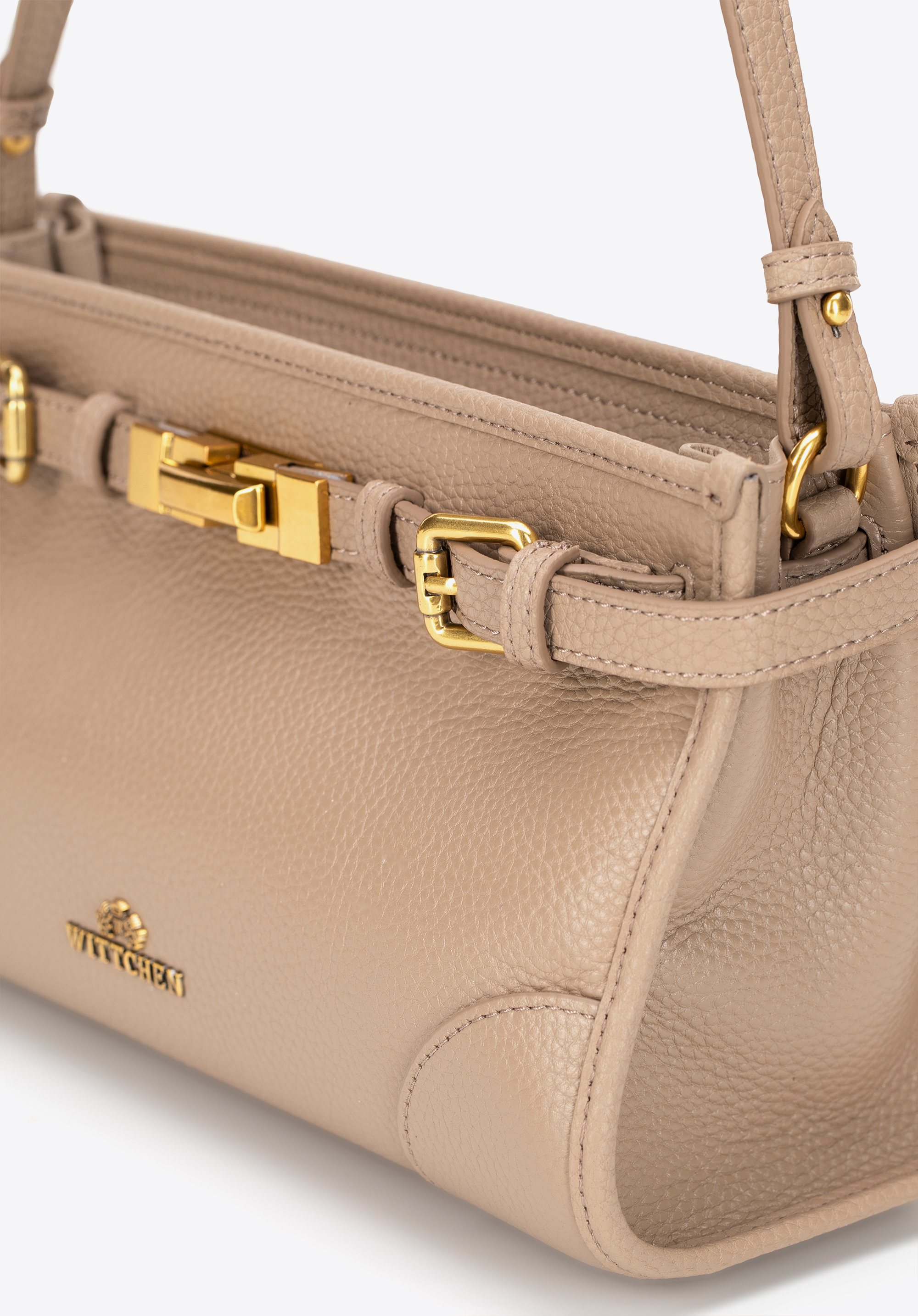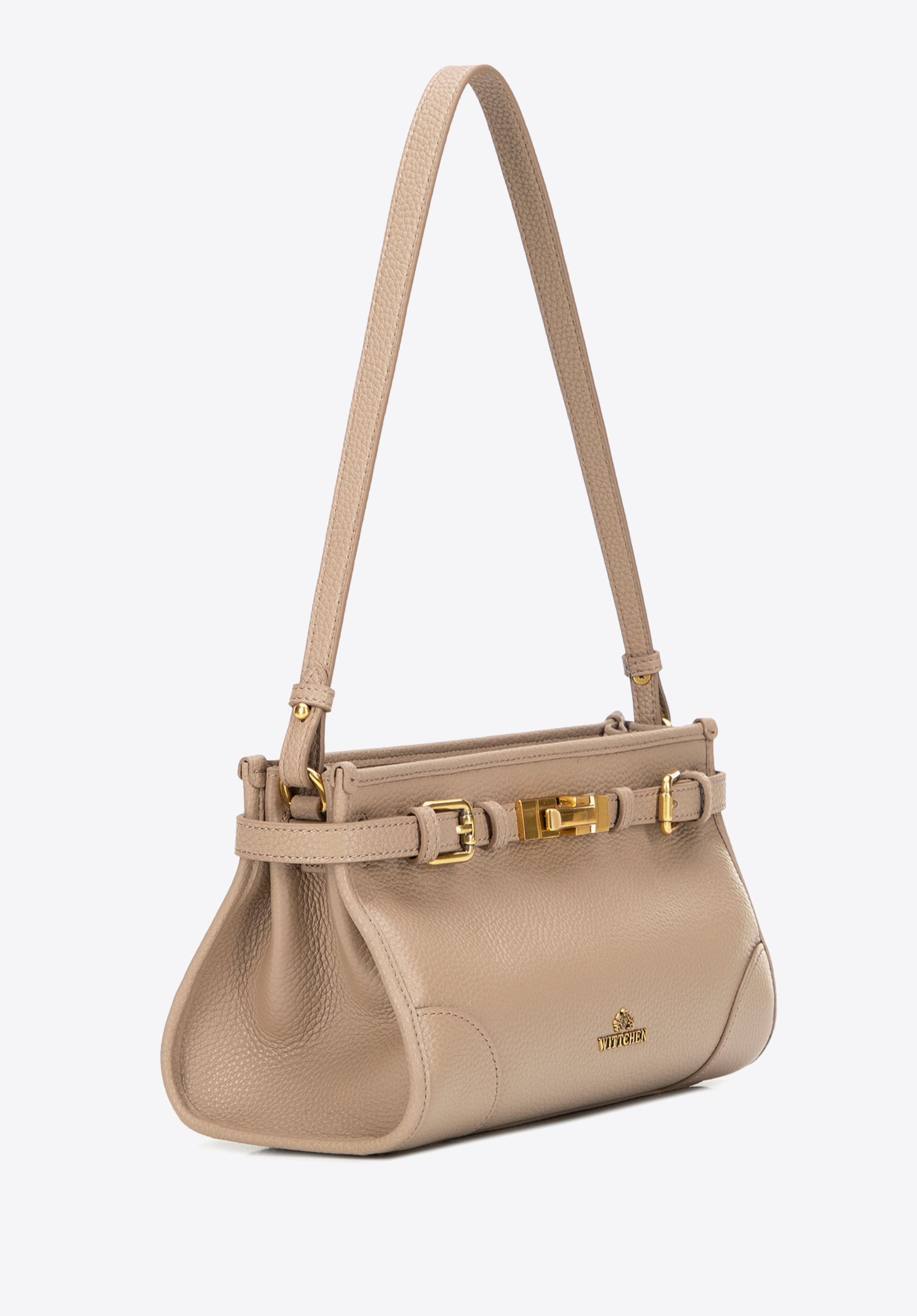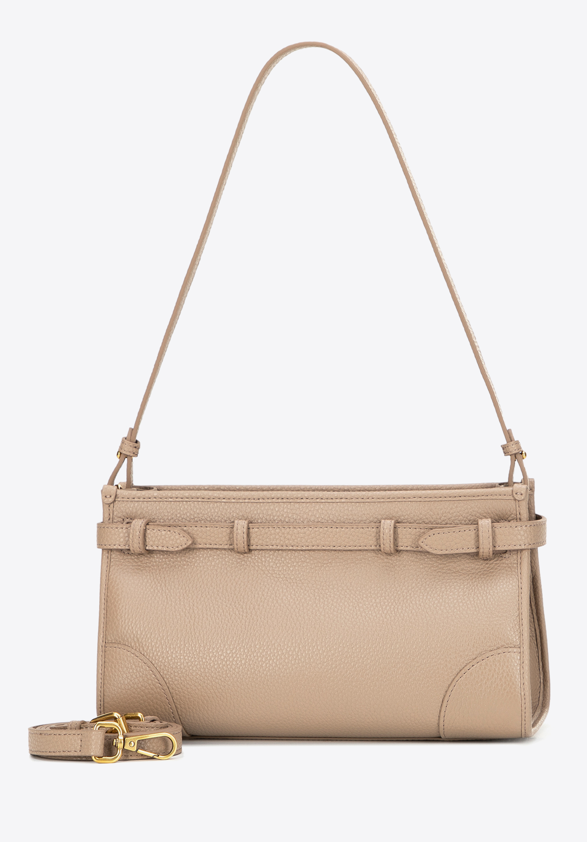 Відкрийте для себе цю сумку на плече, яка поєднує класичний дизайн із практичними функціями. Виготовлена з натуральної шкіри з ніжною зернистою текстурою, вона вирізняється елегантним оздобленням та довговічністю. Ремінець, внутрішня підкладка та дно виготовлені з екошкіри, яка чудово імітує шкіру, забезпечуючи легкість, комфорт та збереження форми навіть при щоденному використанні. Основне відділення з двома кишенями, включаючи одну на блискавці, допоможе організувати ваші необхідні речі, а декоративний ремінець із застібкою додає сучасного вигляду.