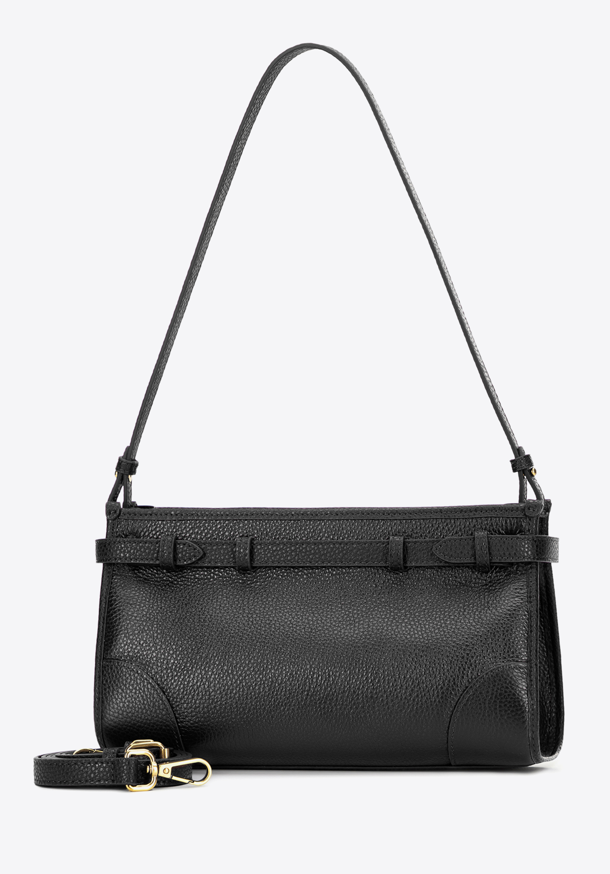 Відкрийте для себе цю сумку на плече, яка поєднує класичний дизайн із практичними функціями. Виготовлена з натуральної шкіри з ніжною зернистою текстурою, вона вирізняється елегантним оздобленням та довговічністю. Ремінець, внутрішня підкладка та дно виготовлені з екошкіри, яка чудово імітує шкіру, забезпечуючи легкість, комфорт та збереження форми навіть при щоденному використанні. Основне відділення з двома кишенями, включаючи одну на блискавці, допоможе організувати ваші необхідні речі, а декоративний ремінець із застібкою додає сучасного вигляду.