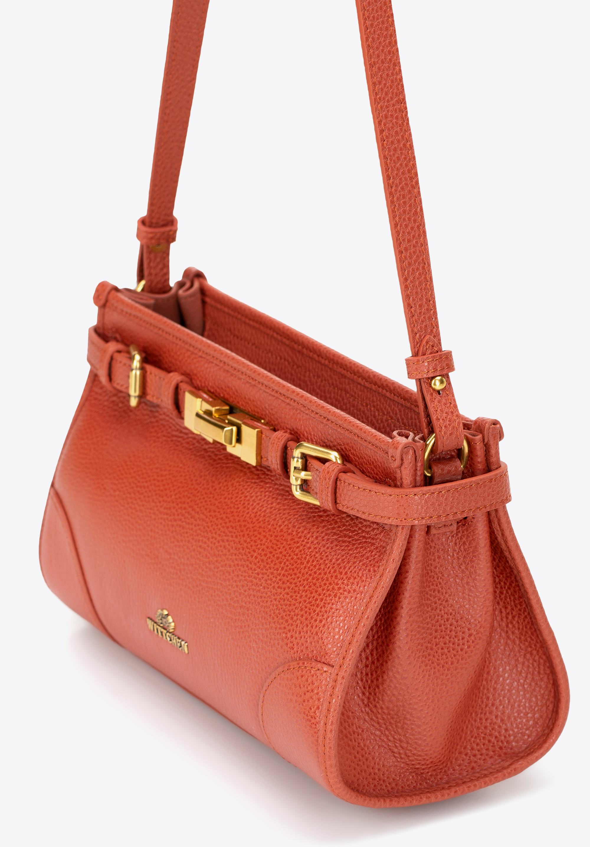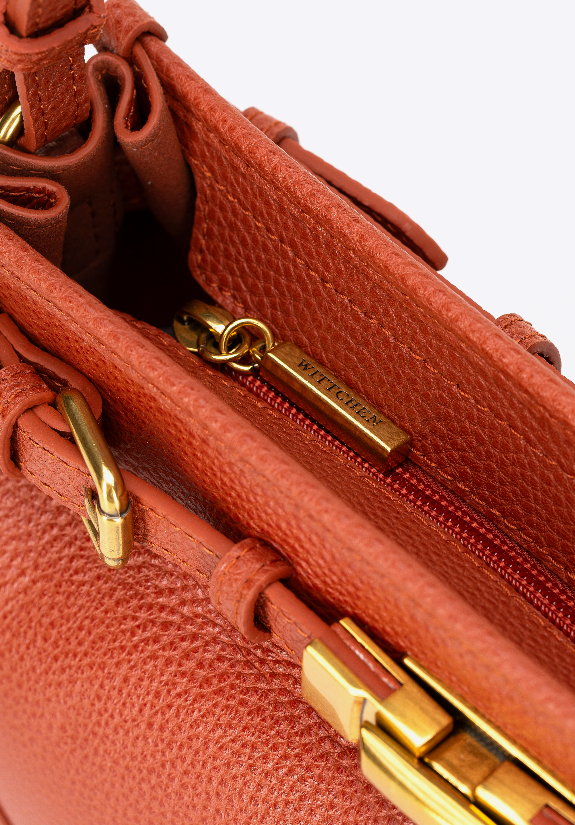 - Матеріал: Натуральна шкіра з зернистою текстурою – міцна, елегантна та підходить для щоденного використання. Ремінець, дно та внутрішня підкладка з екошкіри, що імітує шкіру, забезпечують легкість та комфорт.