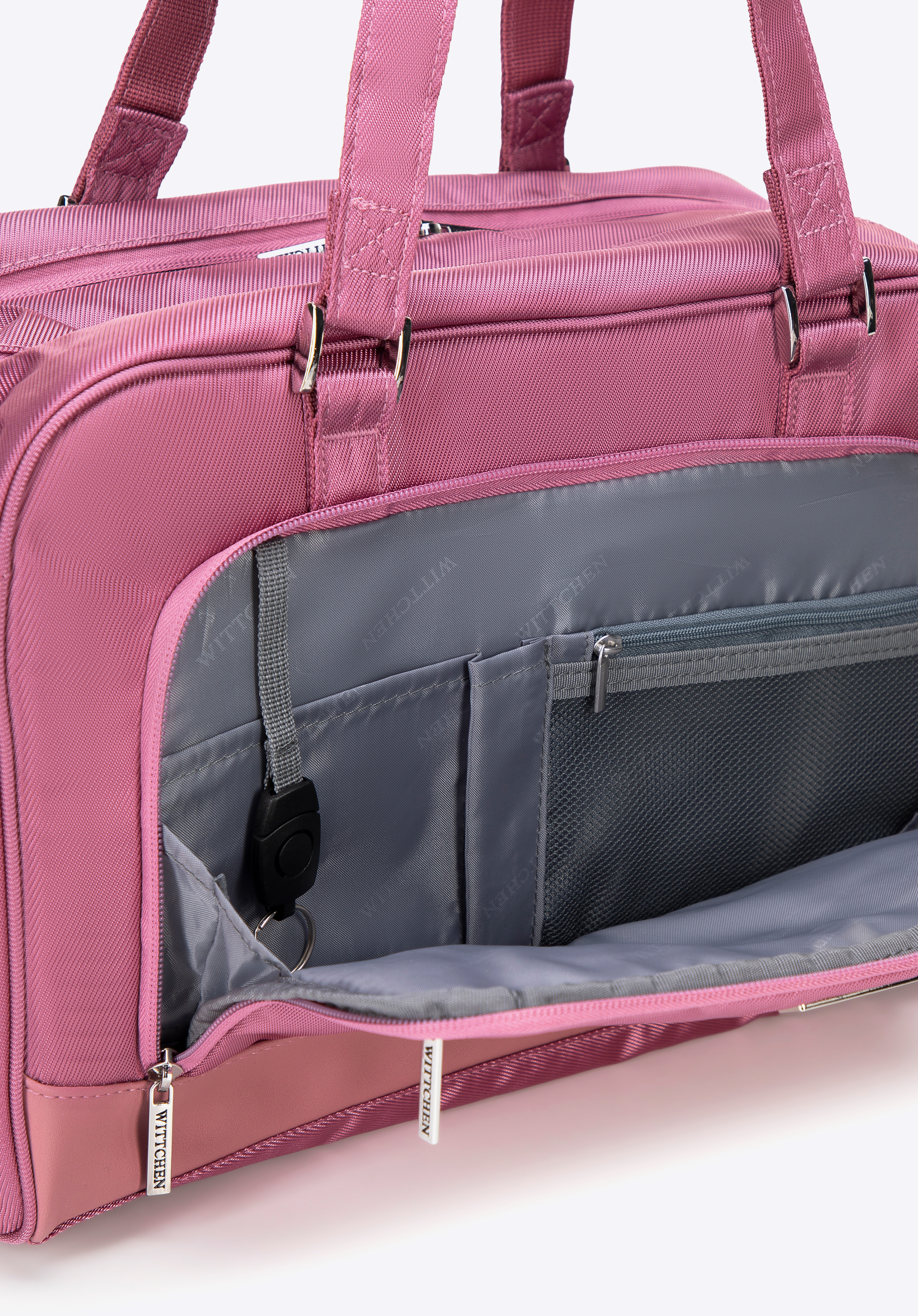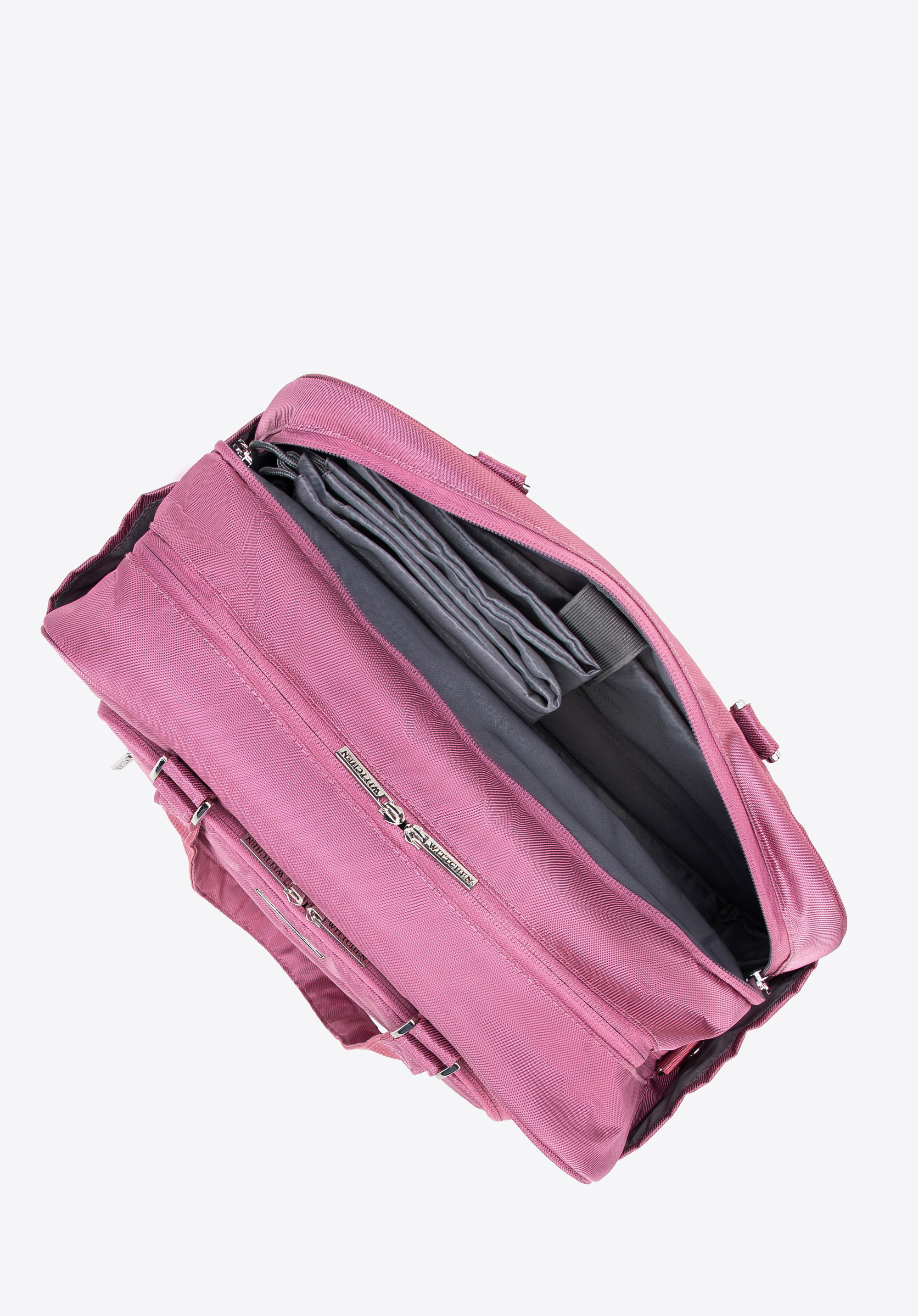 - у головному відсіку: знімна косметичка з прозорого пластика і сумка для білизни або взуття;
