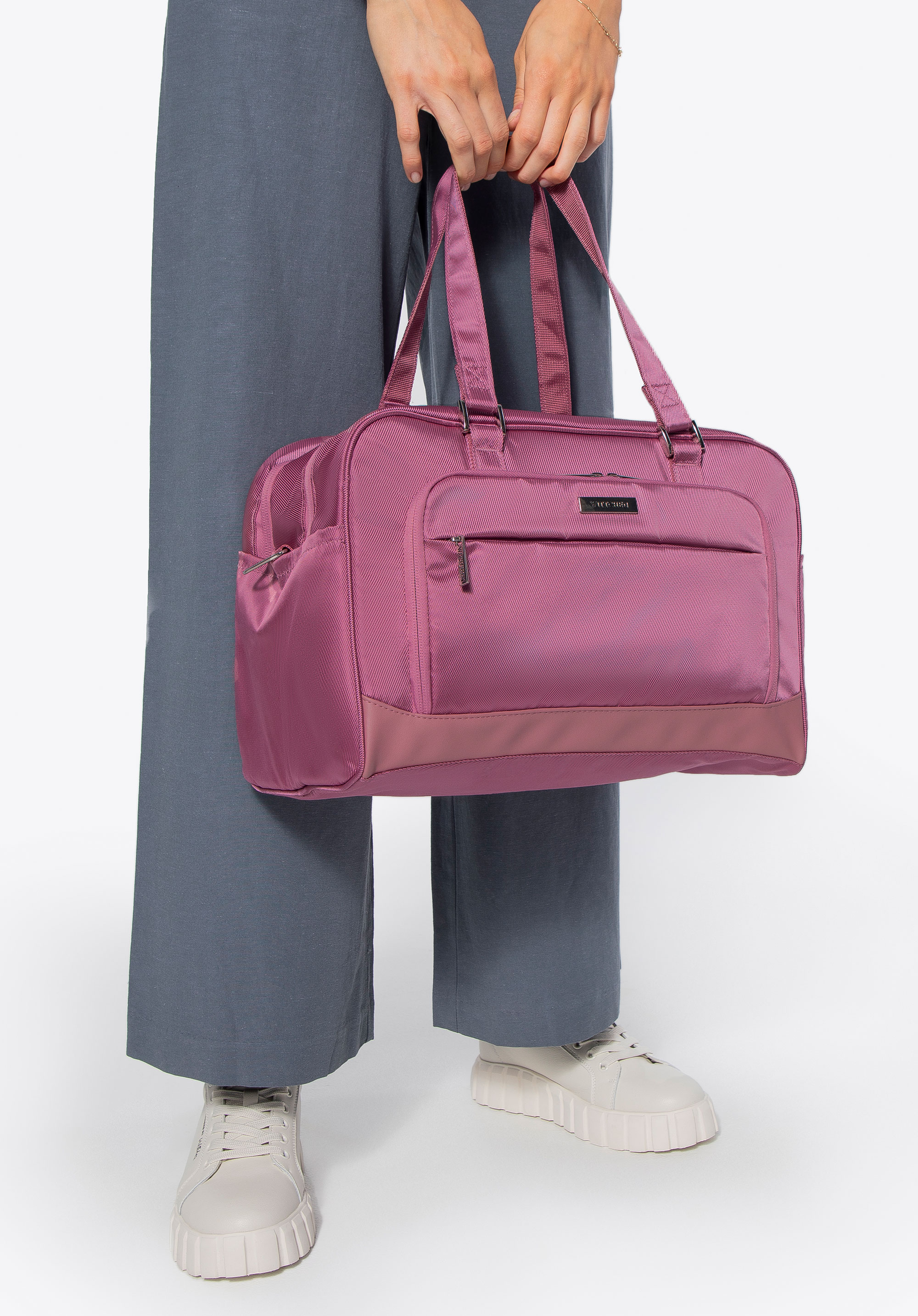 Цей функціональний багаж був створений, щоб полегшити вашу подорож. В окремому м''якому відсіку ви можете перевозити електронне обладнання з максимальними розмірами 36 x 22 см. Крім того, сумка має велике відділення, в яке ви без проблем помістіть особисті речі, необхідні для поїздки на вихідні. Всередині ви знайдете додаткові зручності для зберігання: сумка на зав''язках-ідеально підходить для одягу для прання або взуття - і знімна прозора косметичка. А в численні кишені помістяться необхідні дрібниці. Можливо, вам сподобається, що один із зовнішніх кишень має захист RFID-карт, тому він ідеально підходить для зберігання гаманця. Ребриста обробка з легким блиском стійка до плям, і в разі потрапляння води вона швидко висохне.