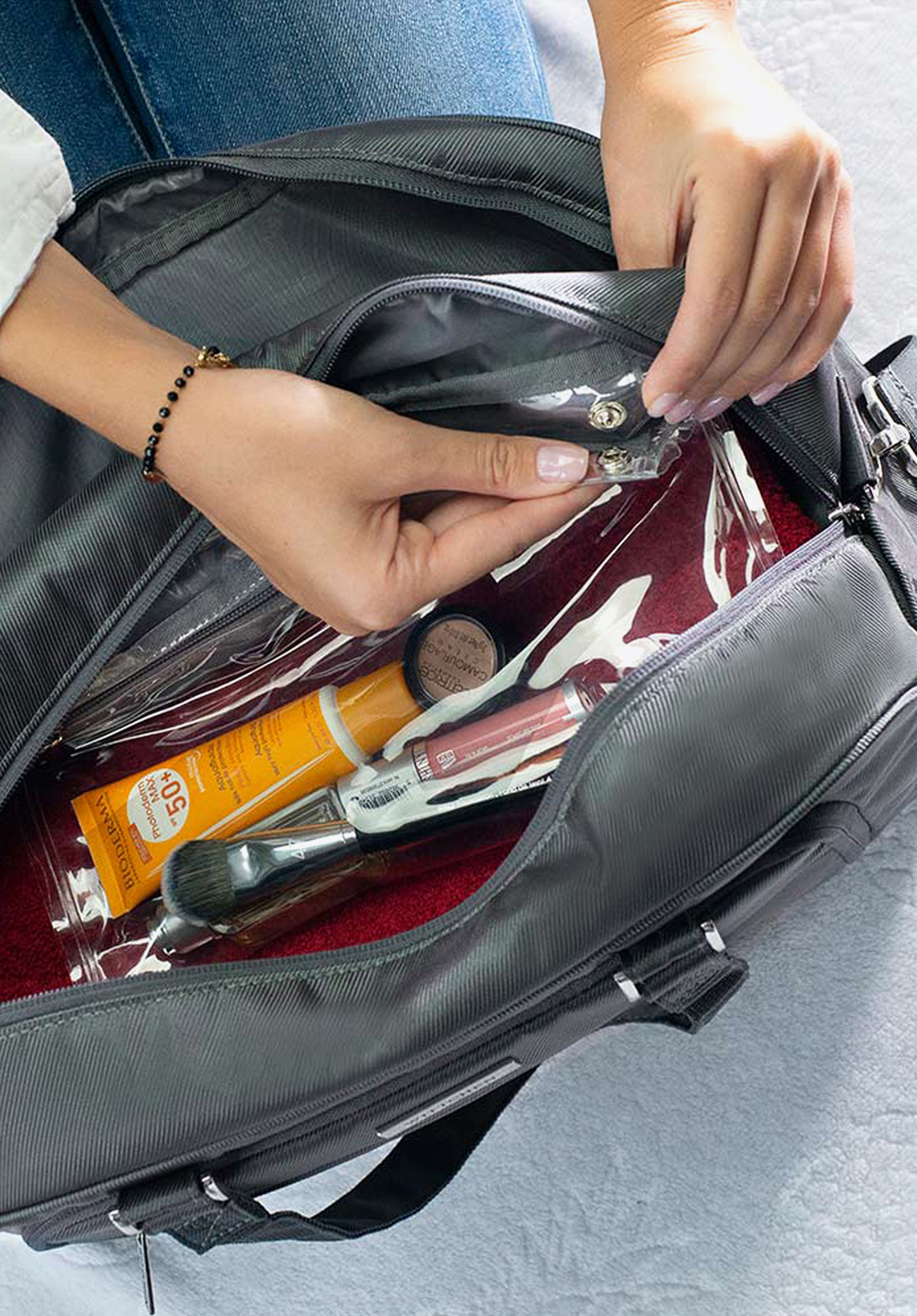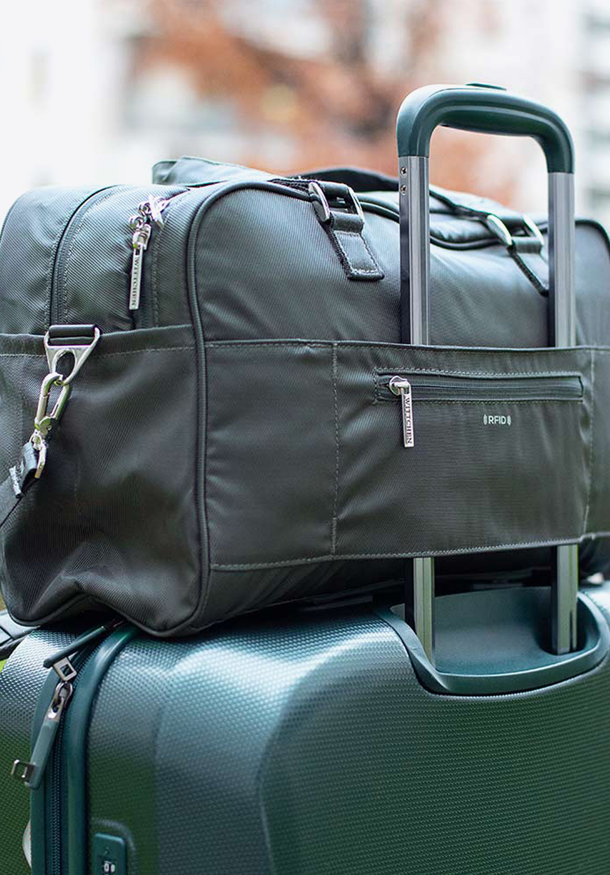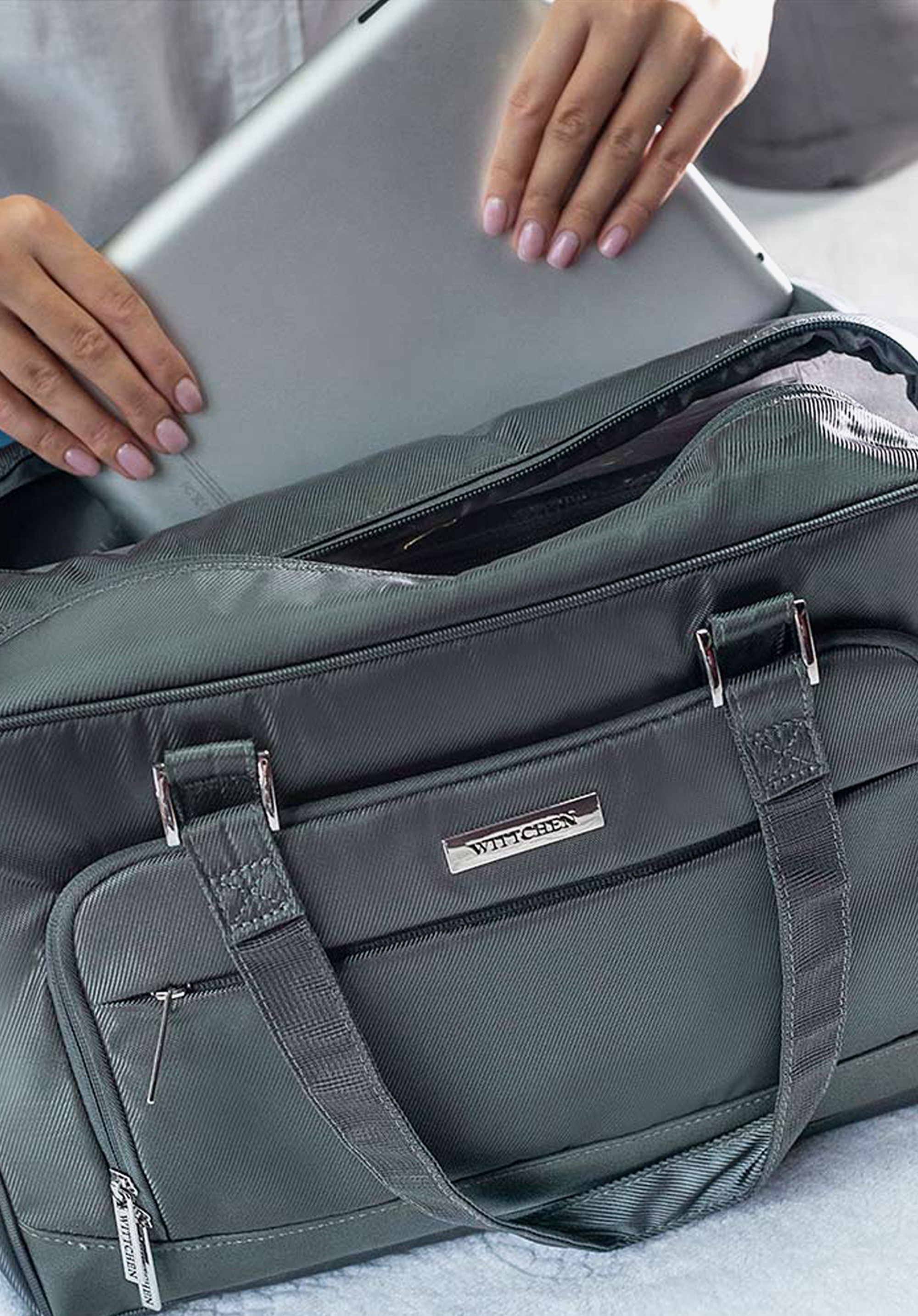 Цей функціональний багаж був створений, щоб полегшити вашу подорож. В окремому м''якому відсіку ви можете перевозити електронне обладнання з максимальними розмірами 36 x 22 см. Крім того, сумка має велике відділення, в яке ви без проблем помістіть особисті речі, необхідні для поїздки на вихідні. Всередині ви знайдете додаткові зручності для зберігання: сумка на зав''язках-ідеально підходить для одягу для прання або взуття - і знімна прозора косметичка. А в численні кишені помістяться необхідні дрібниці. Можливо, вам сподобається, що один із зовнішніх кишень має захист RFID-карт, тому він ідеально підходить для зберігання гаманця. Ребриста обробка з легким блиском стійка до плям, і в разі потрапляння води вона швидко висохне.
