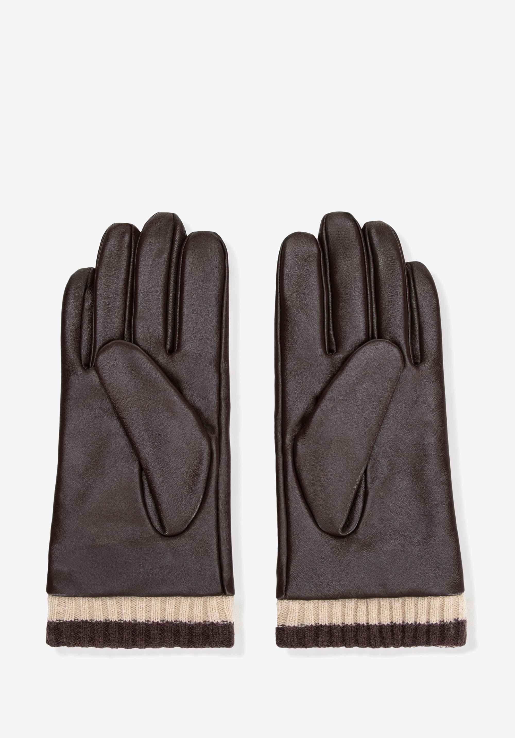 Ці чоловічі рукавички виготовлені з натуральної, м''якої овчини, яка поєднує виняткову ніжність та довговічність. Гладка, мінімалістична форма без прикрас підкреслює позачасовий, елегантний характер виробу. Товста, утеплена манжета, що тягнеться до зап''ястя, ефективно захищає від холоду, забезпечуючи оптимальну ізоляцію та комфорт під час носіння. Тиснений логотип виробника створює непомітний акцент, демонструючи високу якість та увагу до деталей. Це поєднання класичної естетики з практичним теплом, яке ідеально підходить для повсякденного зимового стилю.