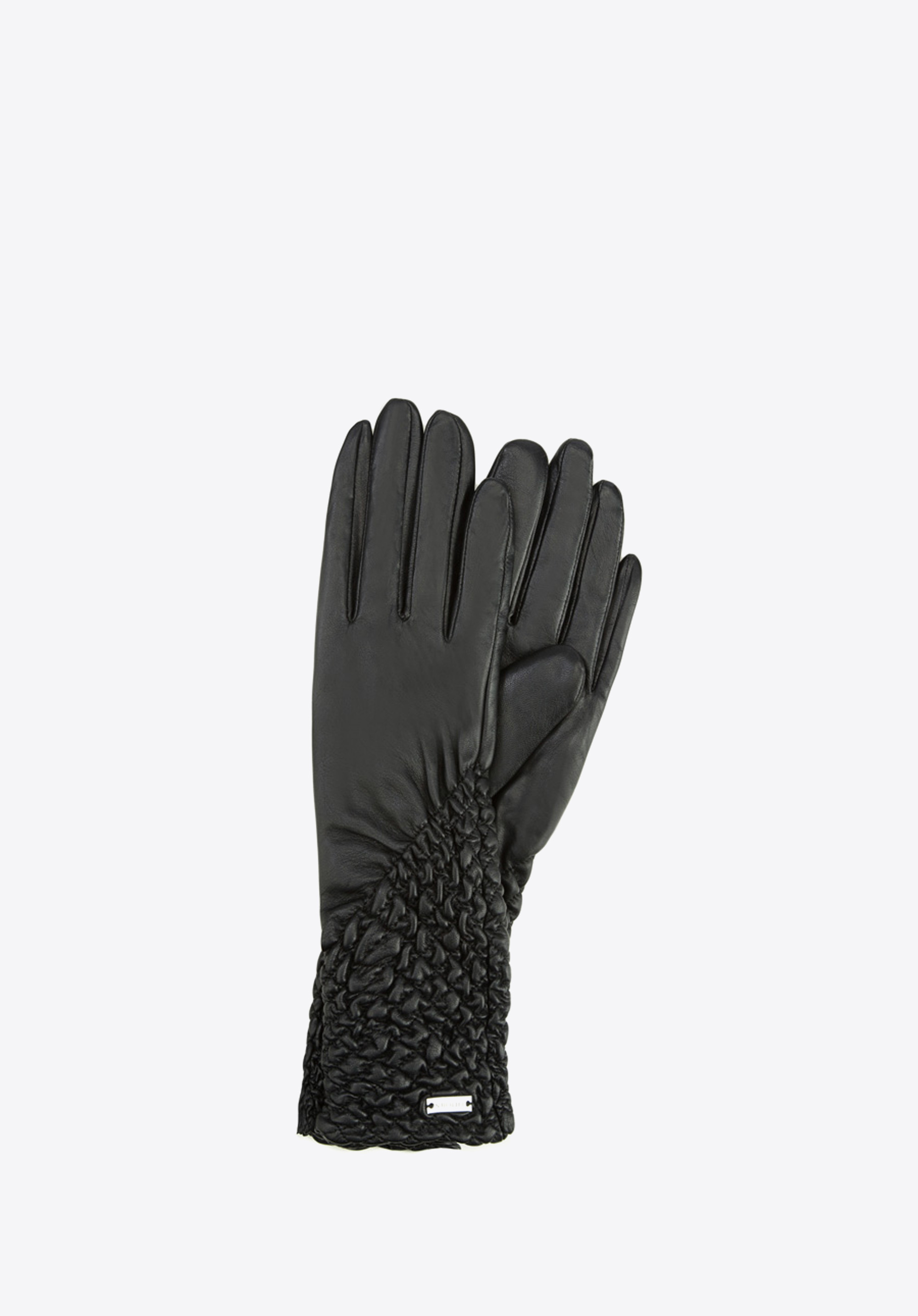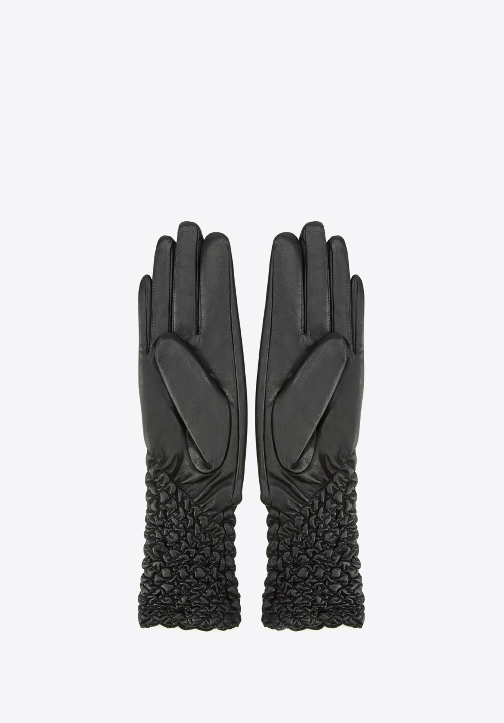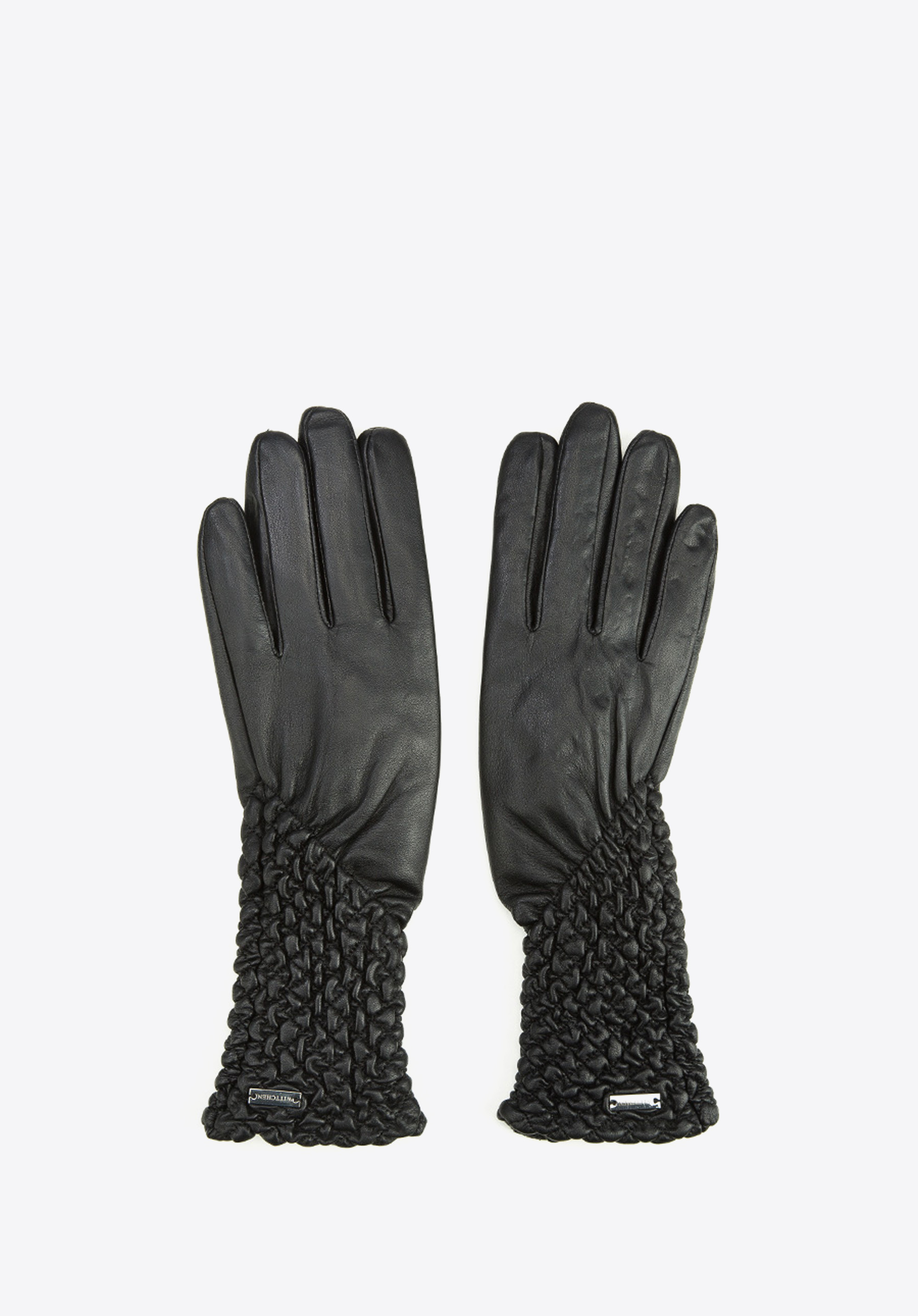 Стильні жіночі утеплені рукавички, виконані з високоякісної овчини. Перевагами моделі є цікава строчка і модні рюші, а також довжина, яка ідеально відповідає елегантним творінням. Неймовірно жіночну модель оцінять дами, які шукають одночасно теплі і шикарні рукавички.