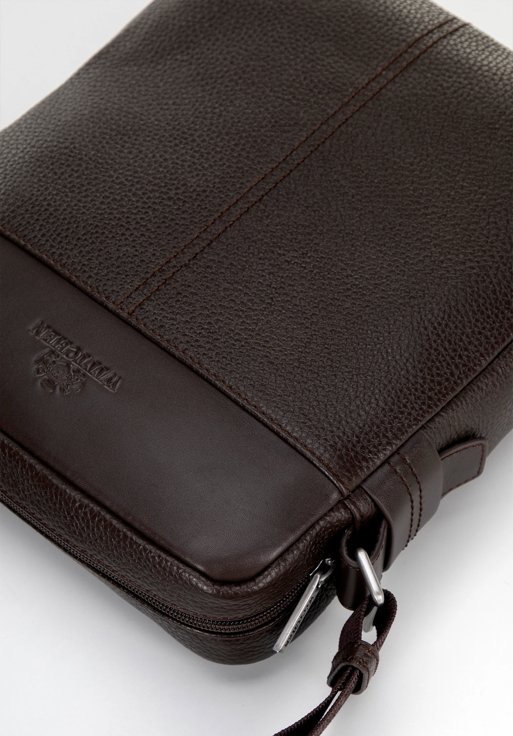 Ідеальне поєднання класичного та сучасного стилю, ця чоловіча сумка-месенджер, виготовлена з натуральної шкіри, забезпечує елегантність і практичність. Її мінімалістичний дизайн із логотипом на передній панелі підкреслює ваше почуття стилю. Регульований ремінь забезпечує ідеальну посадку, а продумані кишені – зовнішня на блискавці ззаду та дві внутрішні кишені, включно з однією на блискавці – забезпечують чудову організацію та легкий доступ до найнеобхідніших речей.