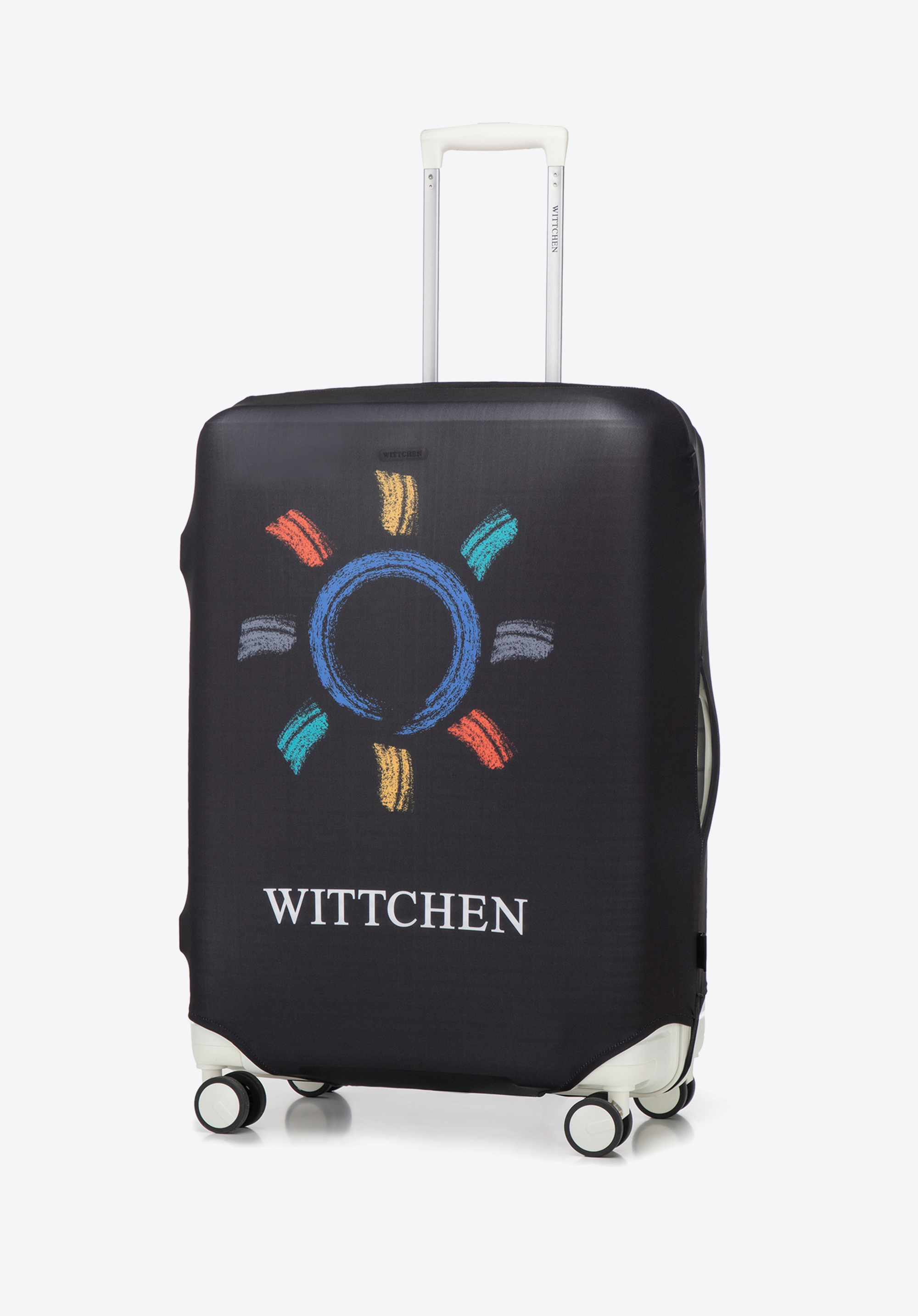 Чохол має зручну блискавку внизу для зручного одягання та знімання. Внутрішня еластична стрічка тримає його на місці під час подорожі. Для зручності використання кришка має виріз у верхній частині для телескопічної ручки. Чохол прикрашений логотипом WITTCHEN , що додає нотку елегантності та гарантує високу якість. Цей чохол допоможе вам швидко знайти свою валізу в аеропорту та додасть нотки стилю вашим подорожам.