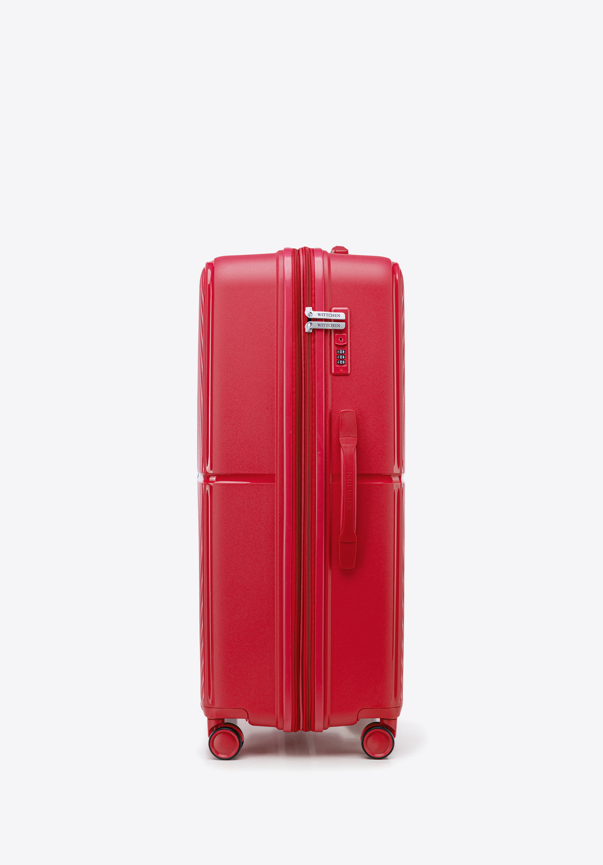 - Стійкість: 4 бічні ніжки забезпечують надійне та стійке положення валізи на боці.