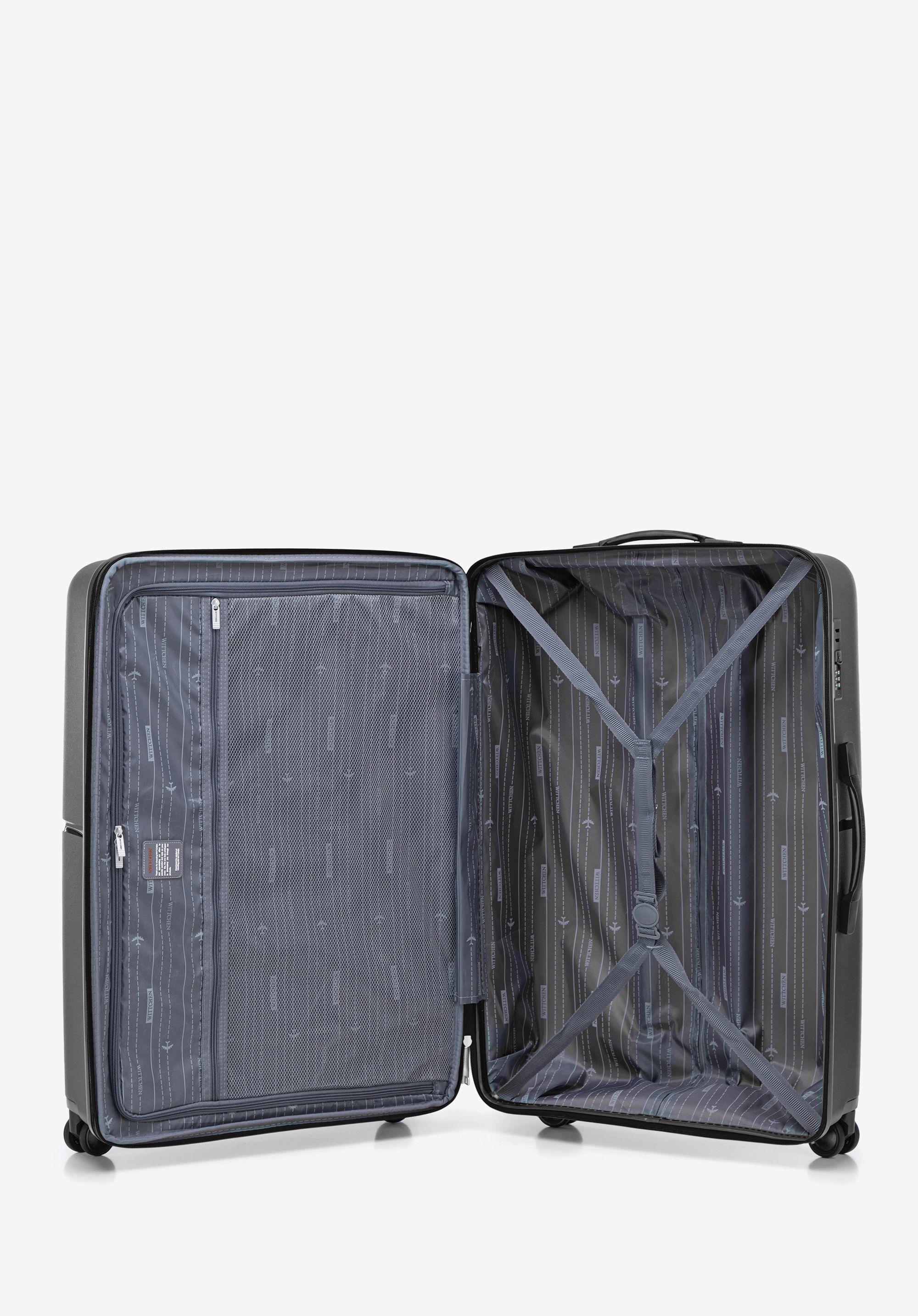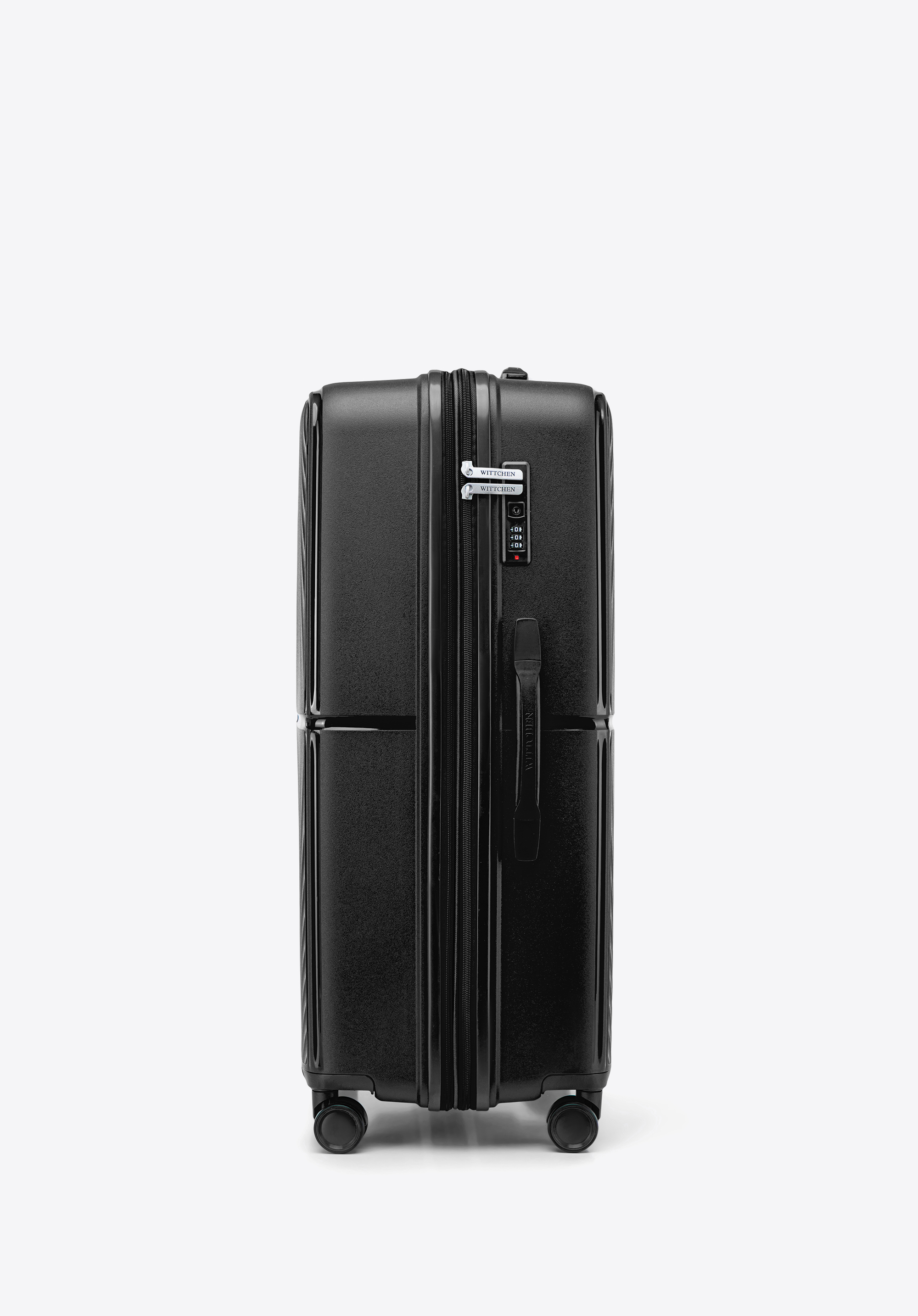 - Стійкість: 4 бічні ніжки забезпечують надійне та стійке положення валізи на боці.