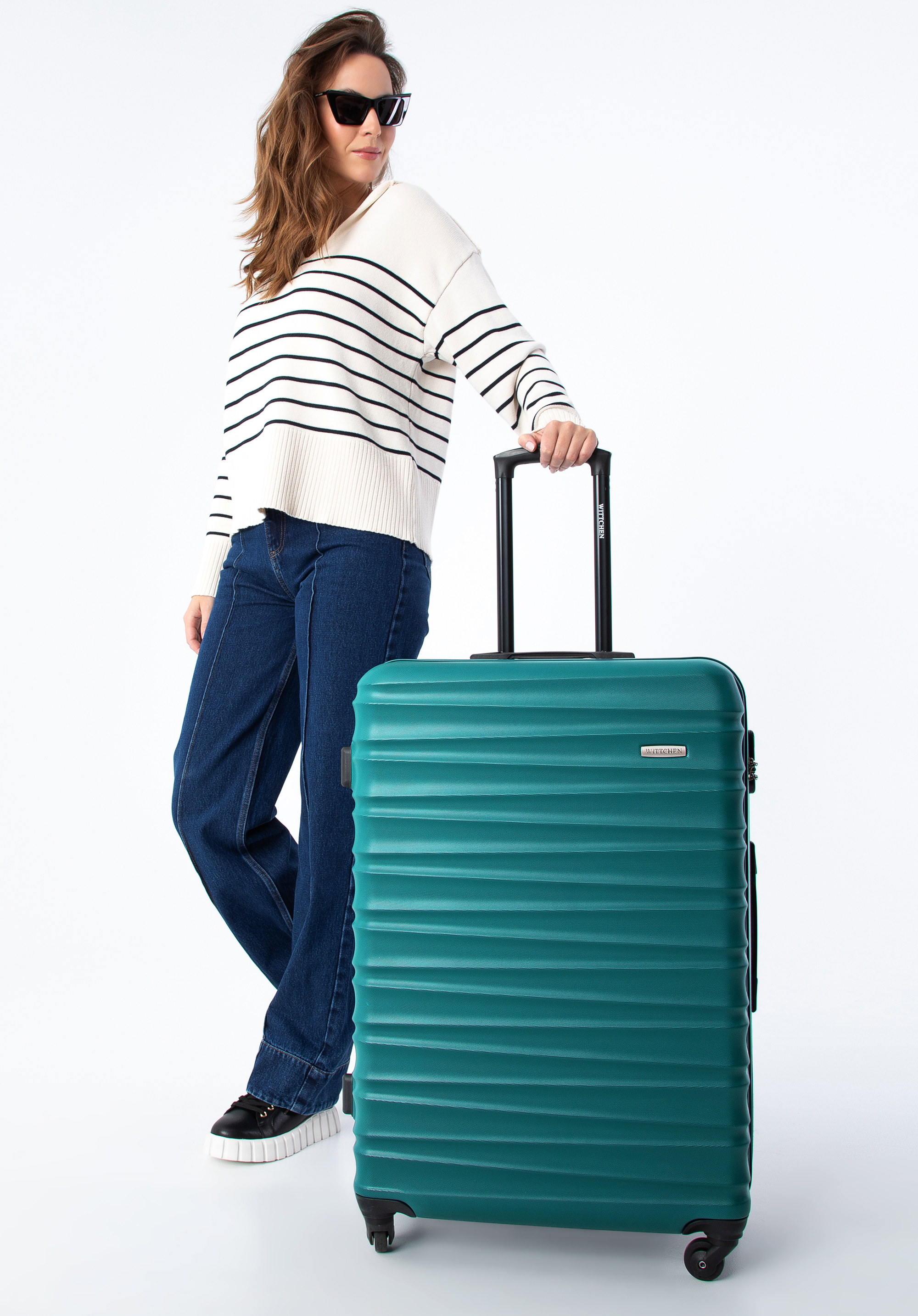 Велика валіза на колесах з ABS зелена