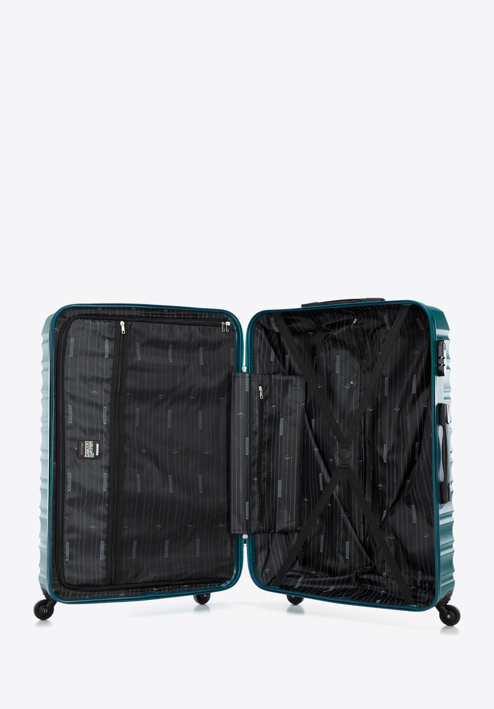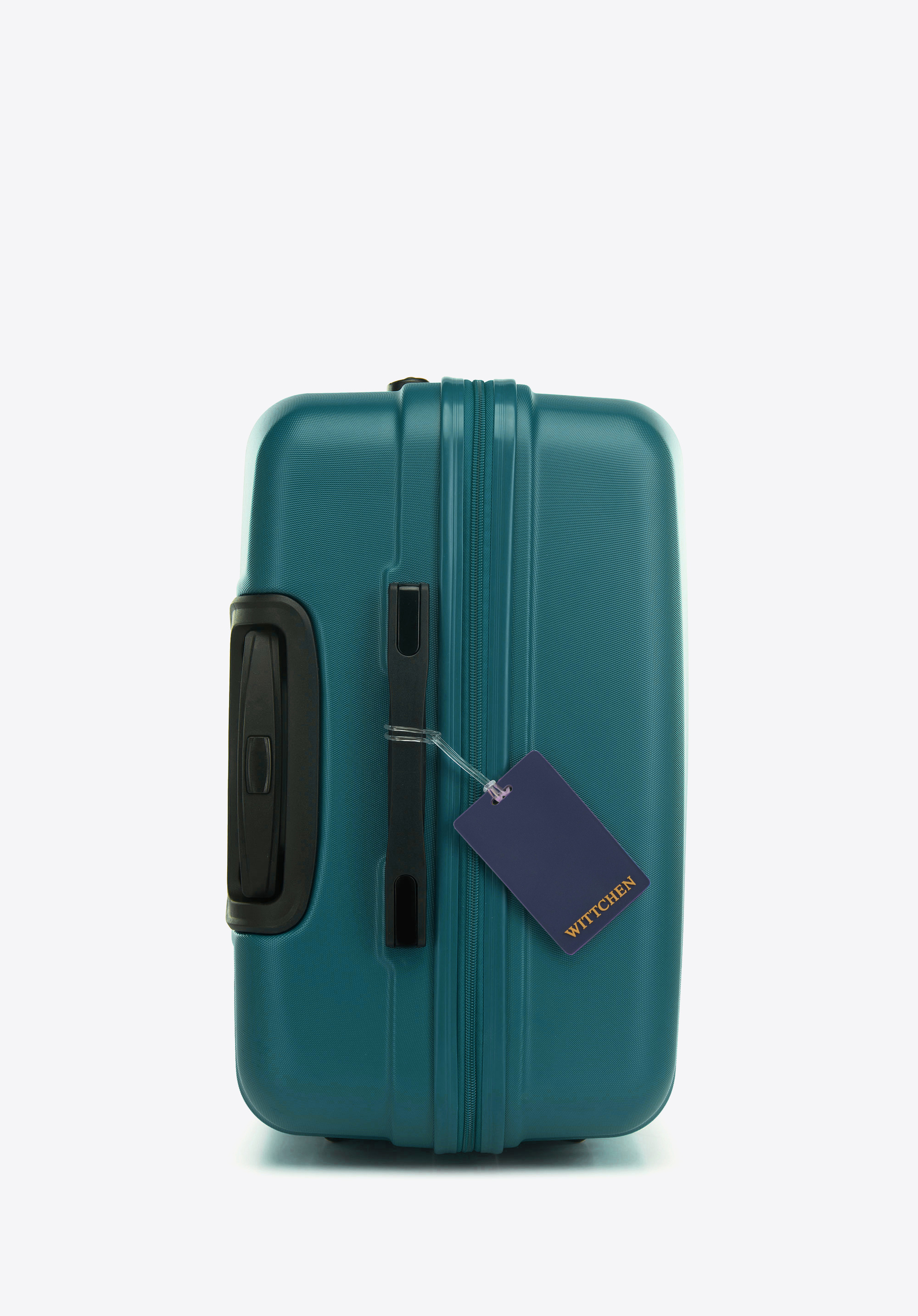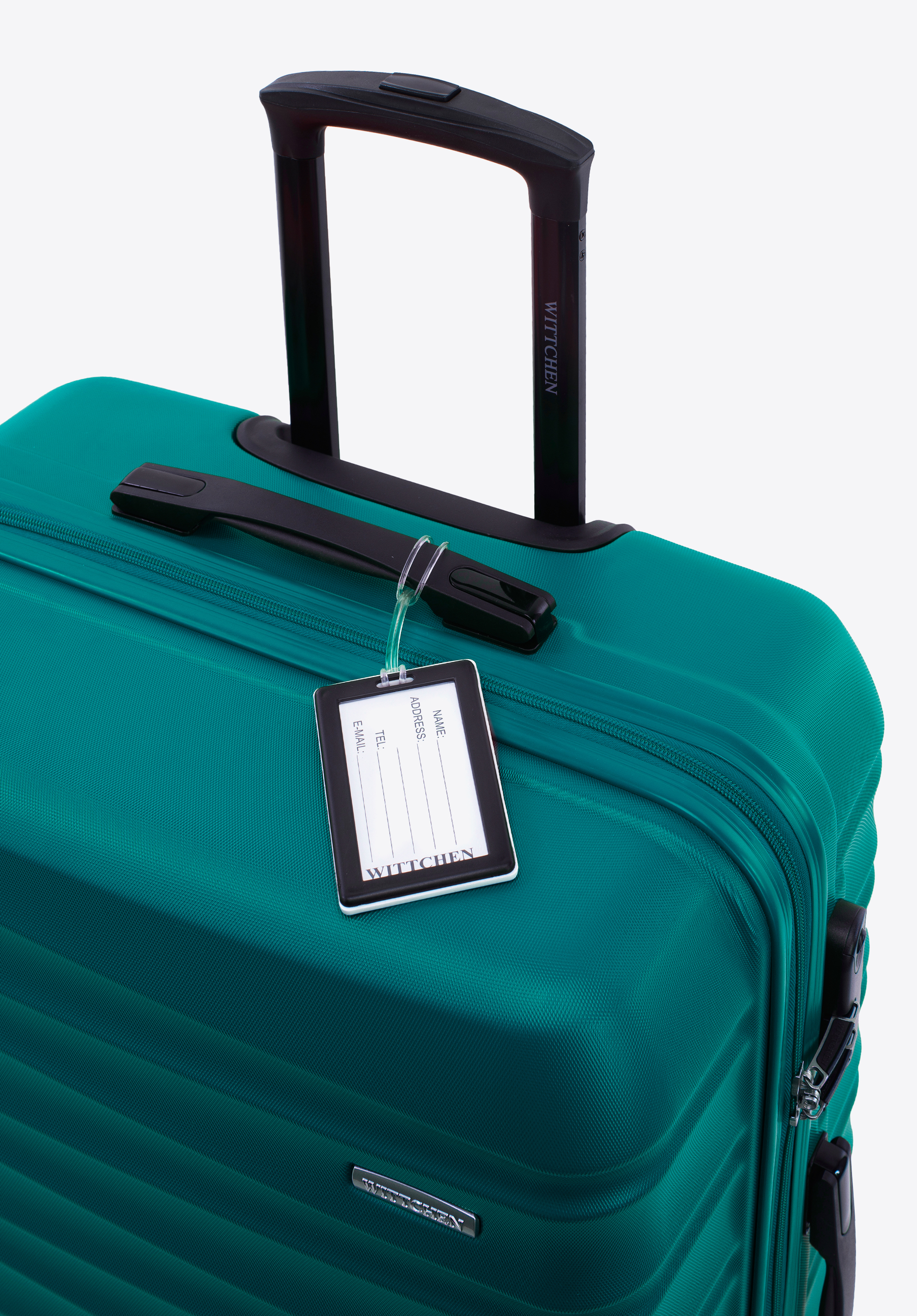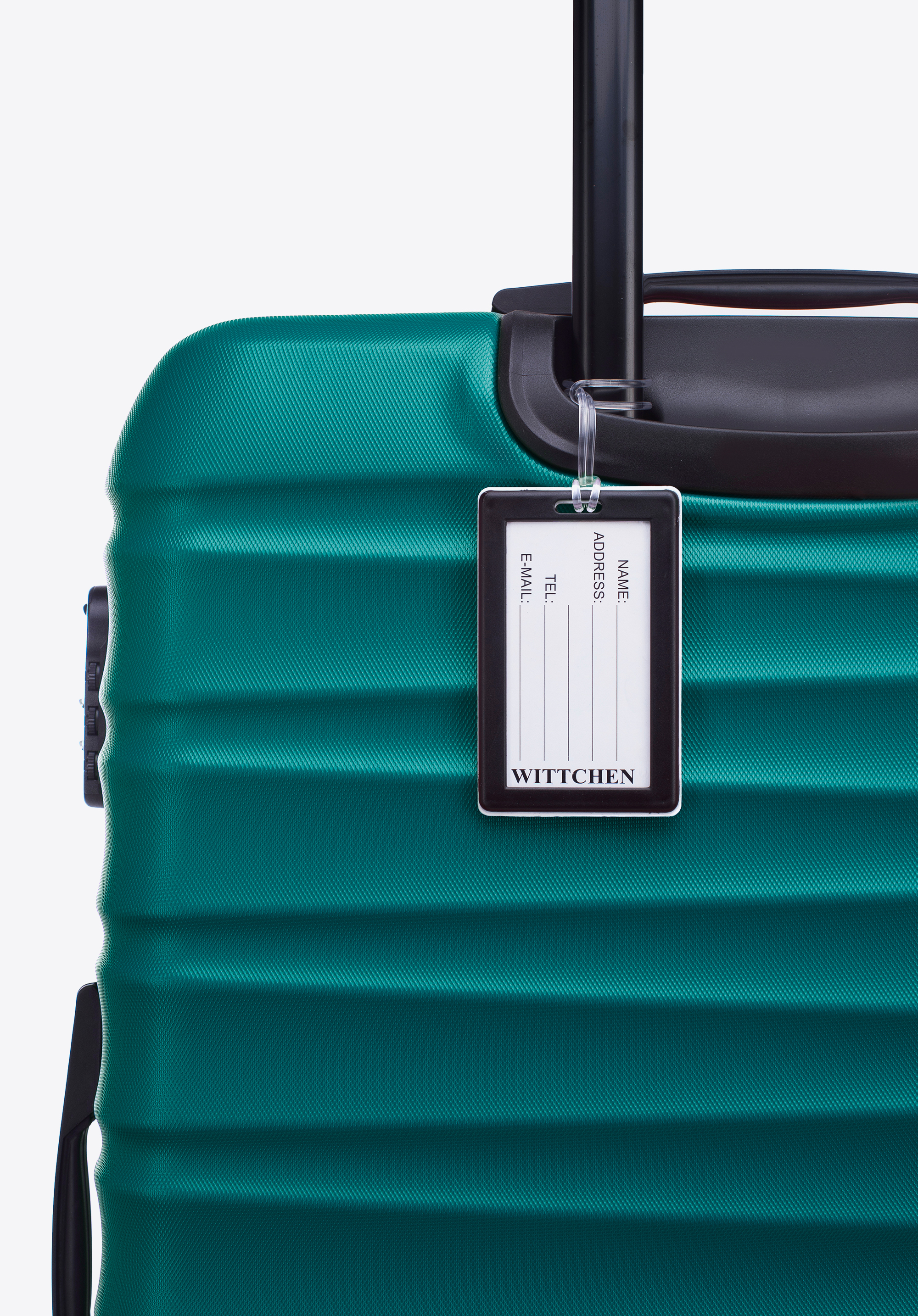 Велика валіза з ABS-пластику та багажна бирка з логотипом зелена