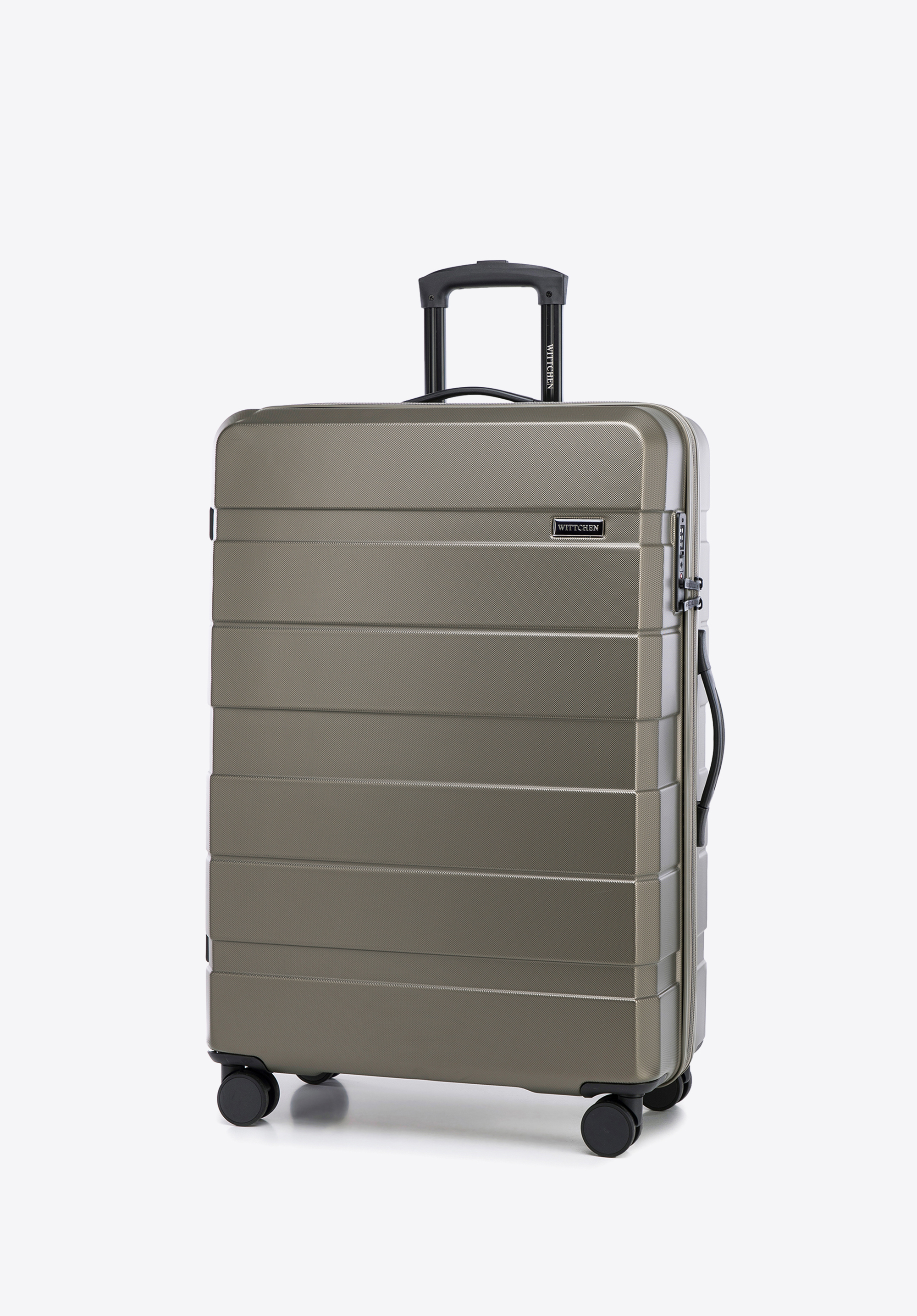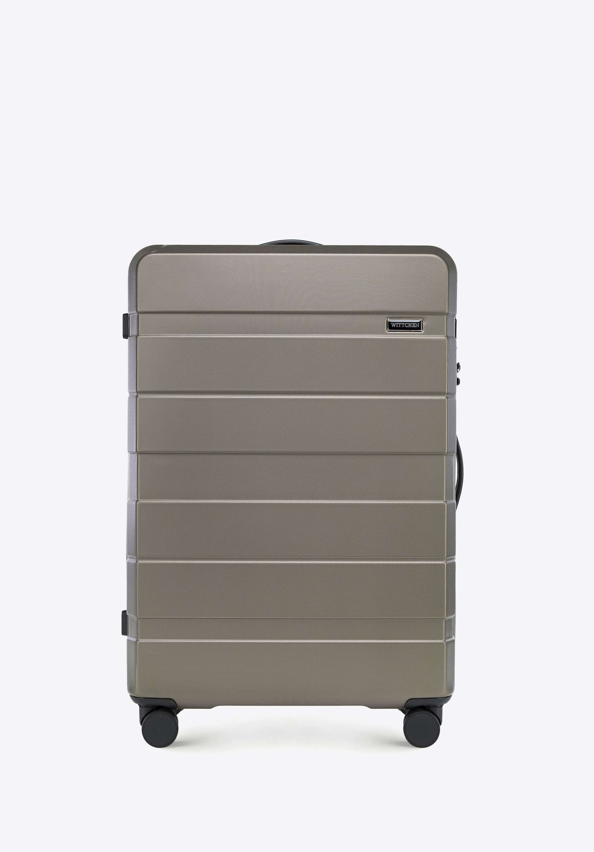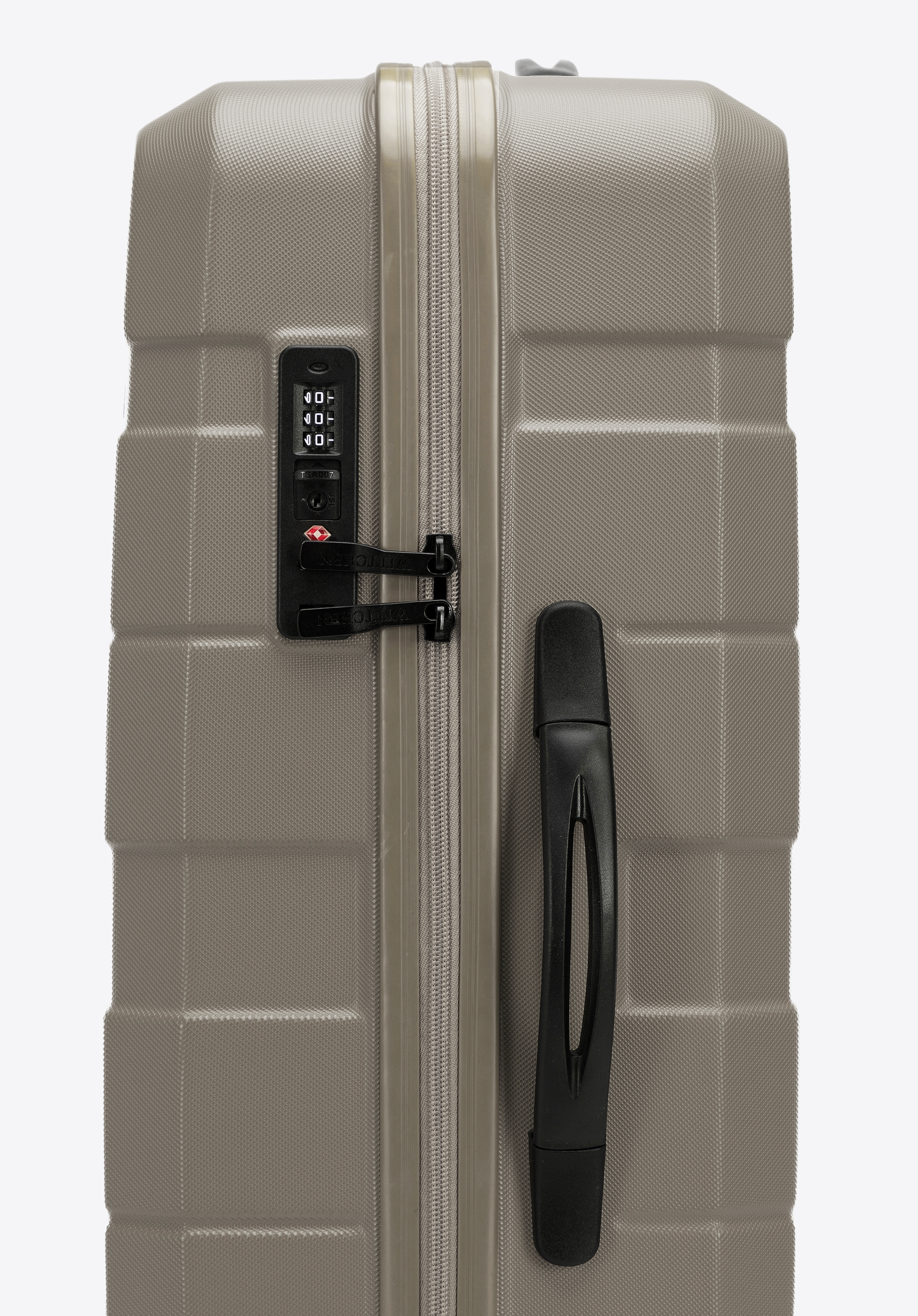 Велика валіза з ABS з горизонтальними смугами сіро-бежева
