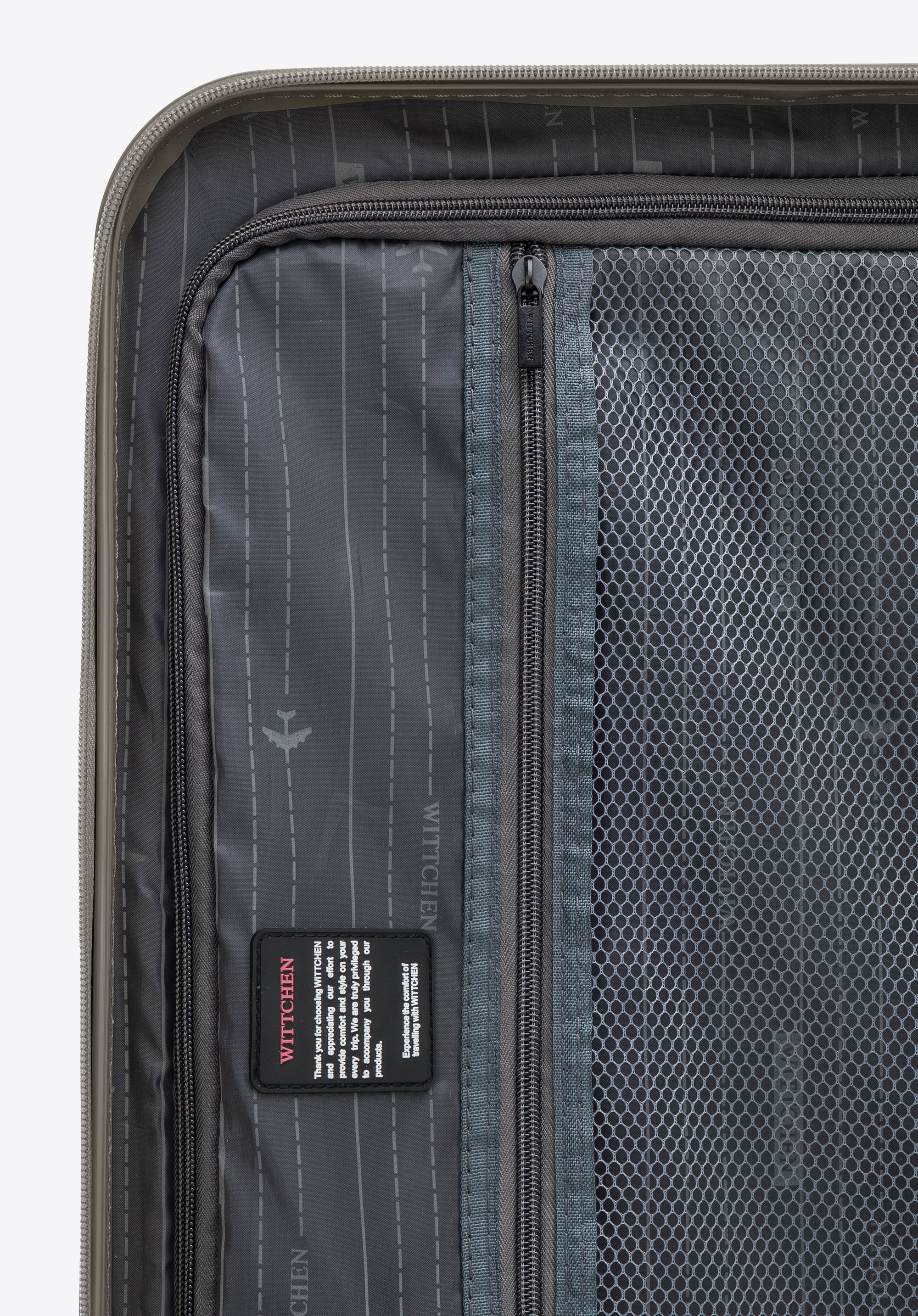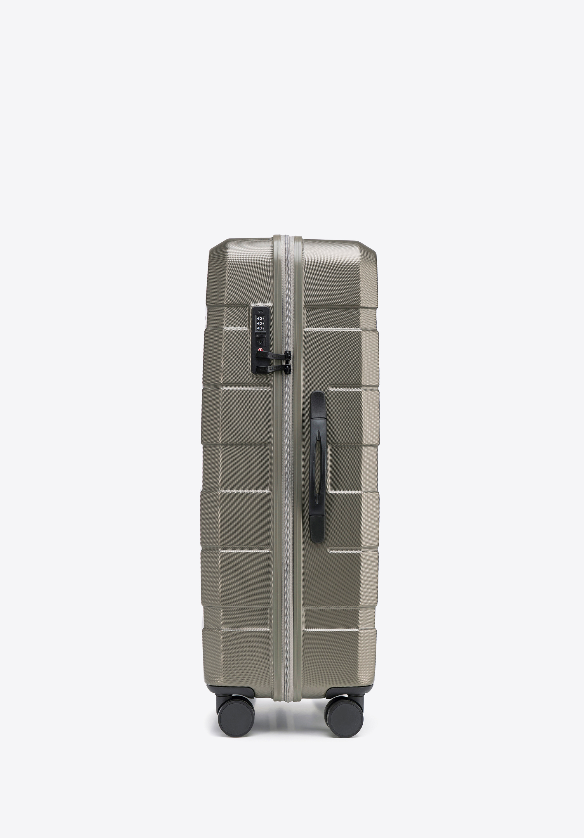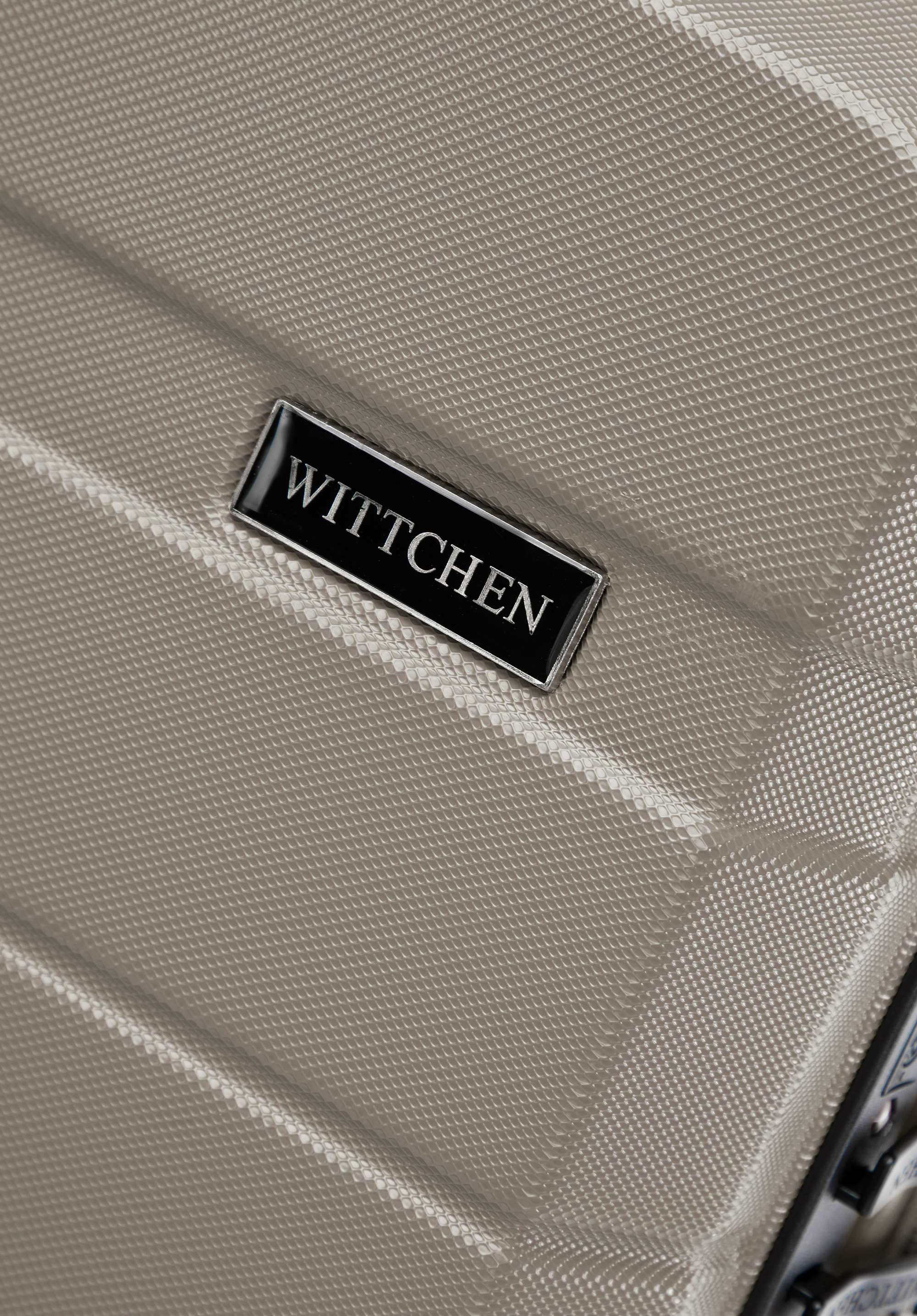 Велика валіза з ABS з горизонтальними смугами сіро-бежева