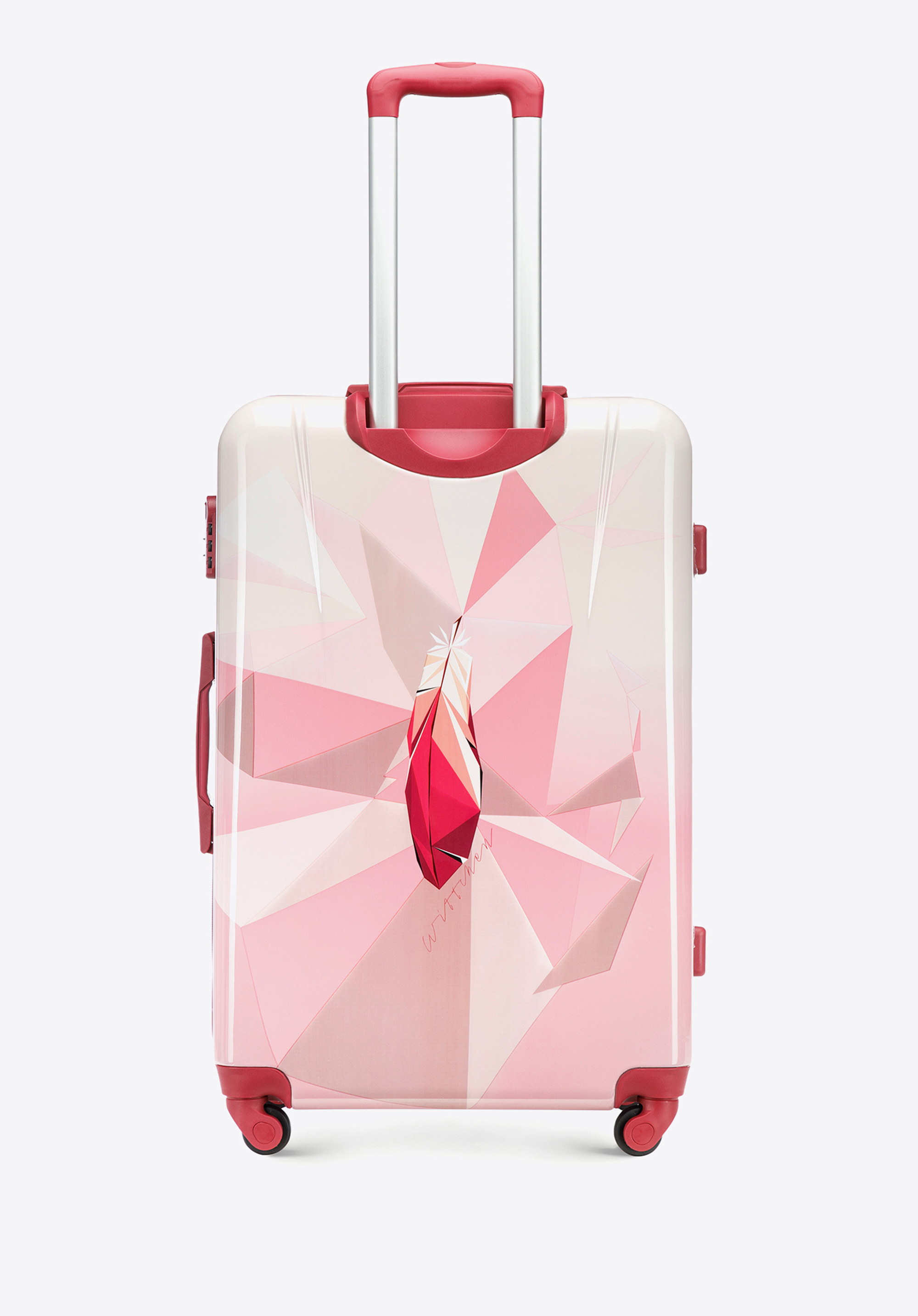 Ця велика валіза приверне багато уваги. Виготовлена з ABS, додатково покрита шаром полікарбонату. Оригінальний дизайн, що відсилає до природи і подорожей, стане ідеальним аксесуаром для кожного любителя пригод і далеких подорожей. Всередині вона ідеально організована, а завдяки маневреним колесам і висувній телескопічній ручці її буде зручно перевозити. Ця модель доступна в різних кольорах, тому ви можете підібрати її під себе, а також легко знайти валізу в аеропорту. Велика валіза з ABS з принтом урізноманітнить кожну вашу подорож.