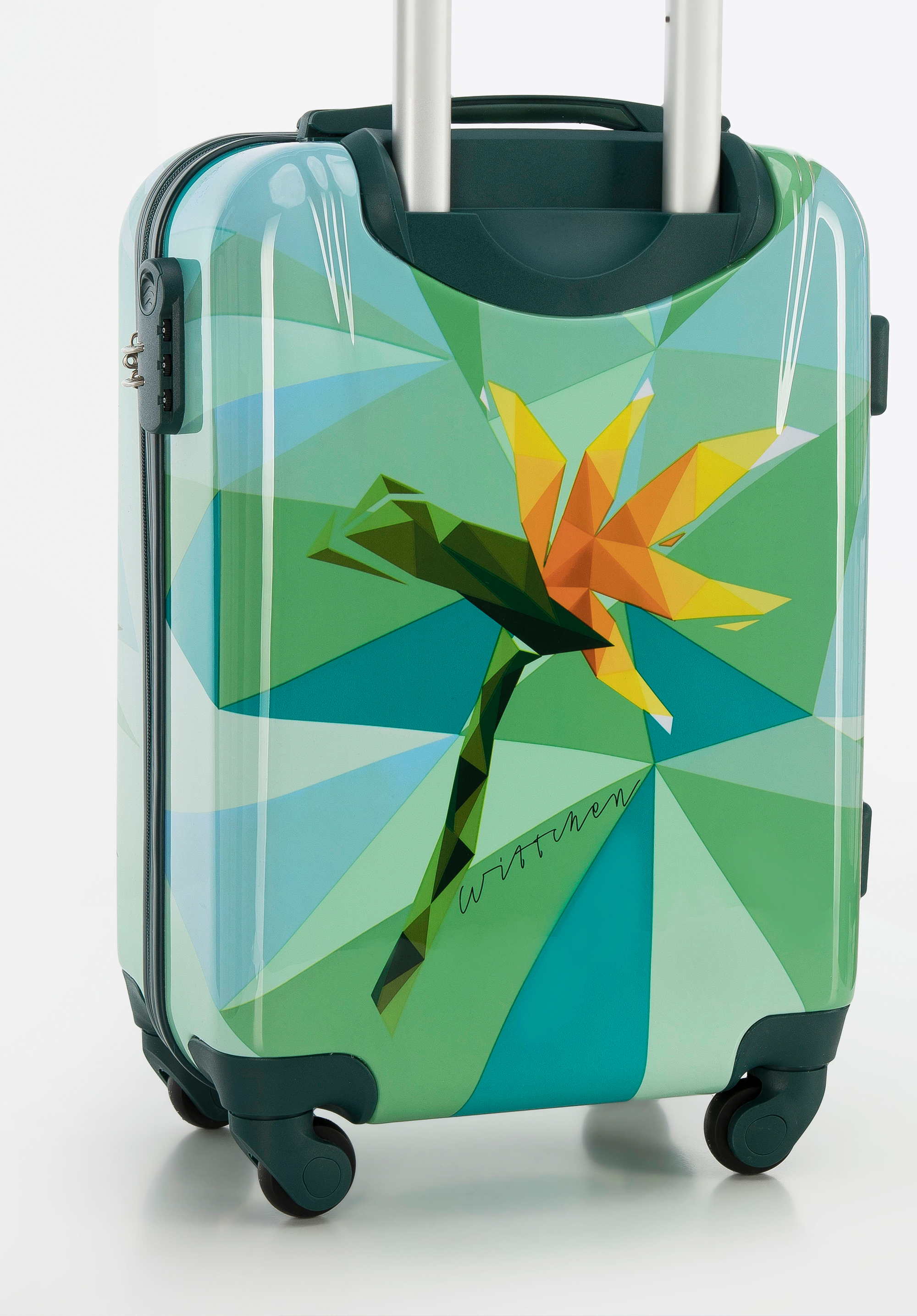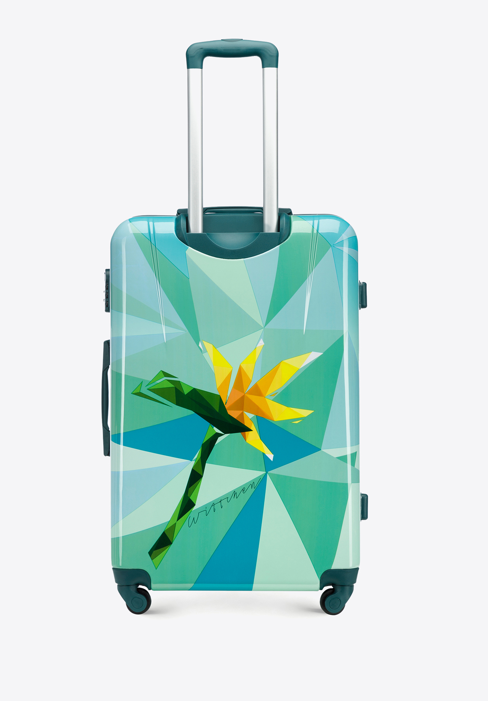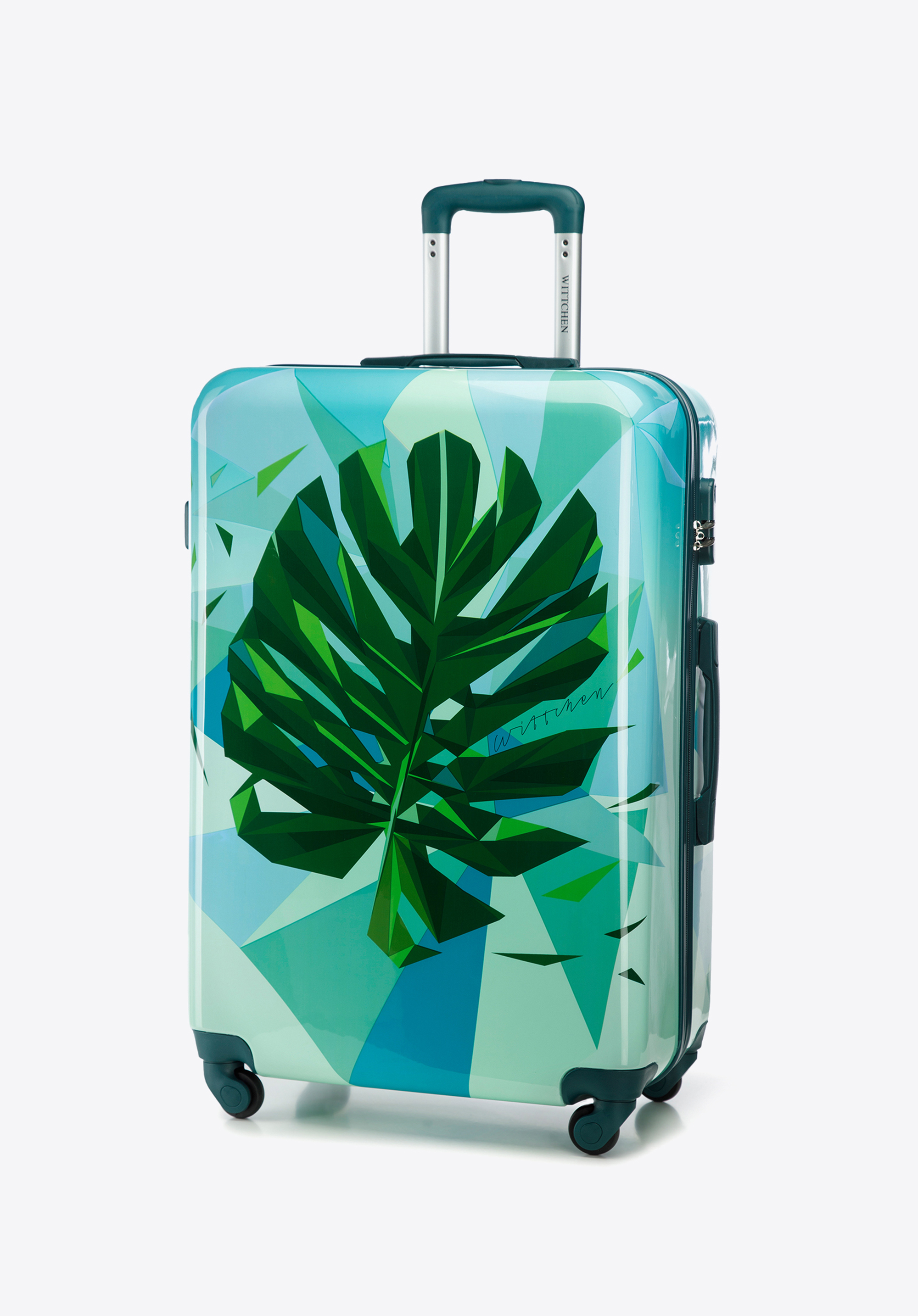Ця велика валіза приверне багато уваги. Виготовлена з ABS, додатково покрита шаром полікарбонату. Оригінальний дизайн, що відсилає до природи і подорожей, стане ідеальним аксесуаром для кожного любителя пригод і далеких подорожей. Всередині вона ідеально організована, а завдяки маневреним колесам і висувній телескопічній ручці її буде зручно перевозити. Ця модель доступна в різних кольорах, тому ви можете підібрати її під себе, а також легко знайти валізу в аеропорту. Велика валіза з ABS з принтом урізноманітнить кожну вашу подорож.
