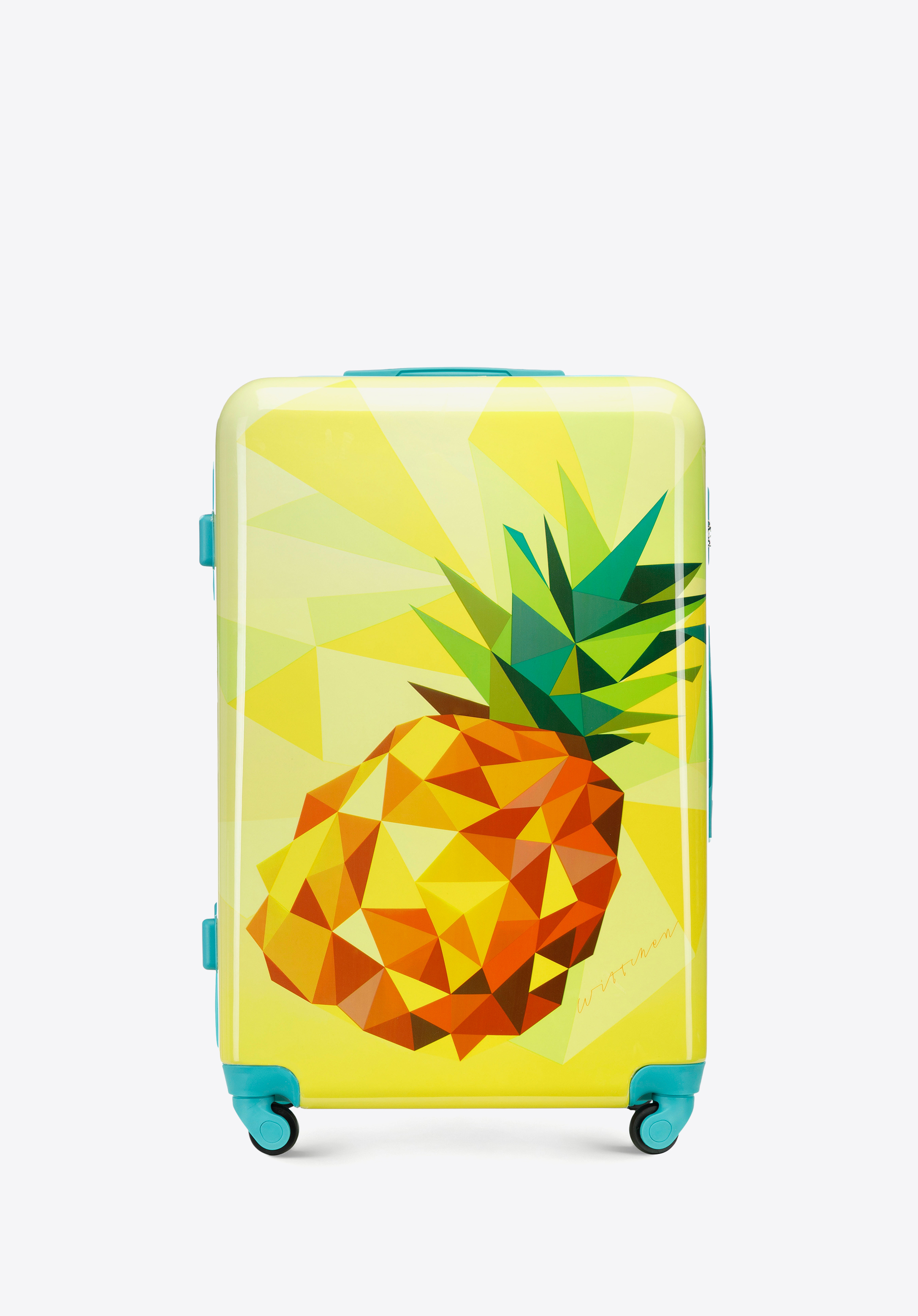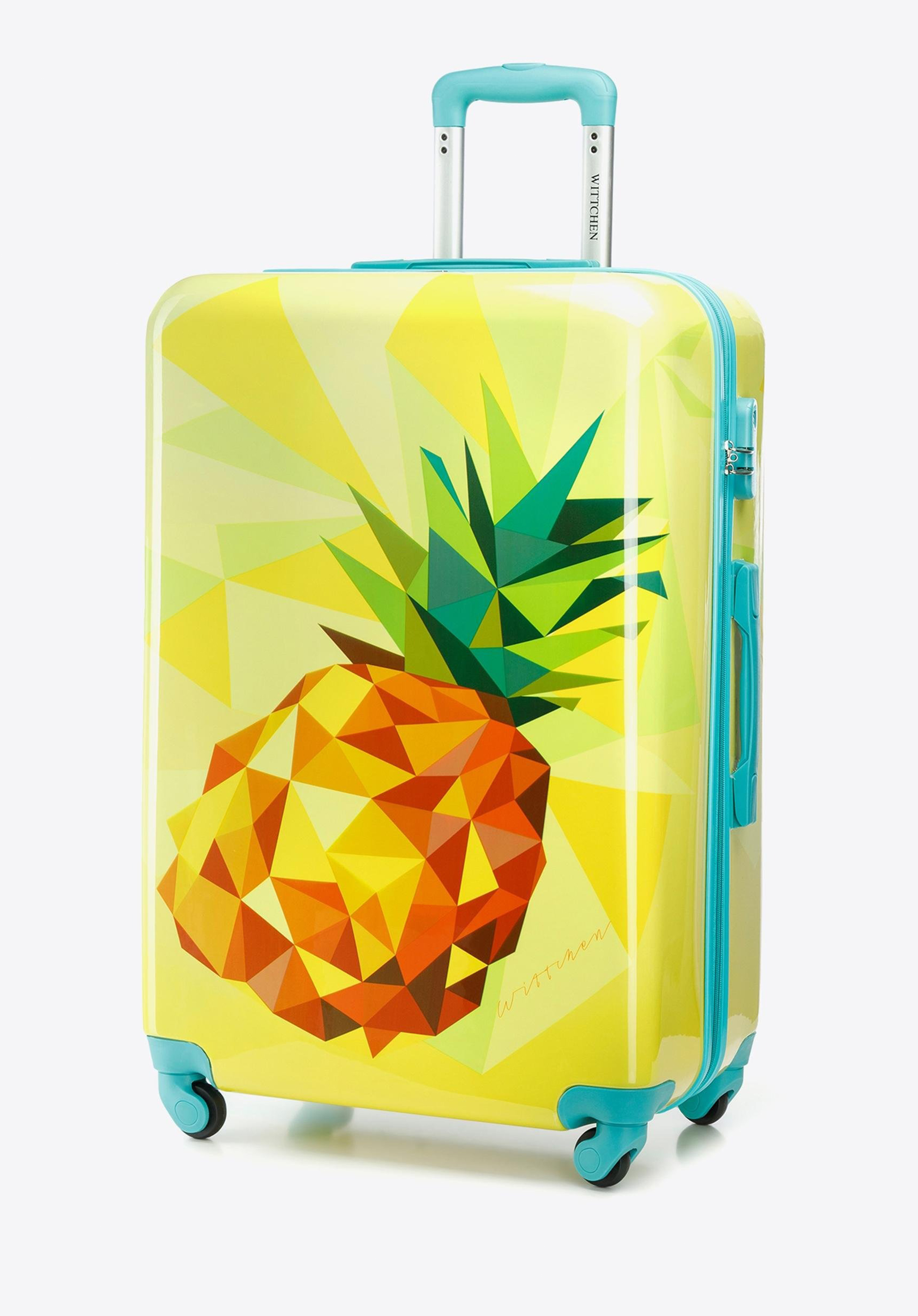 Ця велика валіза приверне багато уваги. Виготовлена з ABS, додатково покрита шаром полікарбонату. Оригінальний дизайн, що відсилає до природи і подорожей, стане ідеальним аксесуаром для кожного любителя пригод і далеких подорожей. Всередині вона ідеально організована, а завдяки маневреним колесам і висувній телескопічній ручці її буде зручно перевозити. Ця модель доступна в різних кольорах, тому ви можете підібрати її під себе, а також легко знайти валізу в аеропорту. Велика валіза з ABS з принтом урізноманітнить кожну вашу подорож.