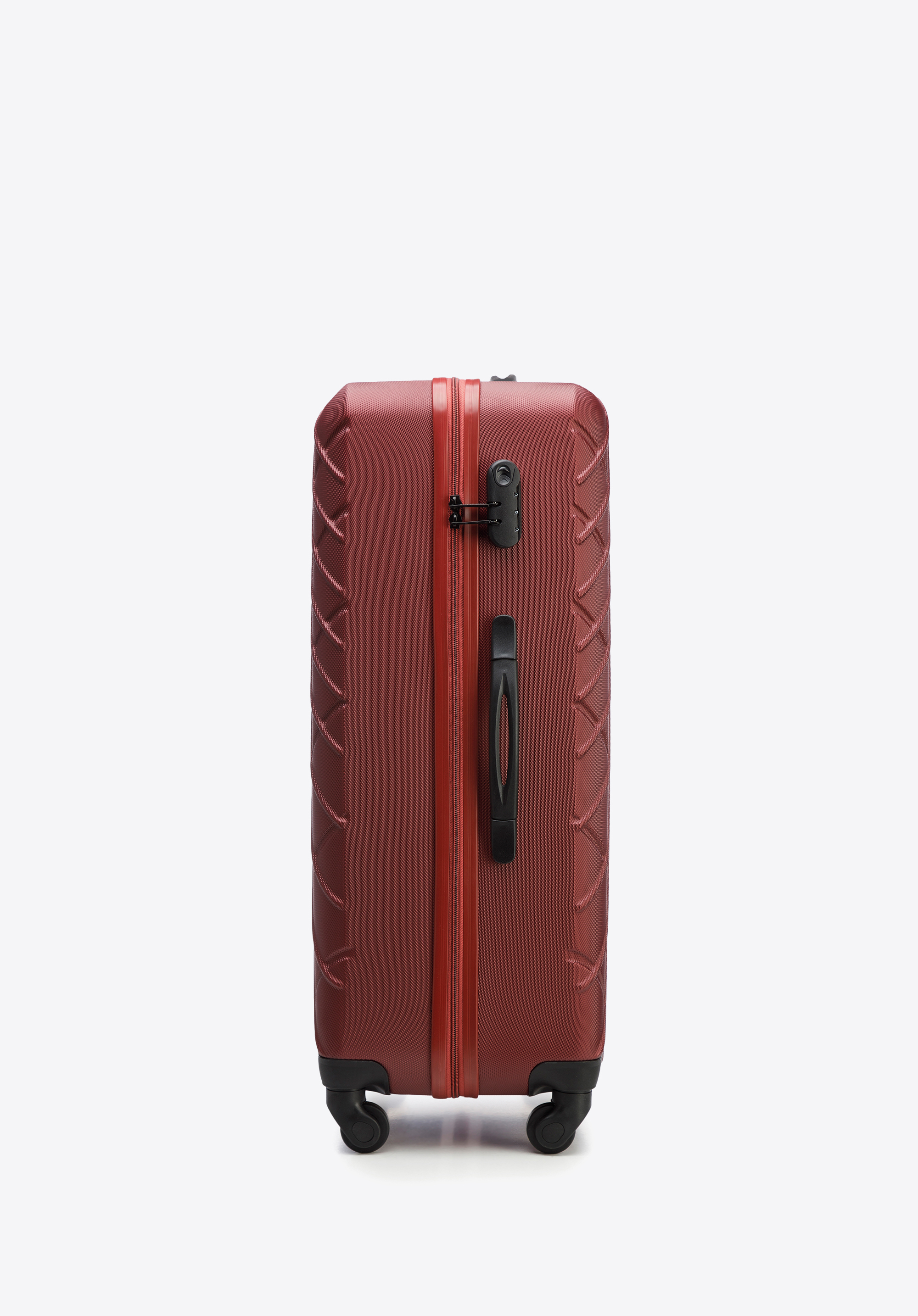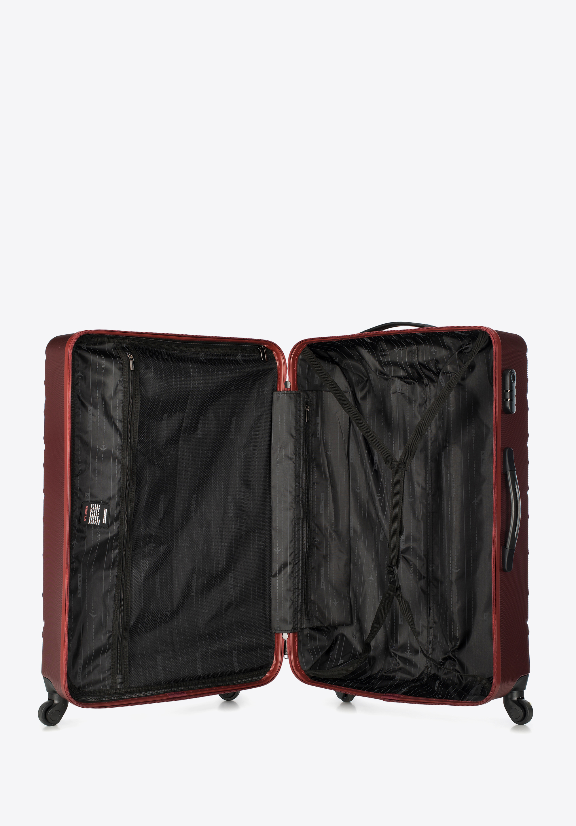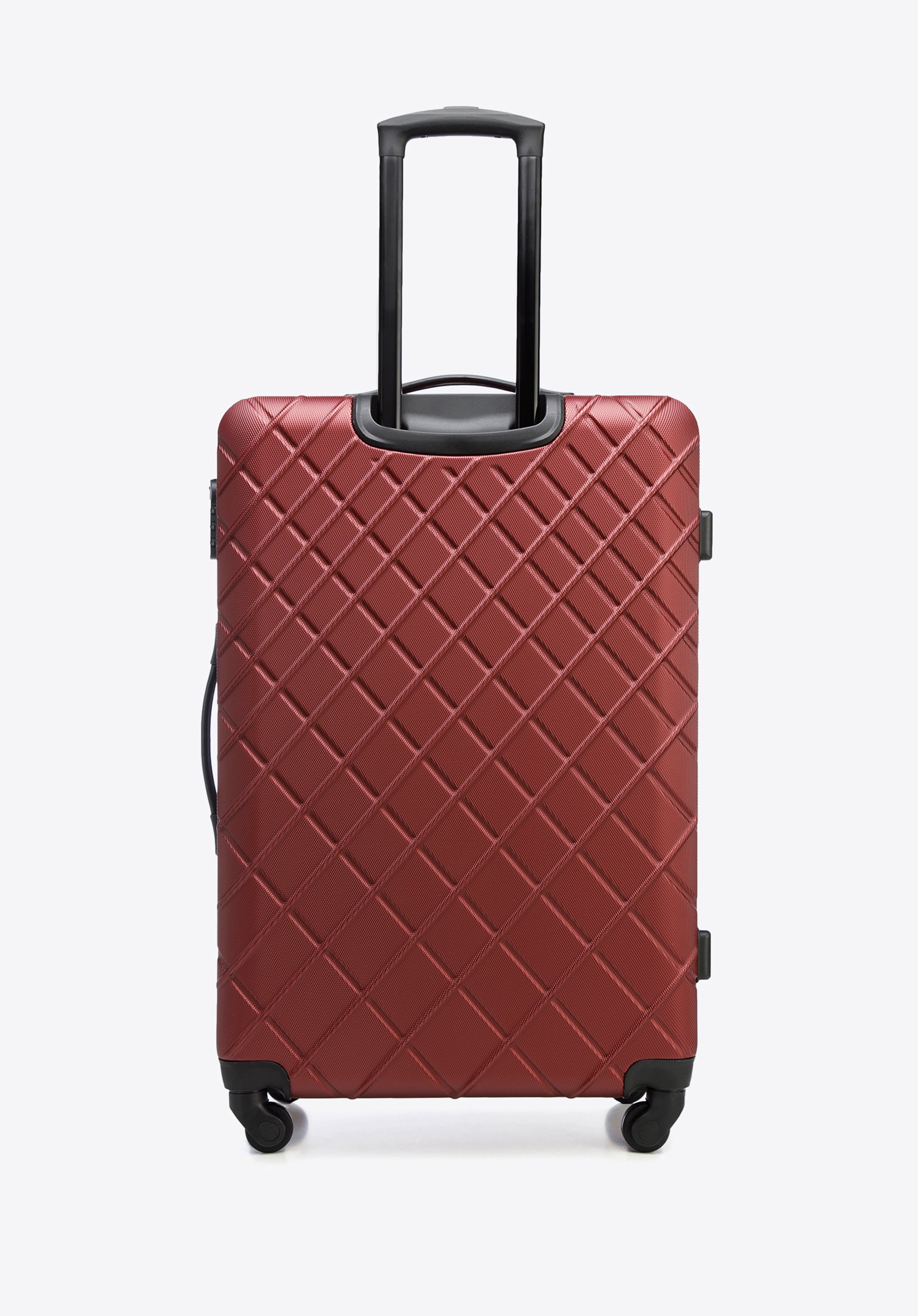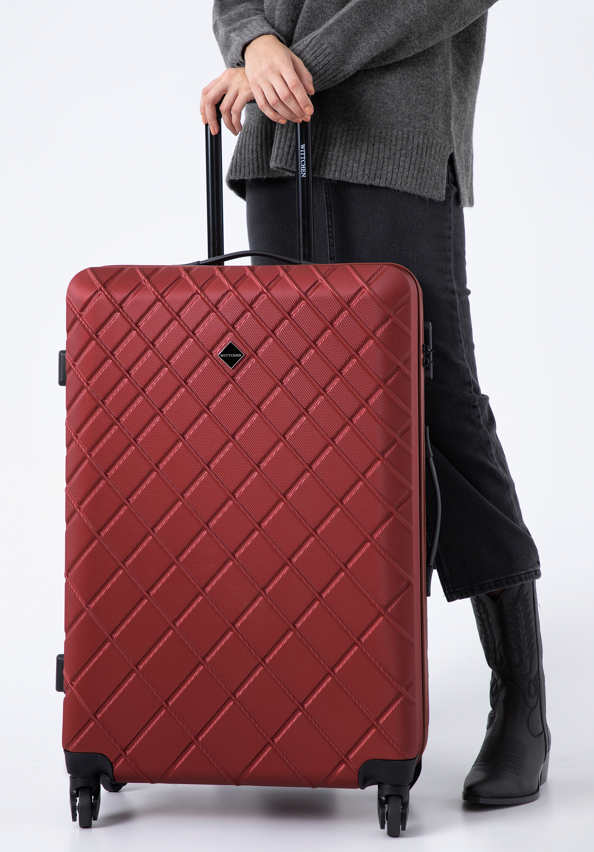 Валіза великого розміру виготовлена з ABS-пластику, який дуже стійкий і, крім того, відмінно виглядає. Легка і міцна валіза підійде для коротких поїздок на вихідні або послужить зручним багажем для більш тривалого маршруту. Люди, які часто подорожують, оцінять цю модель за тиху роботу коліс, міцність пластику і модний візерунок на корпусі.