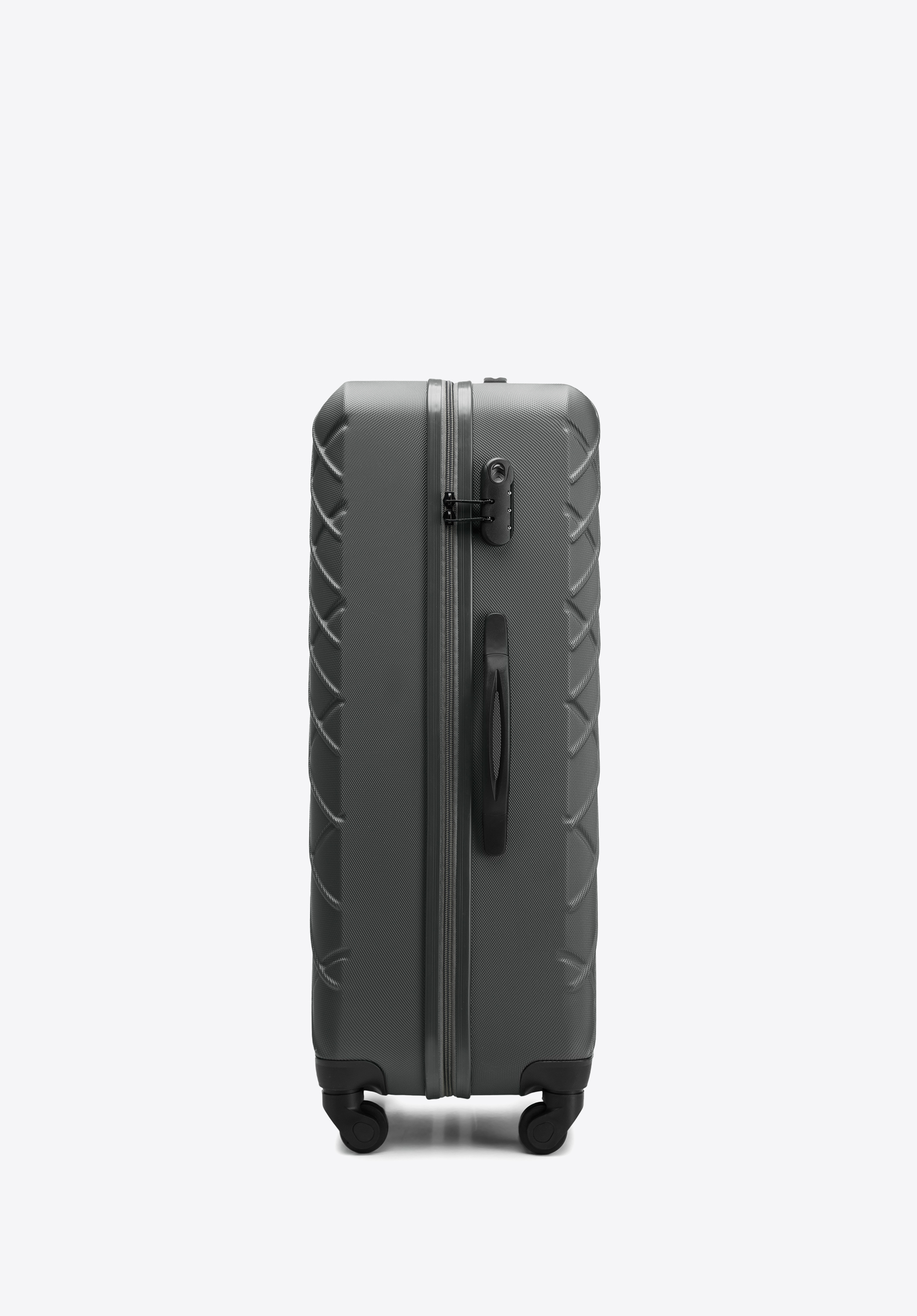 Валіза великого розміру виготовлена з ABS-пластику, який дуже стійкий і, крім того, відмінно виглядає. Легка і міцна валіза підійде для коротких поїздок на вихідні або послужить зручним багажем для більш тривалого маршруту. Люди, які часто подорожують, оцінять цю модель за тиху роботу коліс, міцність пластику і модний візерунок на корпусі.