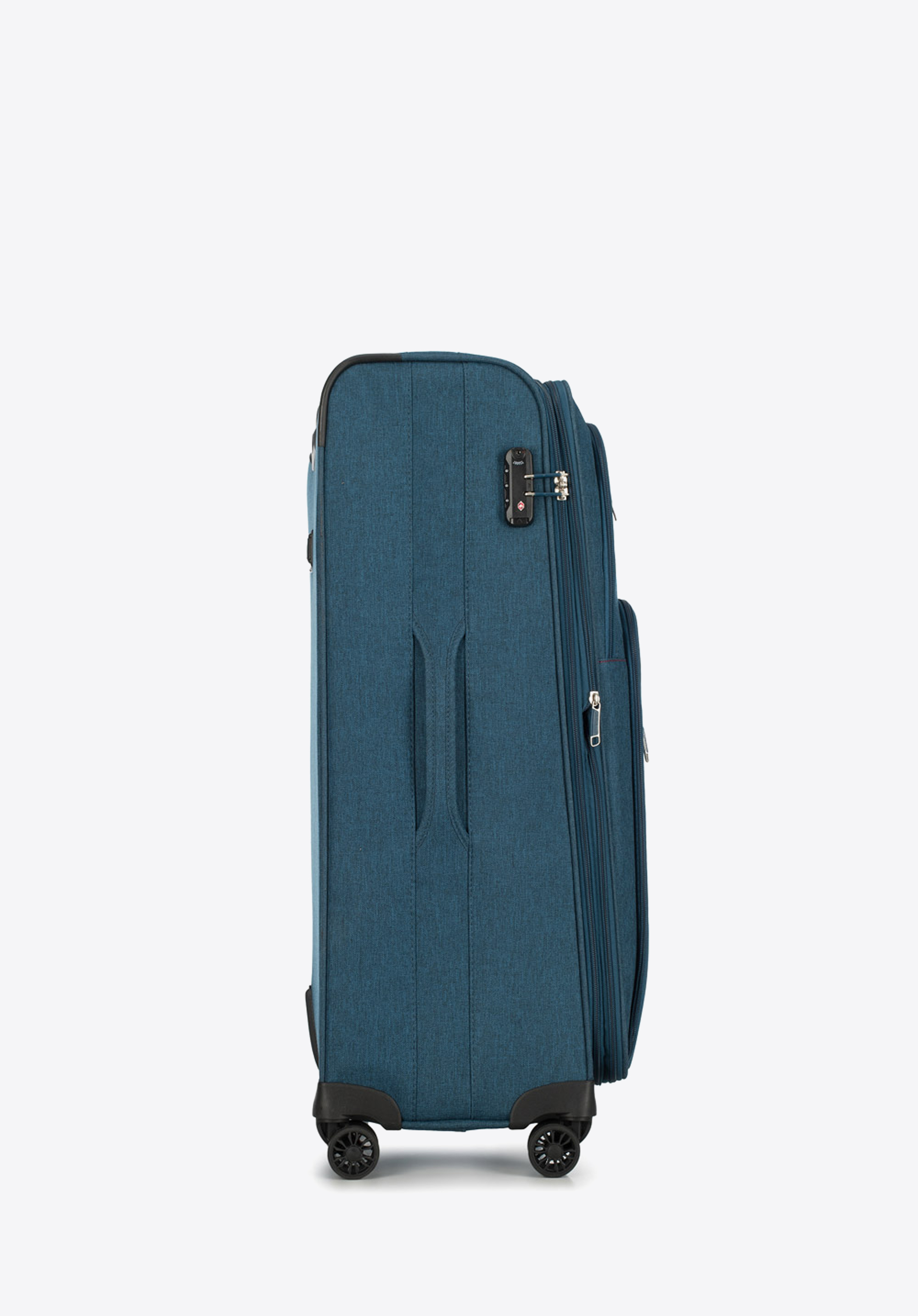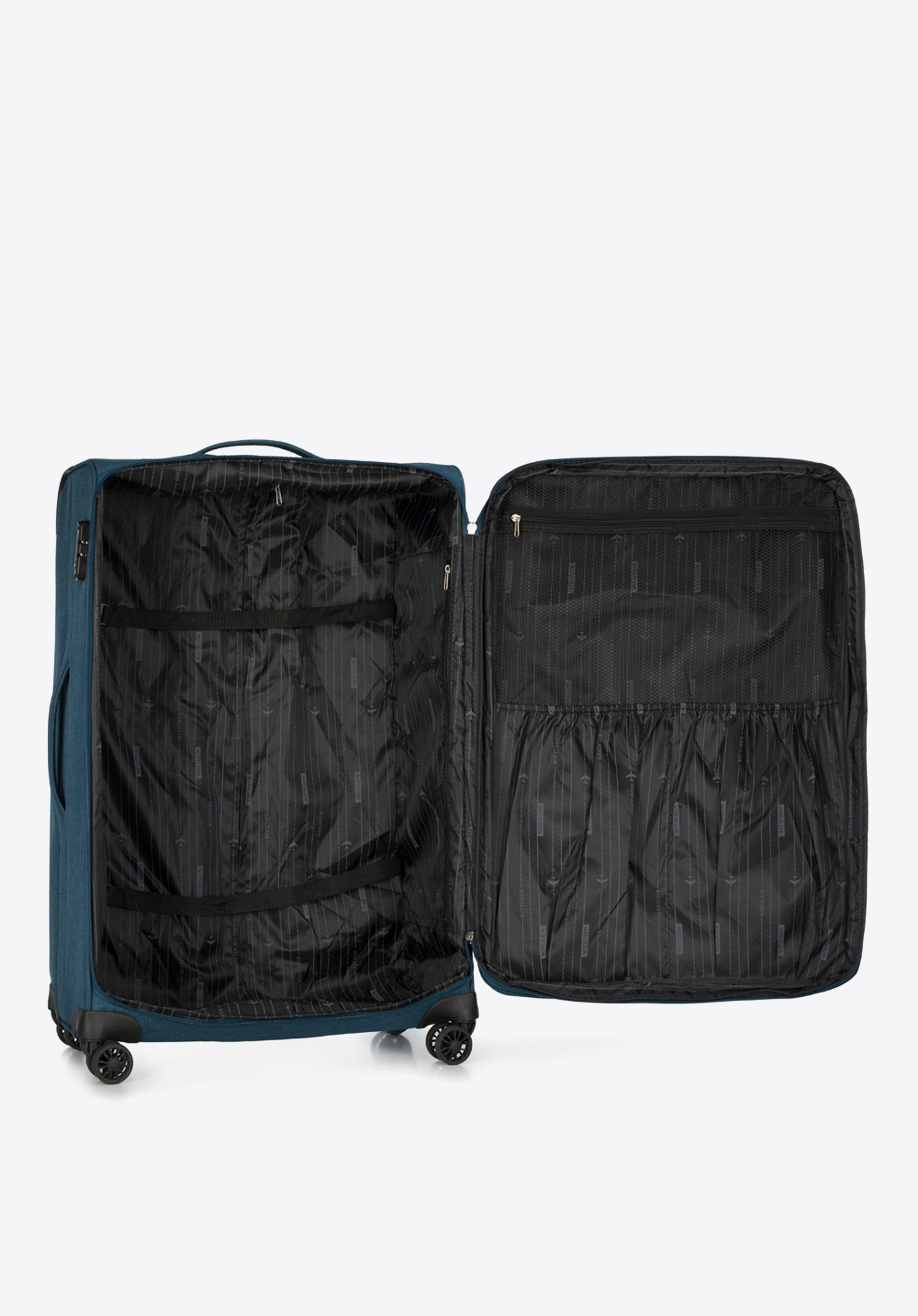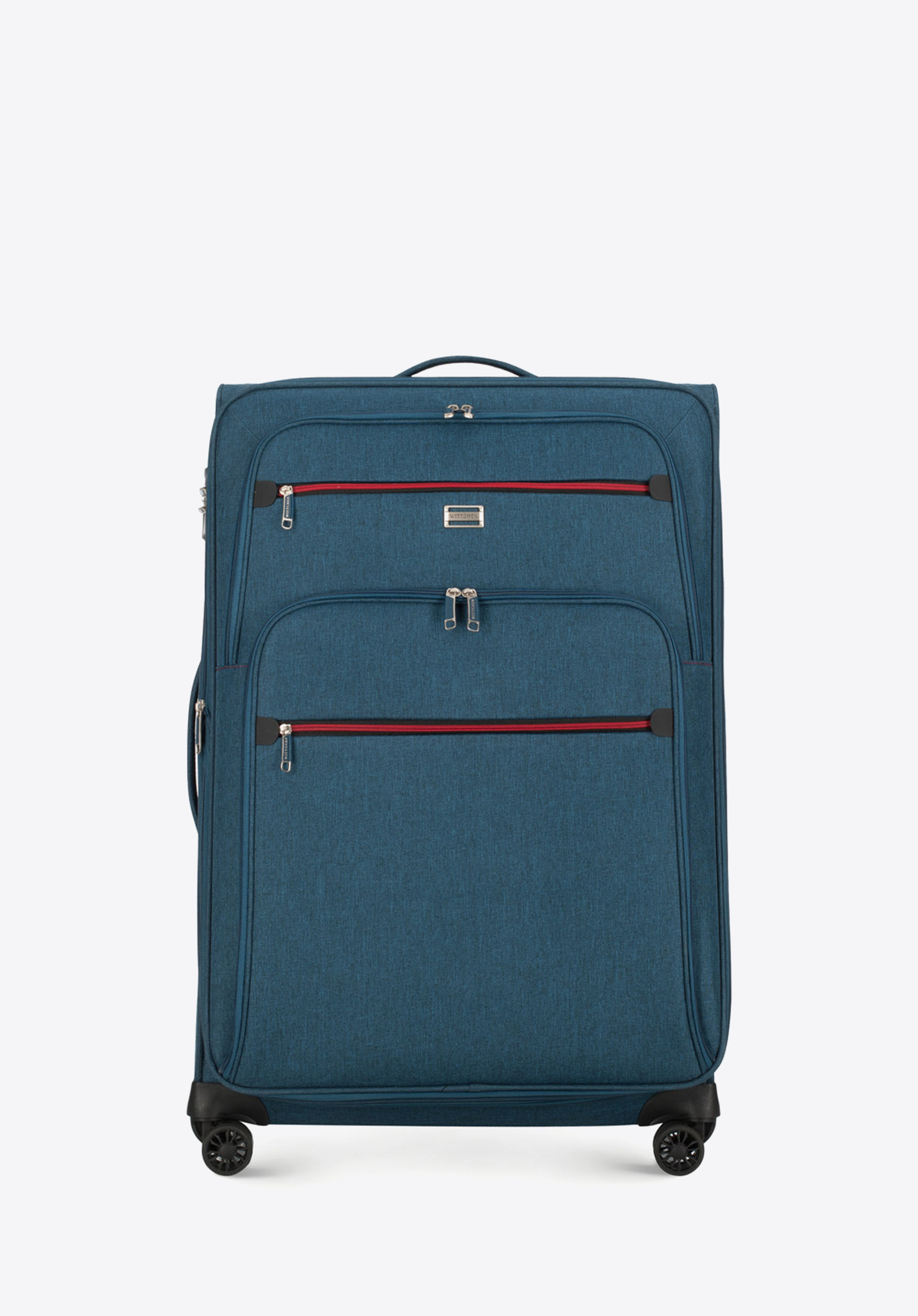 Валіза великого розміру-відмінний вибір, якщо ви плануєте поїздку на кілька днів. Всередині достатньо місця, щоб взяти саме те, що потрібно для короткої відпустки. Ви швидко оціните телескопічну ручку і дві ручки; одна зверху, а інша збоку від валізи. Завдяки спеціальним підтяжкам, після того, як ви упакуєте свої речі всередину, вони залишаться в призначеному місці. Поворотні колеса гарантують мобільність, а кодовий замок явно підвищить рівень безпеки. Вона зшита з високоякісного поліестеру, стійкого до подряпин і що легко чиститься. Середня валіза з кольоровою застібкою-блискавкою-відмінний вибір і гарантія найвищої якості виготовлення.