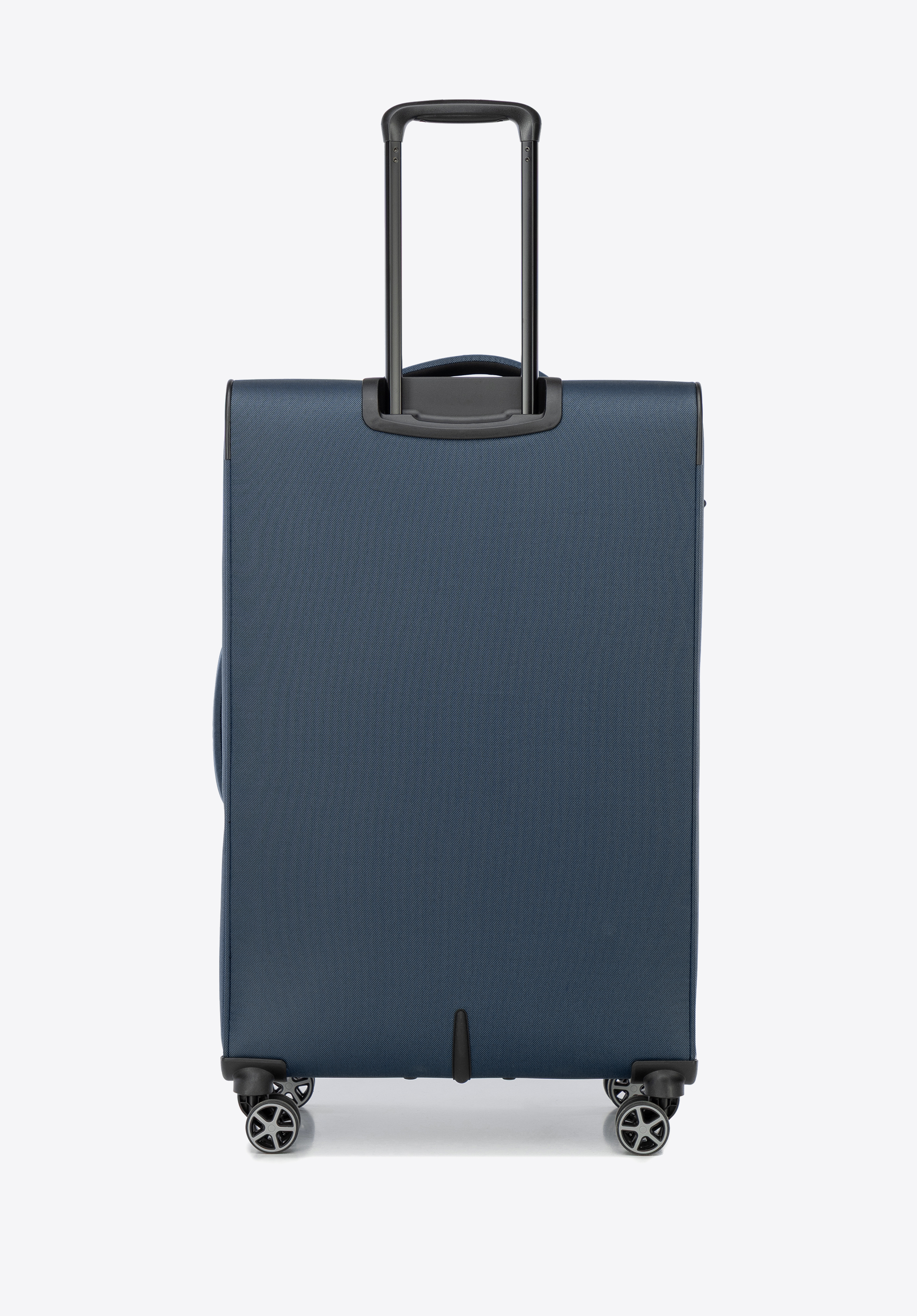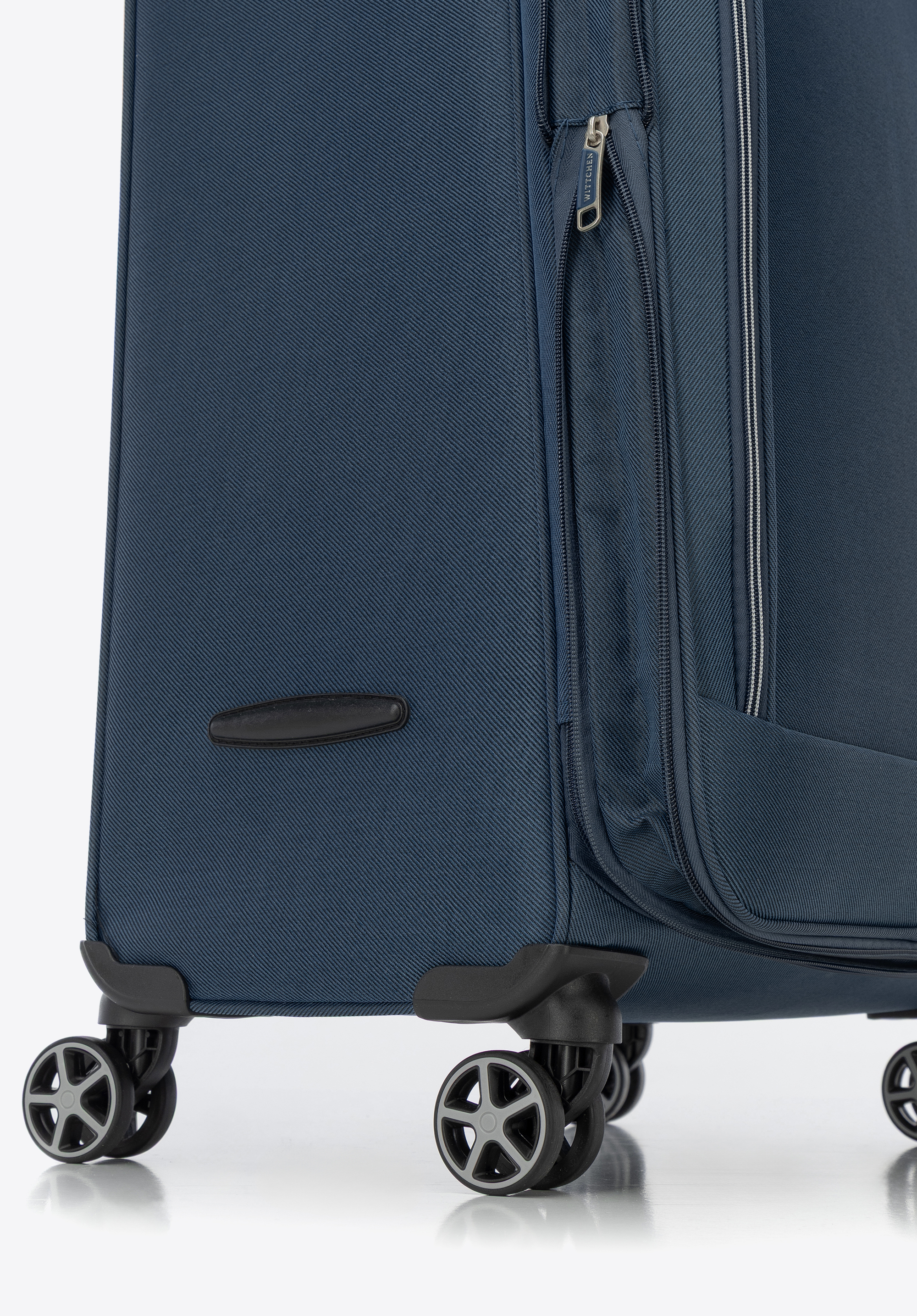 Шукаєте багаж, який вміщує все необхідне для тривалої подорожі? Ця велика валіза з м’якого поліестеру – ідеальне поєднання місткості, мобільності та сучасного дизайну. Функція розширення додає 4 см, що дає вам ще більше місця для додаткових речей – без шкоди для порядку чи комфорту використання. Чотири подвійні колеса, що обертаються на 360°, забезпечують маневреність у будь-якій ситуації.