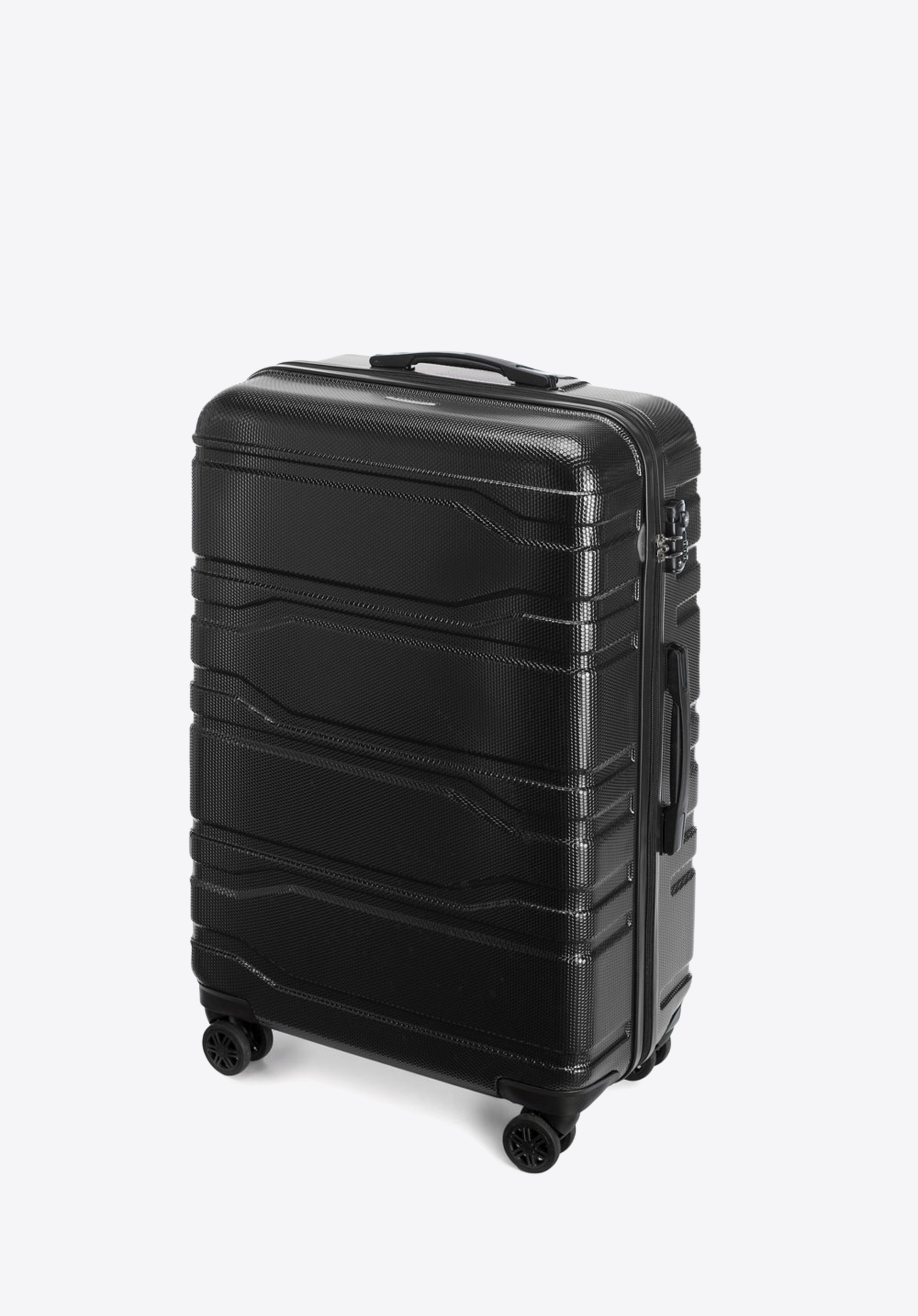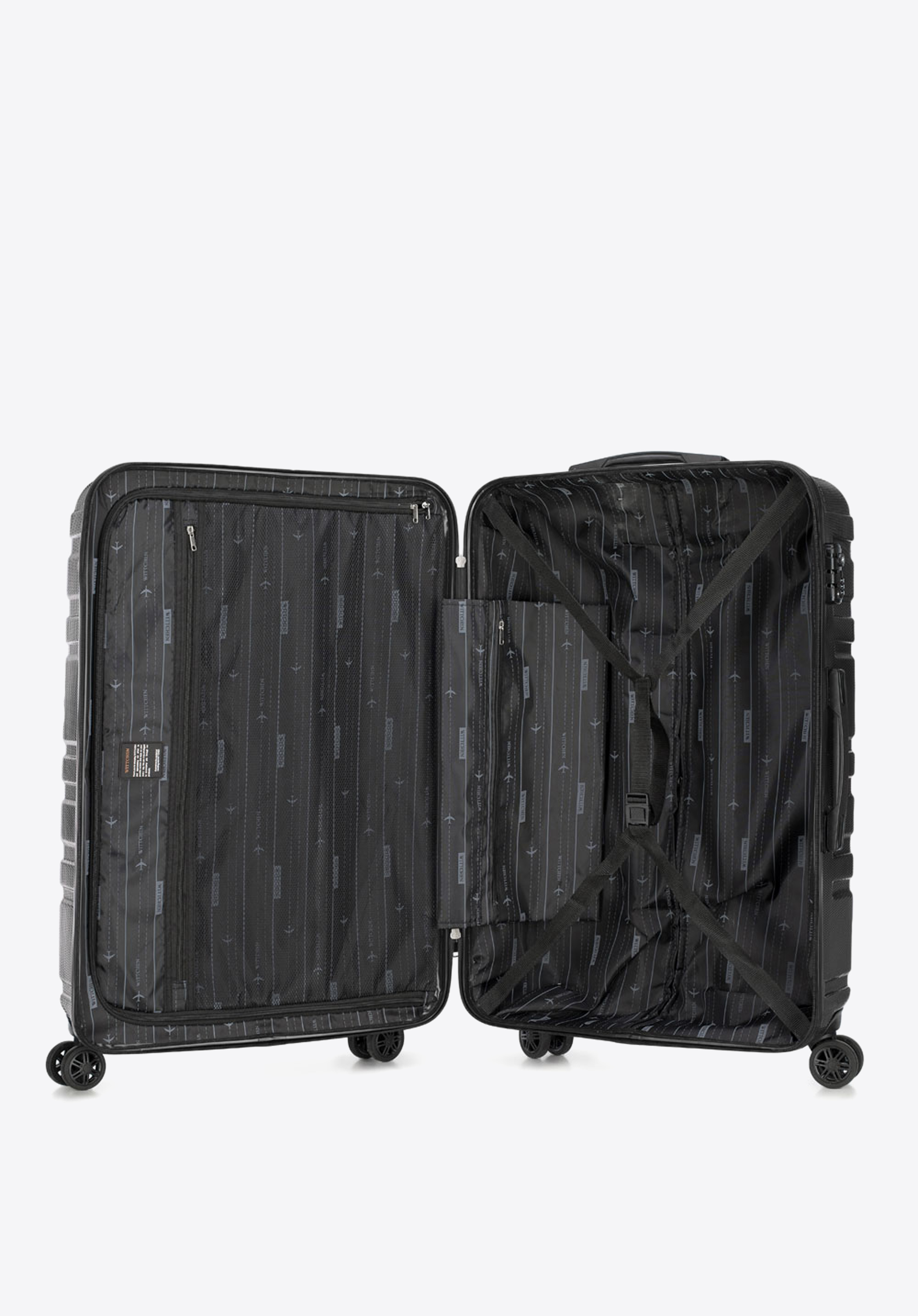 Валіза великого розміру виготевлена з дуже міцного полікарбонату, який характеризується пористою поверхнею, що дозволяє довго тримати валізу в хорошому стані. У представленому наборі висока функціональність йде рука об руку з сучасним дизайном. Горизонтальні лінії і небанальна колірна гамма порадують тих, хто стежить за тенденціями моди.