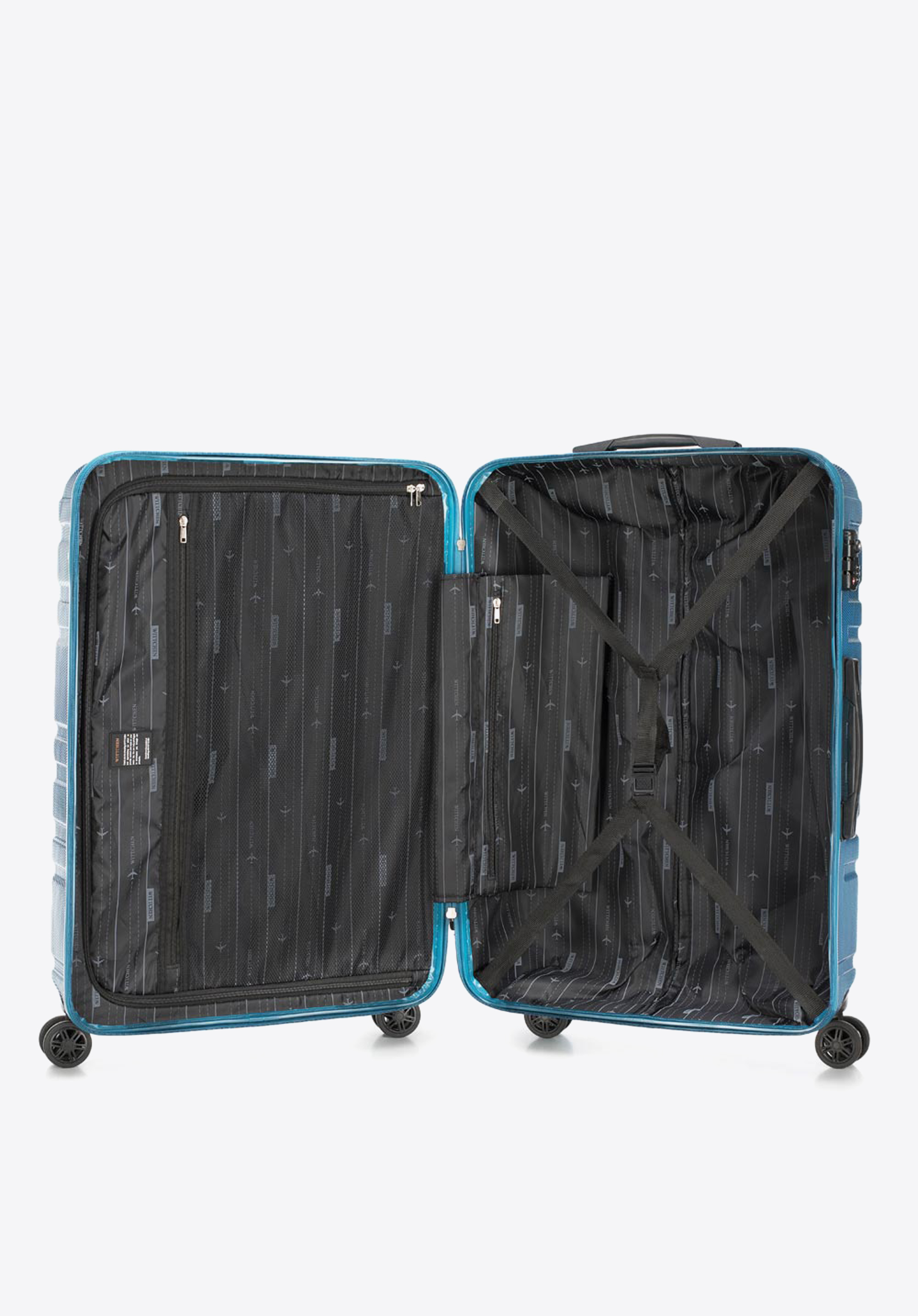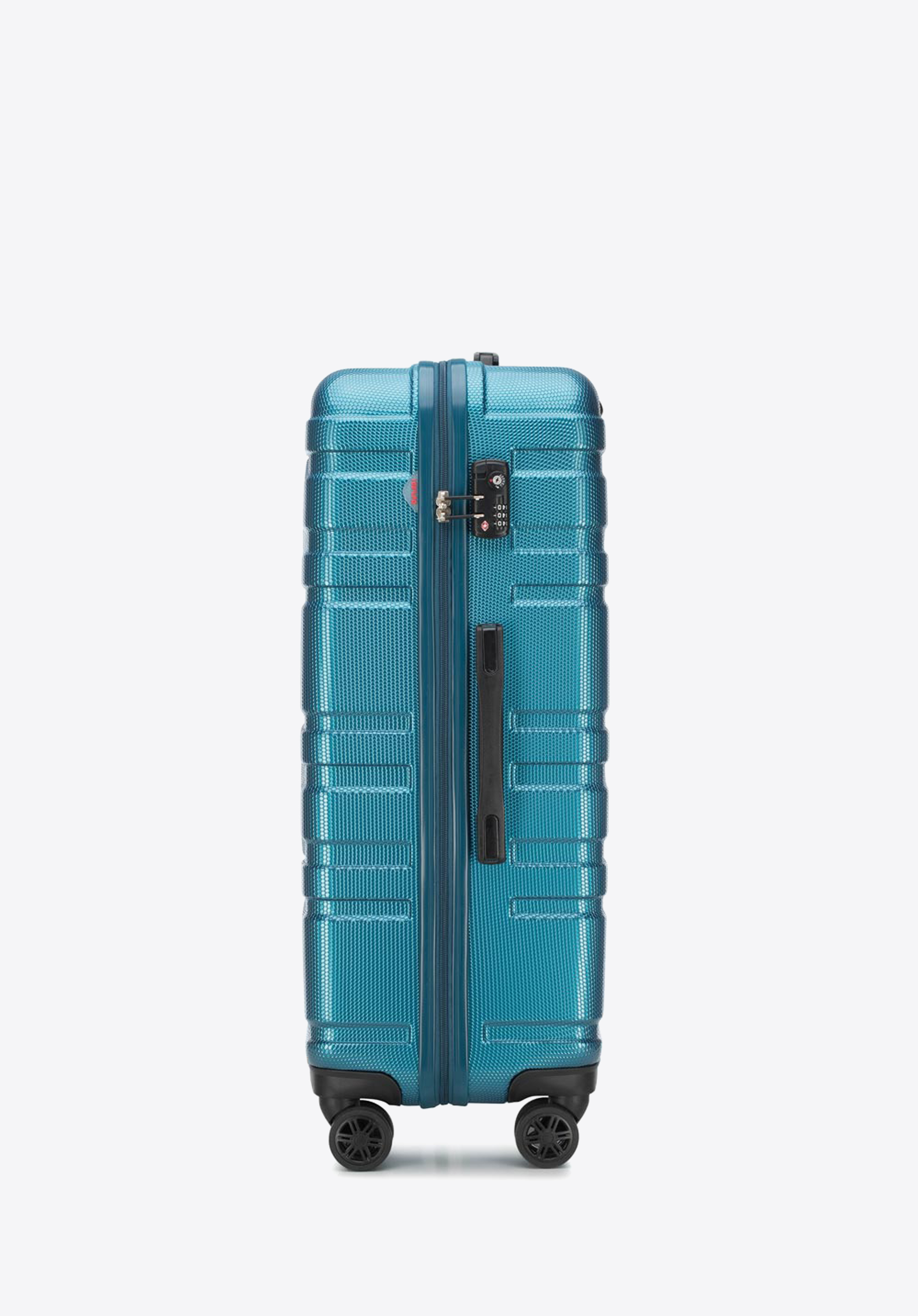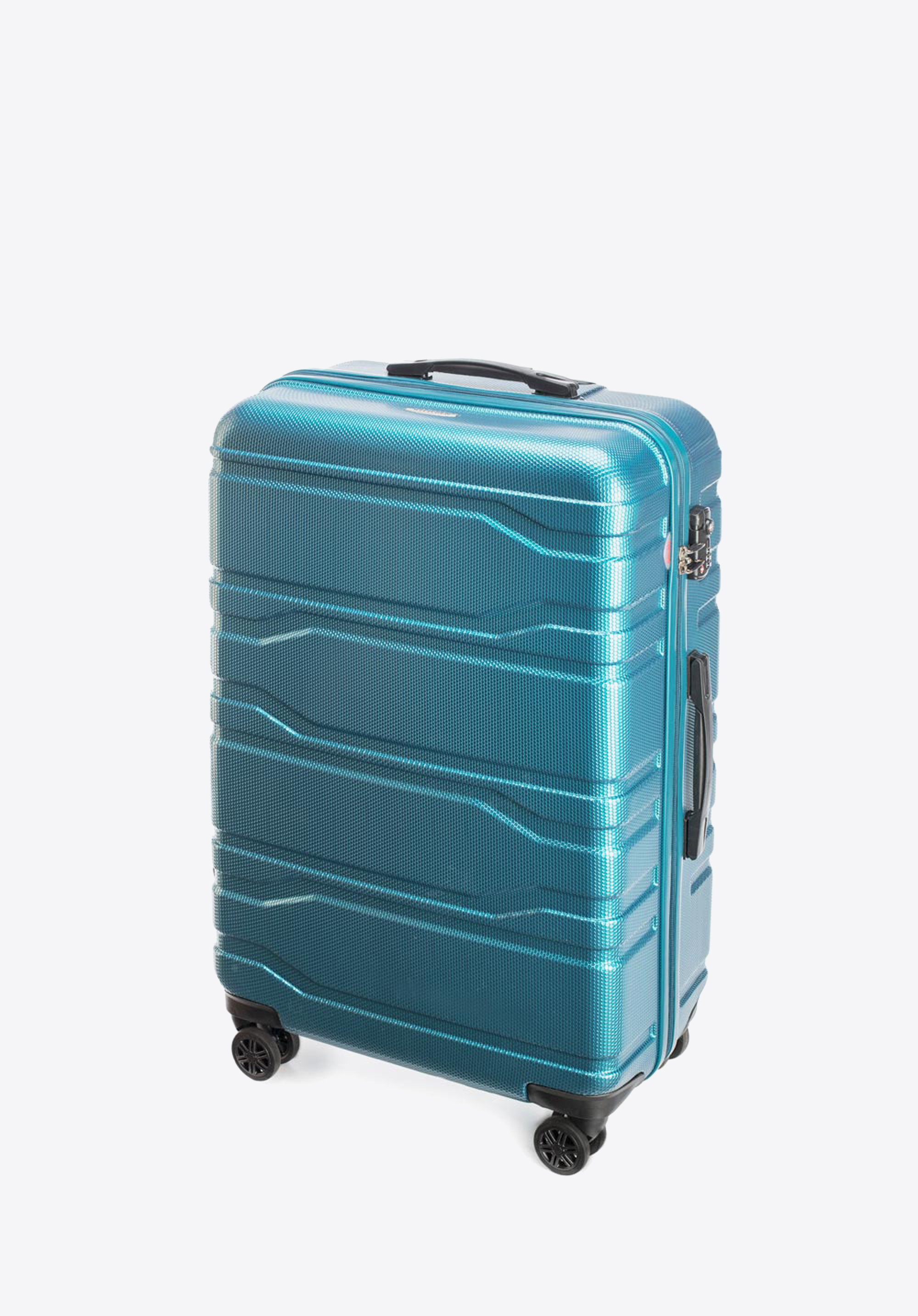 Валіза великого розміру виготевлена з дуже міцного полікарбонату, який характеризується пористою поверхнею, що дозволяє довго тримати валізу в хорошому стані. У представленому наборі висока функціональність йде рука об руку з сучасним дизайном. Горизонтальні лінії і небанальна колірна гамма порадують тих, хто стежить за тенденціями моди.