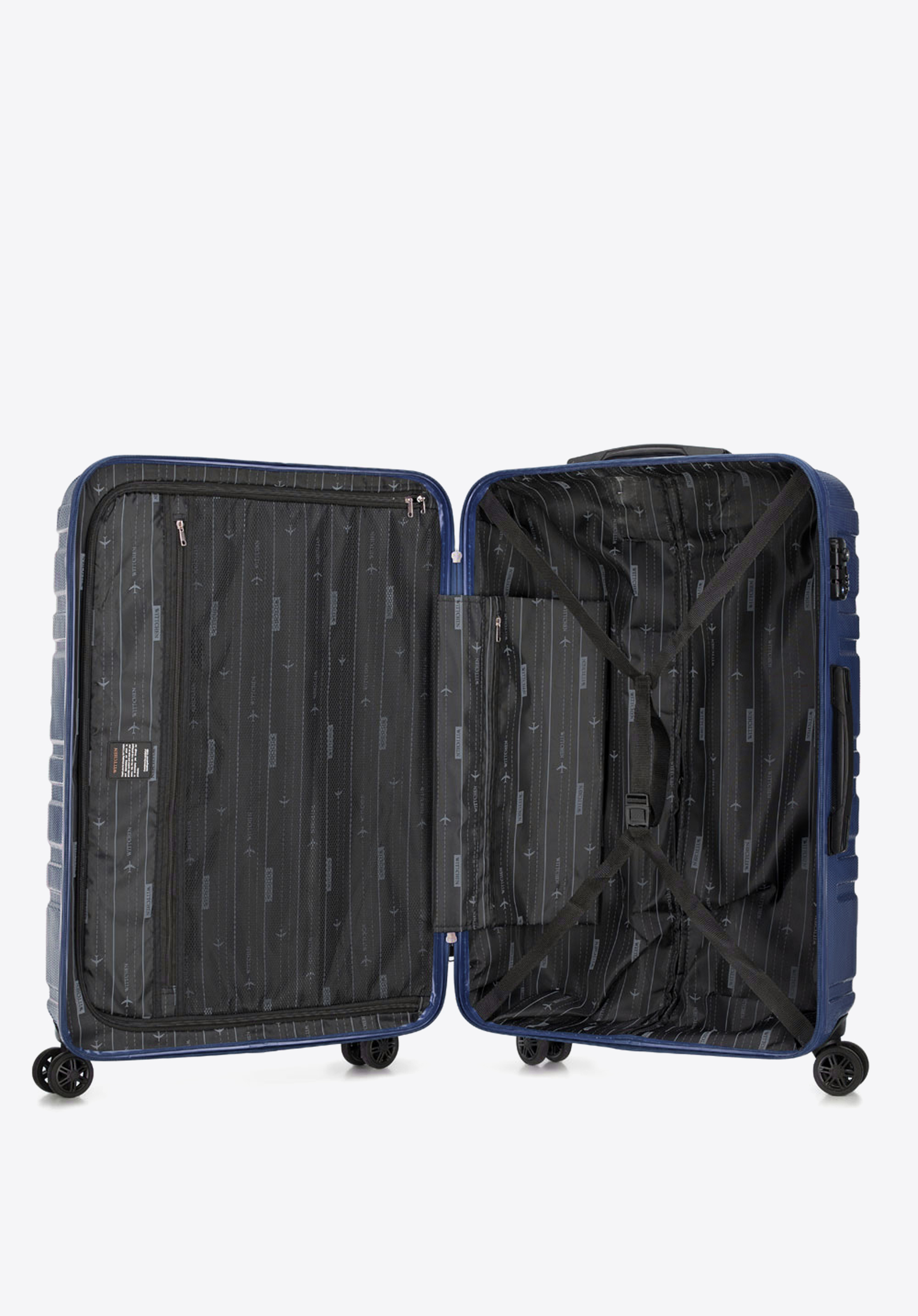 Валіза великого розміру виготевлена з дуже міцного полікарбонату, який характеризується пористою поверхнею, що дозволяє довго тримати валізу в хорошому стані. У представленому наборі висока функціональність йде рука об руку з сучасним дизайном. Горизонтальні лінії і небанальна колірна гамма порадують тих, хто стежить за тенденціями моди.