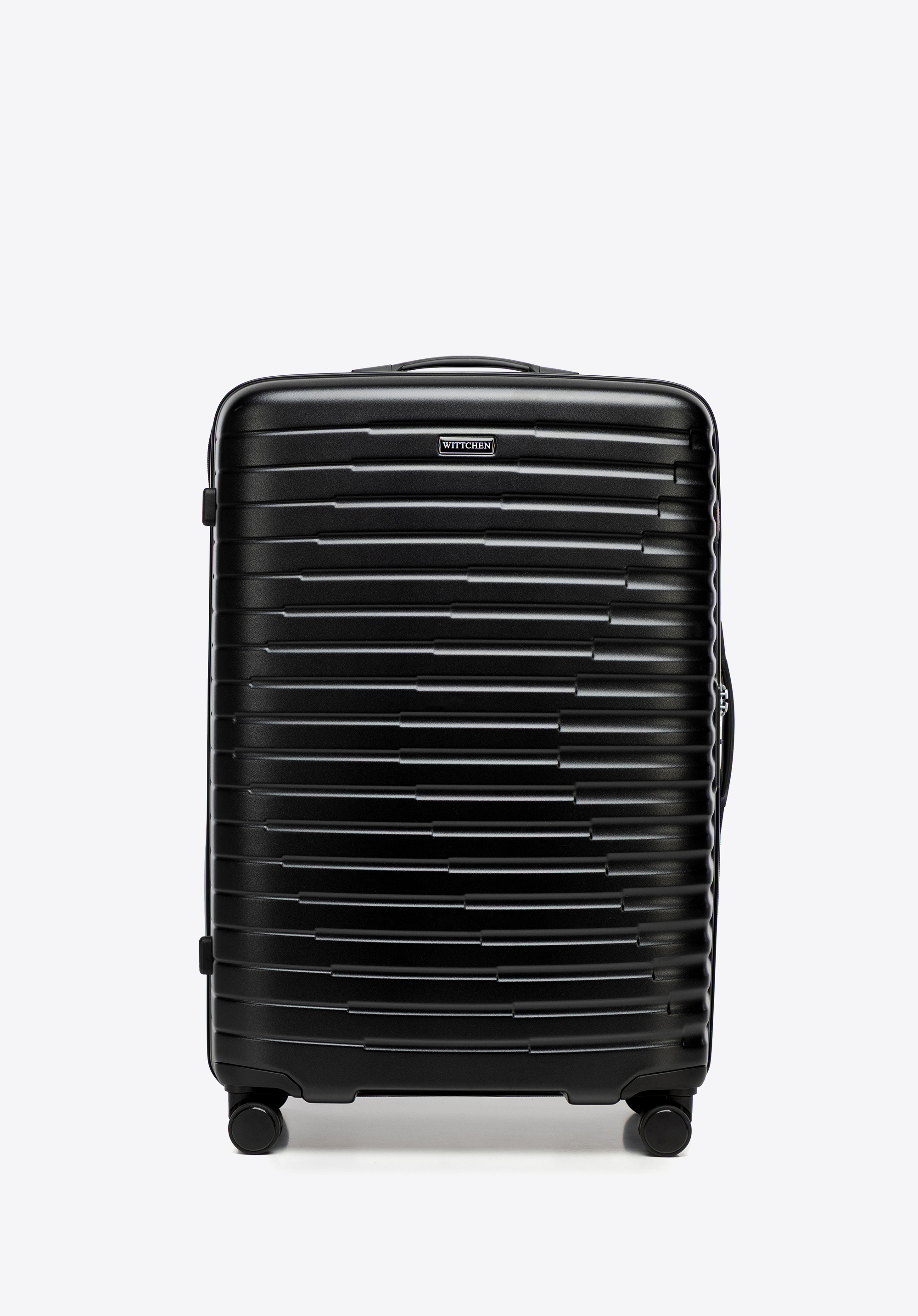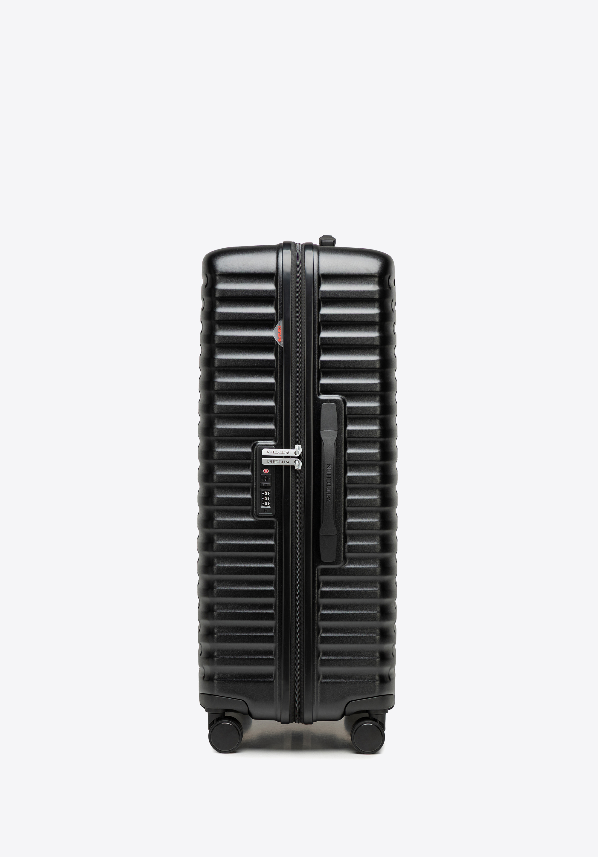 Велика валіза з полікарбонату з горизонтальним рифленням чорна
