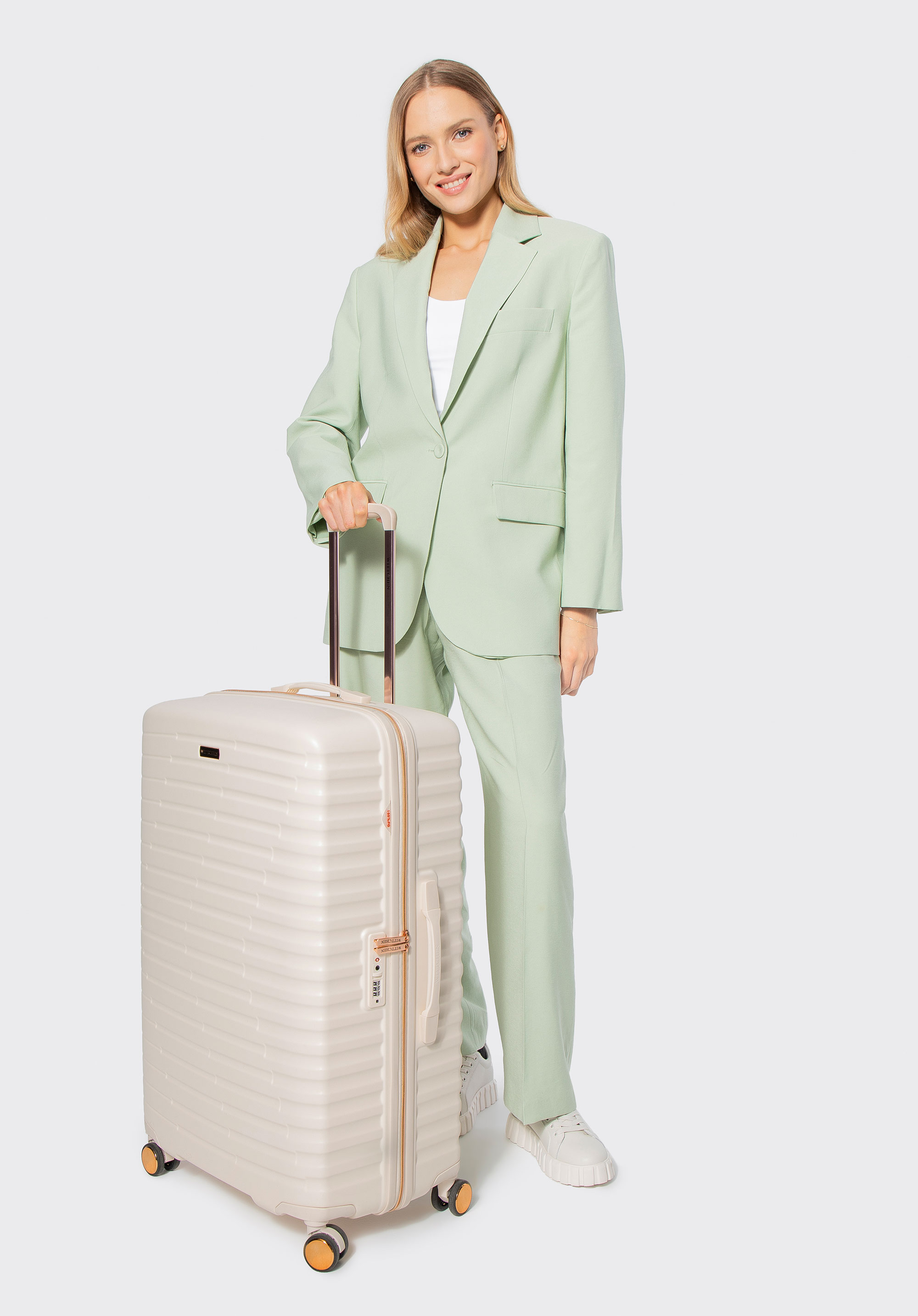 Велика валіза з полікарбонату з горизонтальним рифленням Колір: кремово-золотий