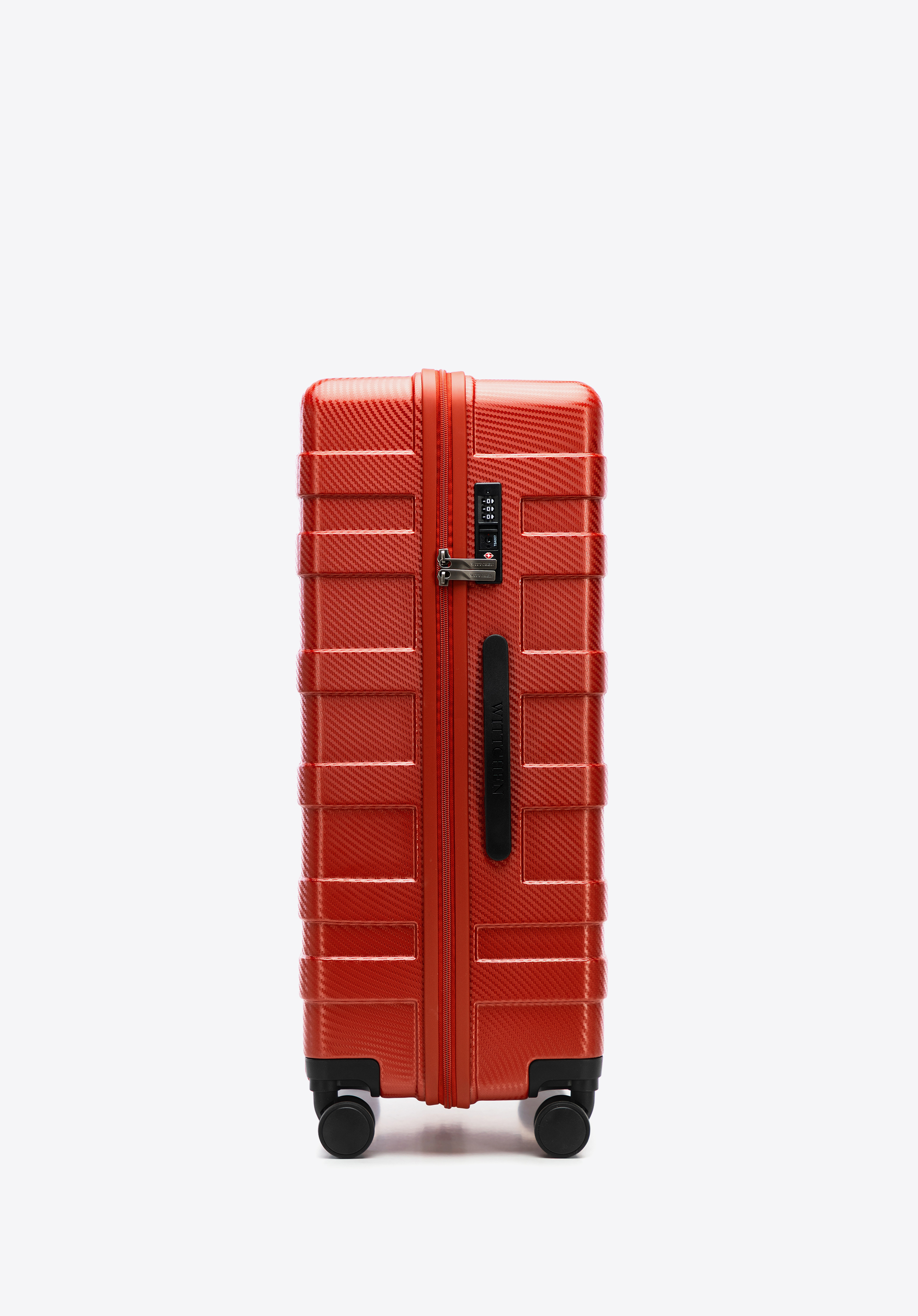 - Практичні деталі: Дві ручки (верхня і бічна) забезпечують комфорт при піднятті, а 4 бічні ніжки дозволяють безпечно розташувати валізу горизонтально.