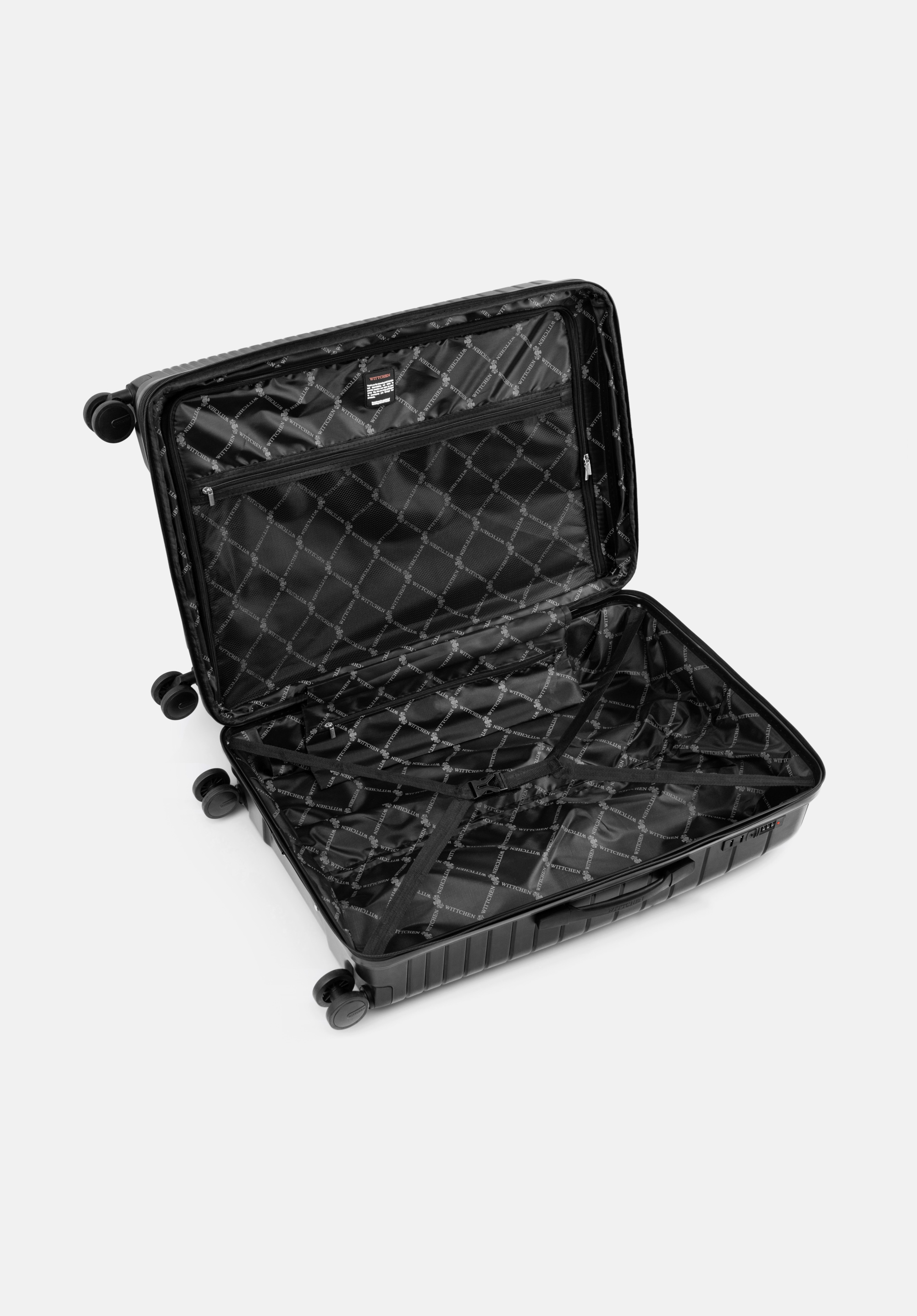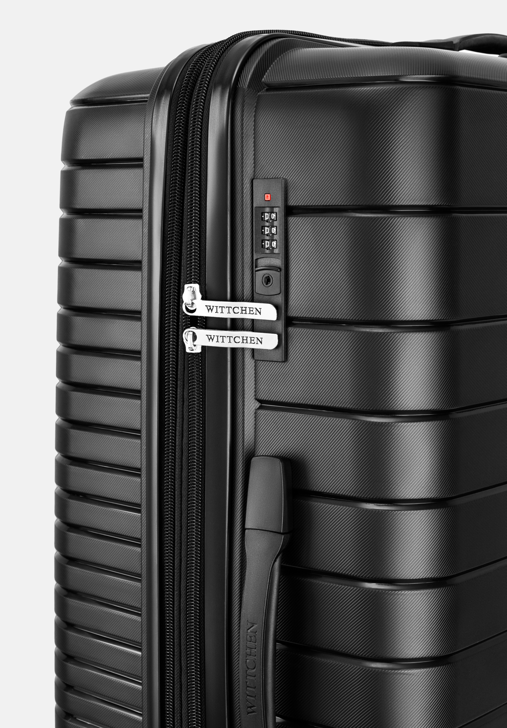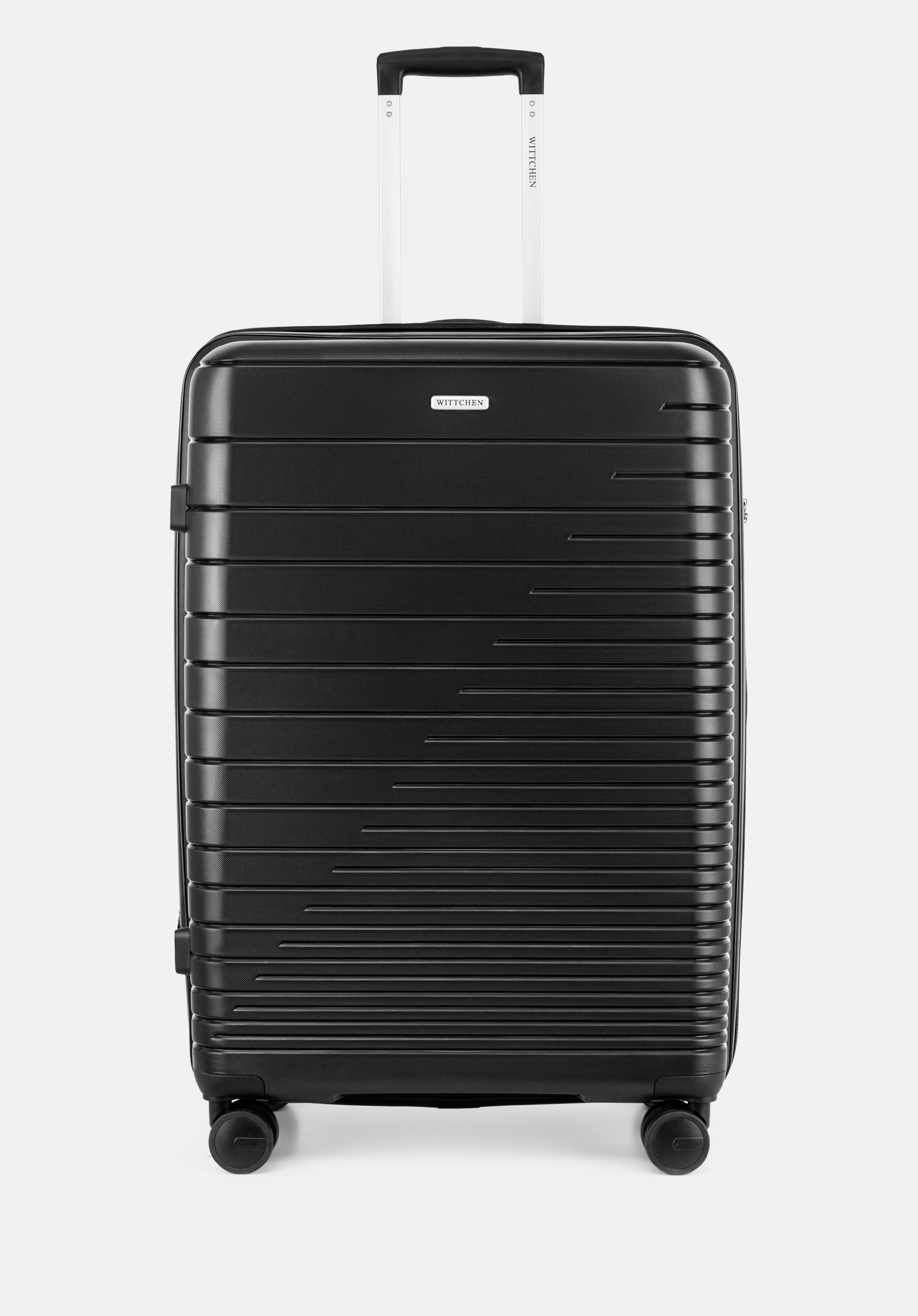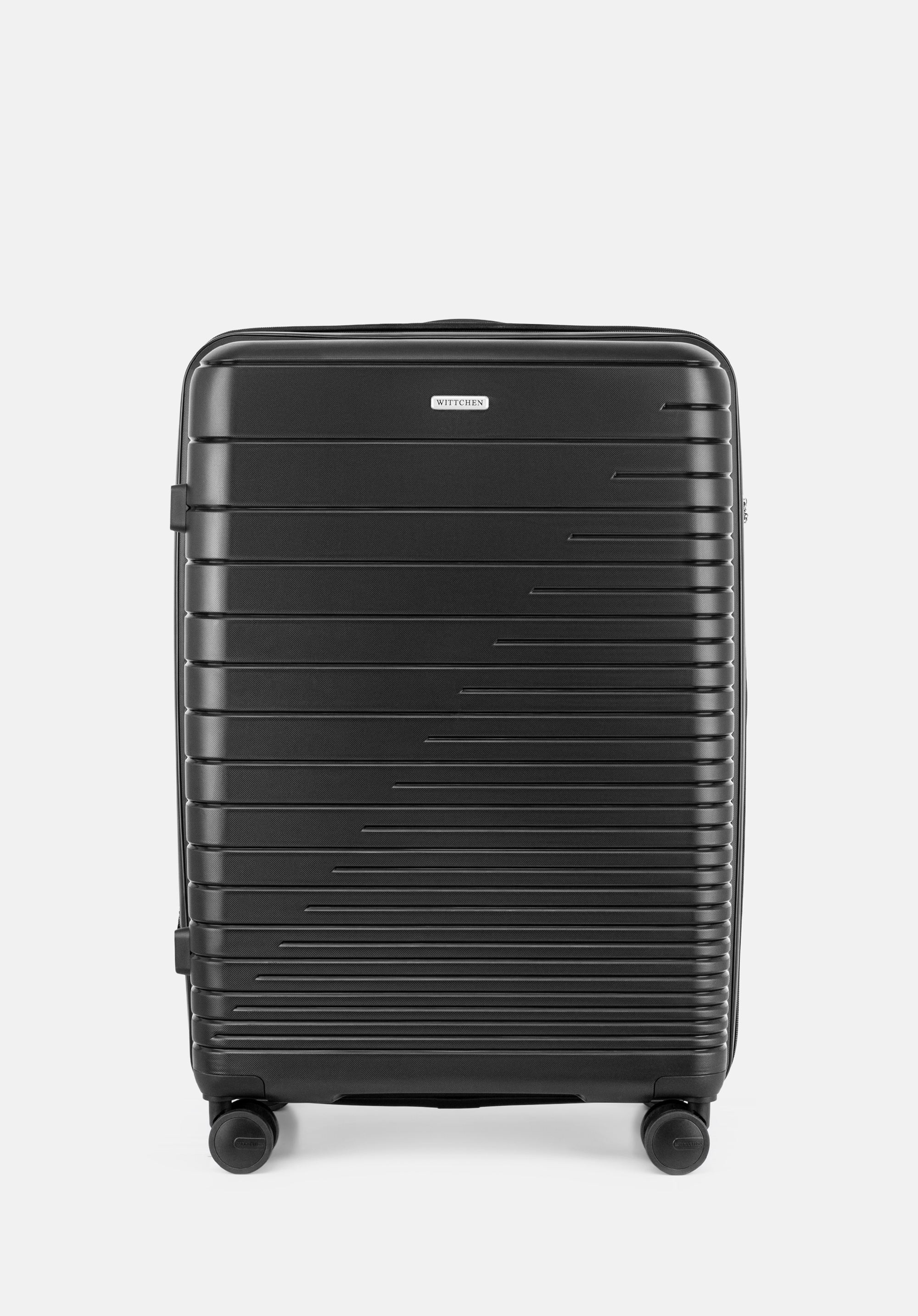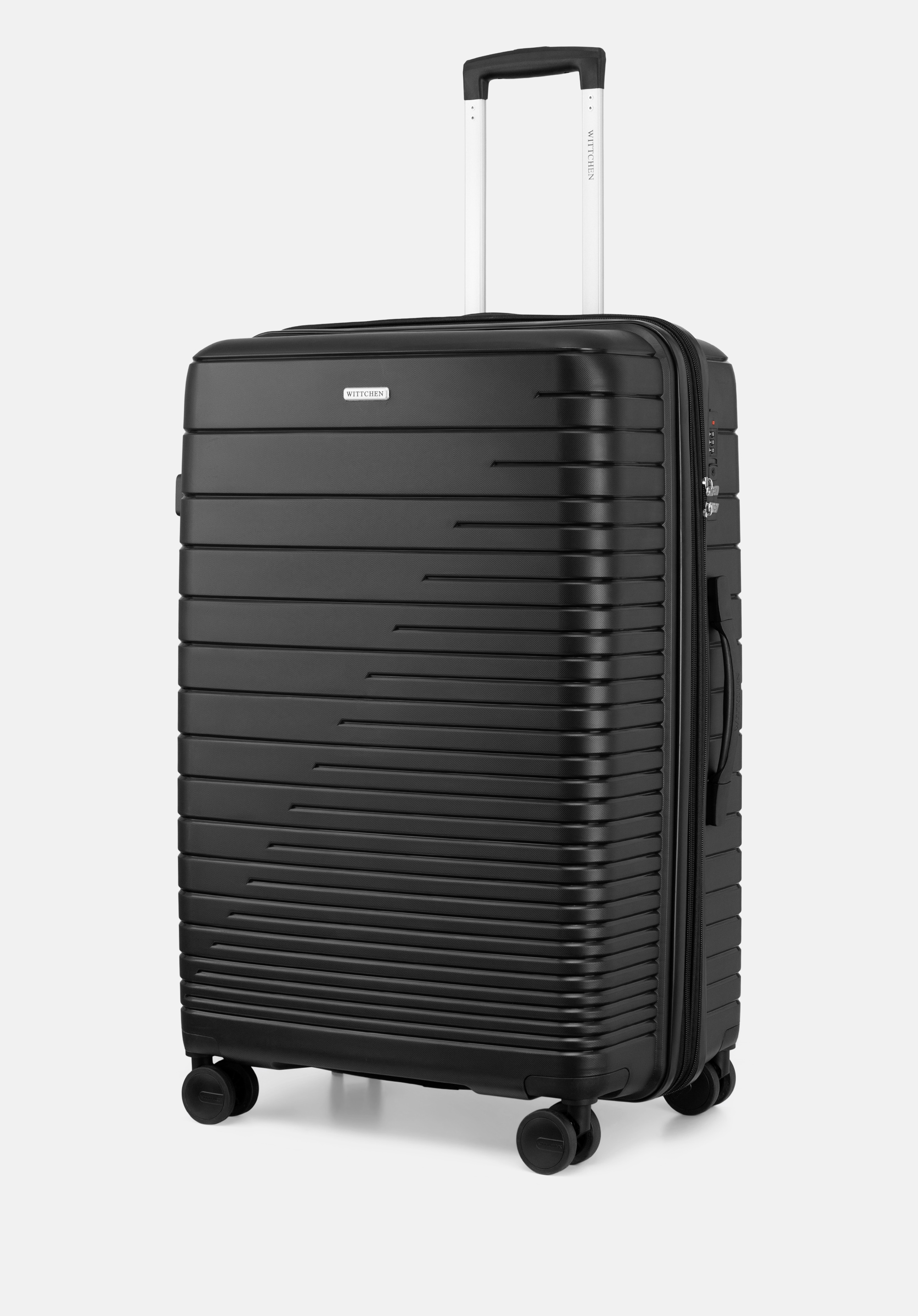 Велика валіза з поліпропілену з глянцевими смужками Колір: чорний