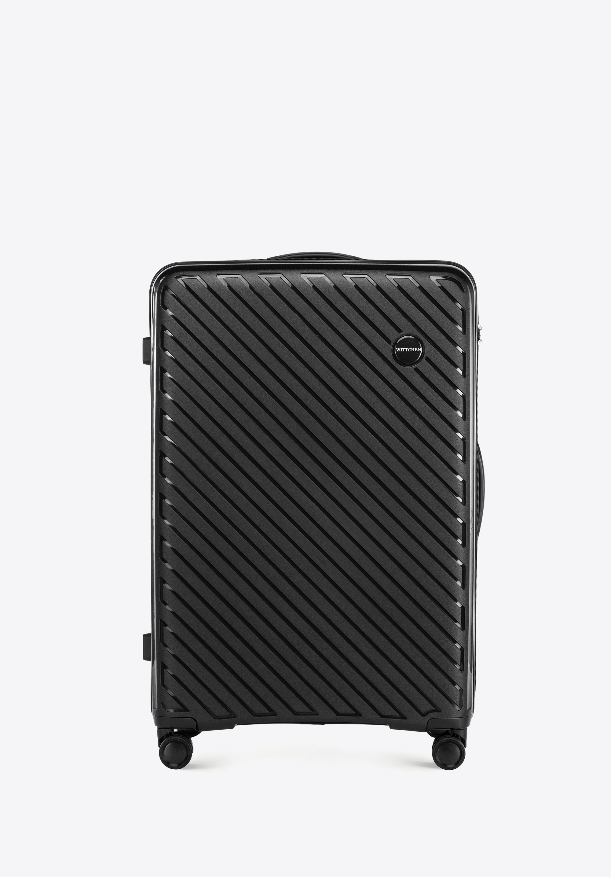 Велика валіза з поліпропілену з тисненням у вигляді смуг чорна