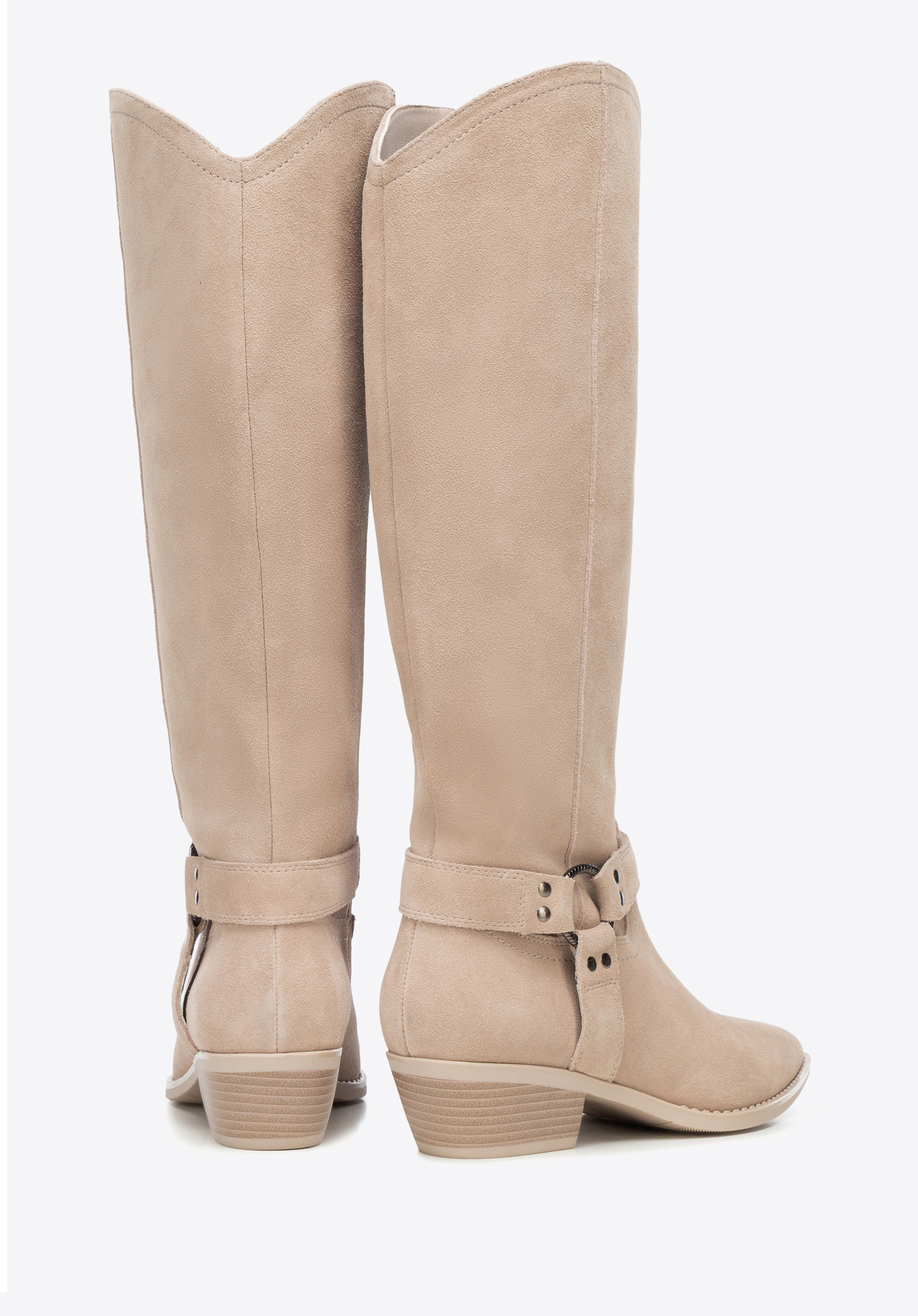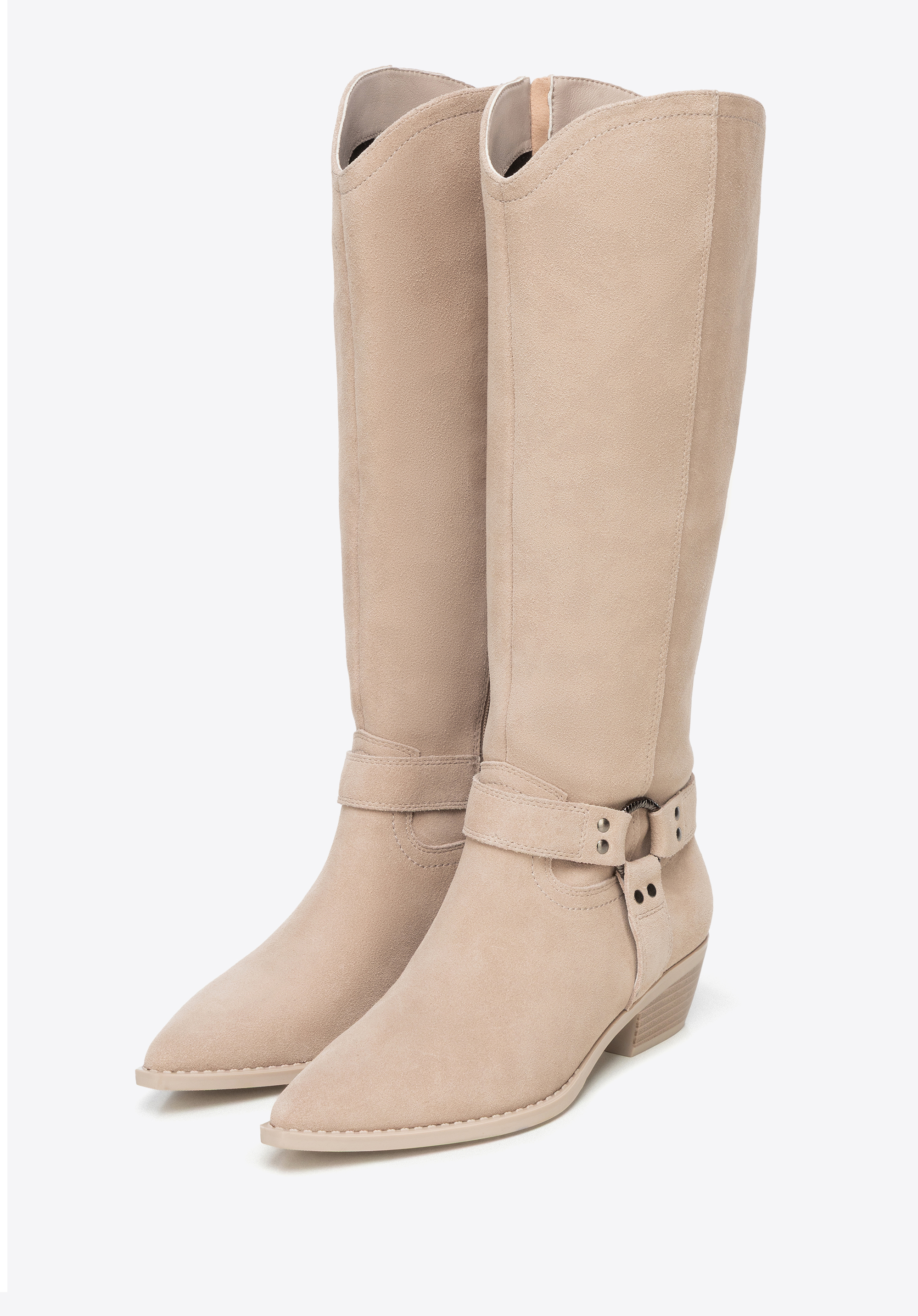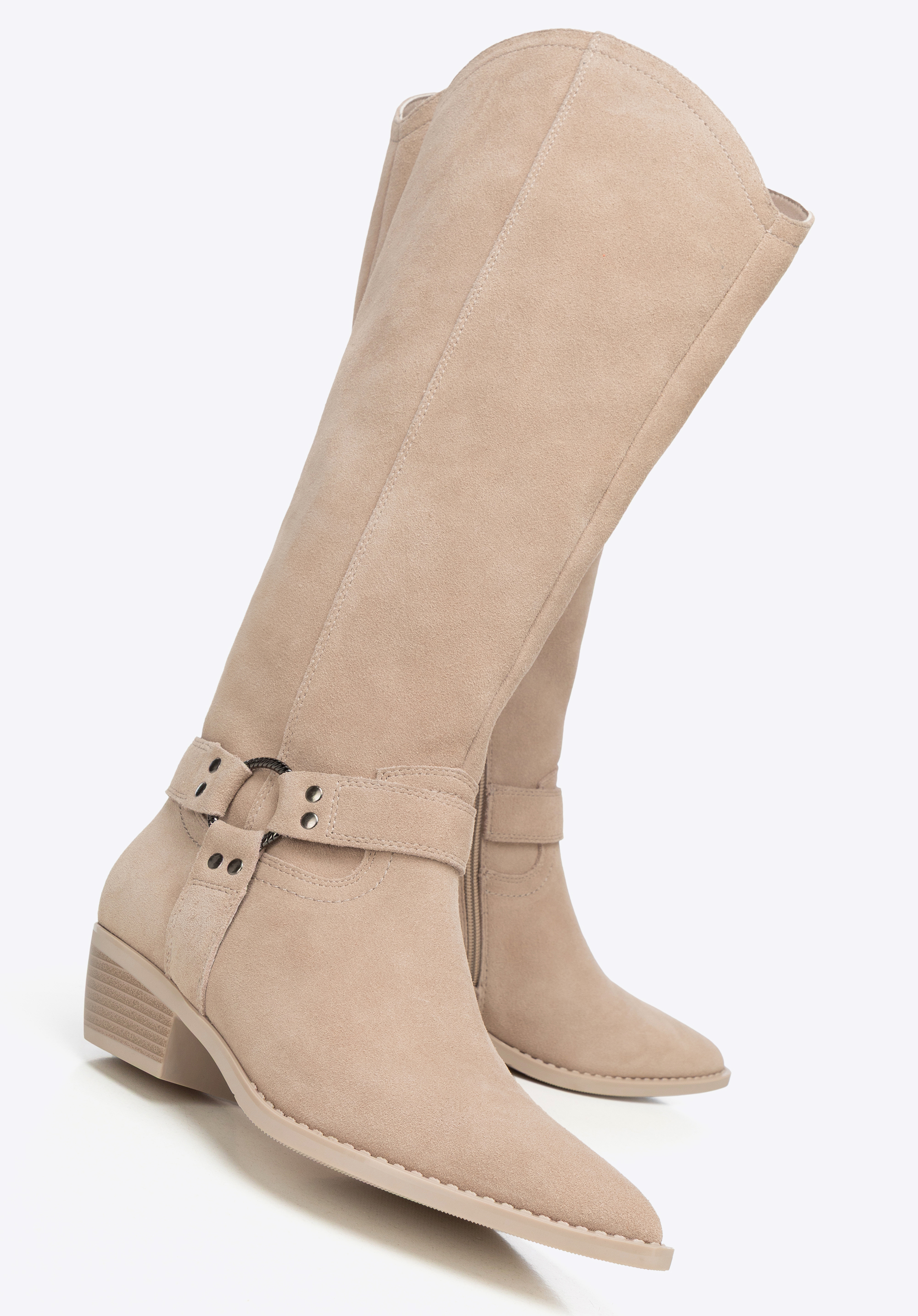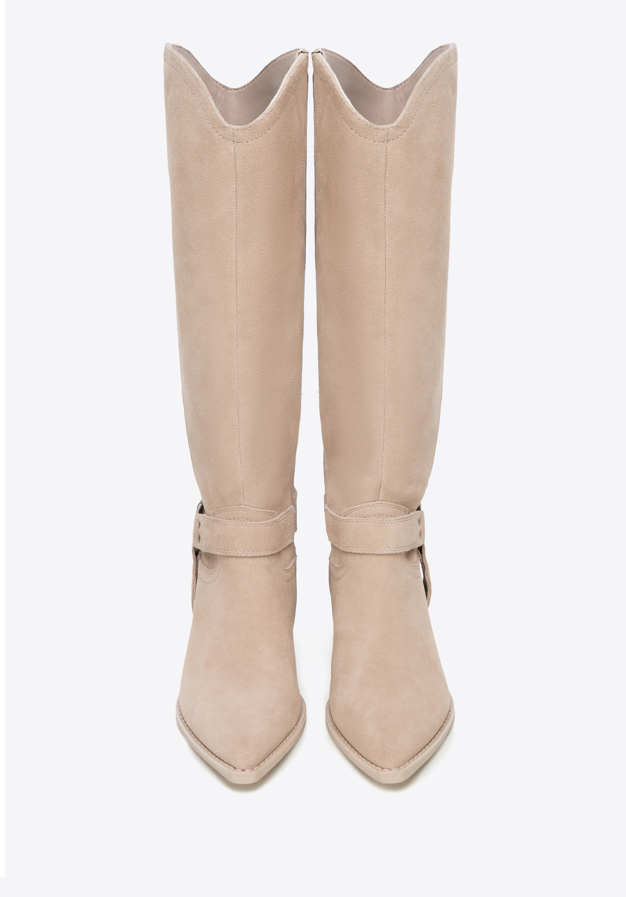 Жіночі довгі ковбойські черевики із замші – елегантність і характер в одному