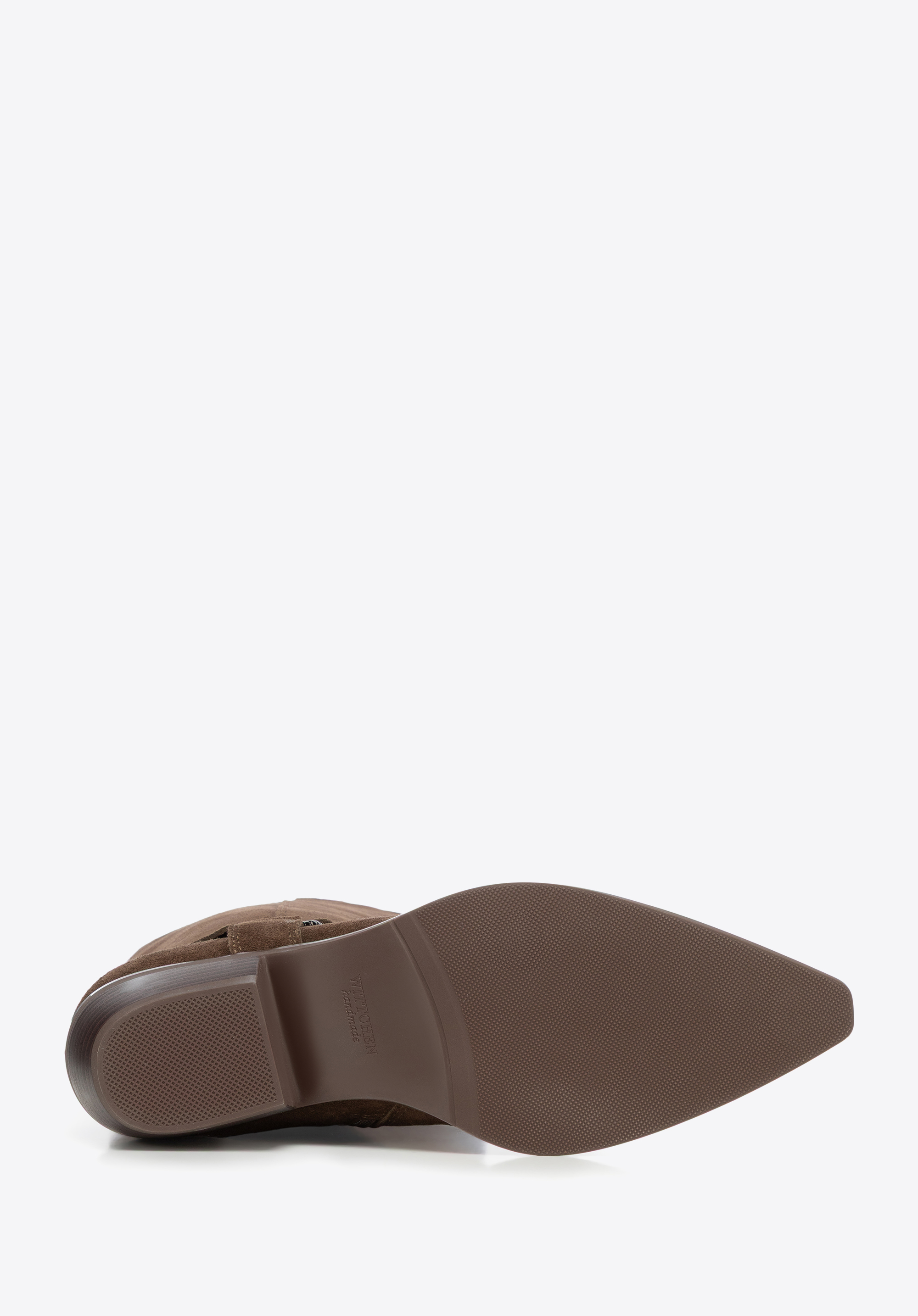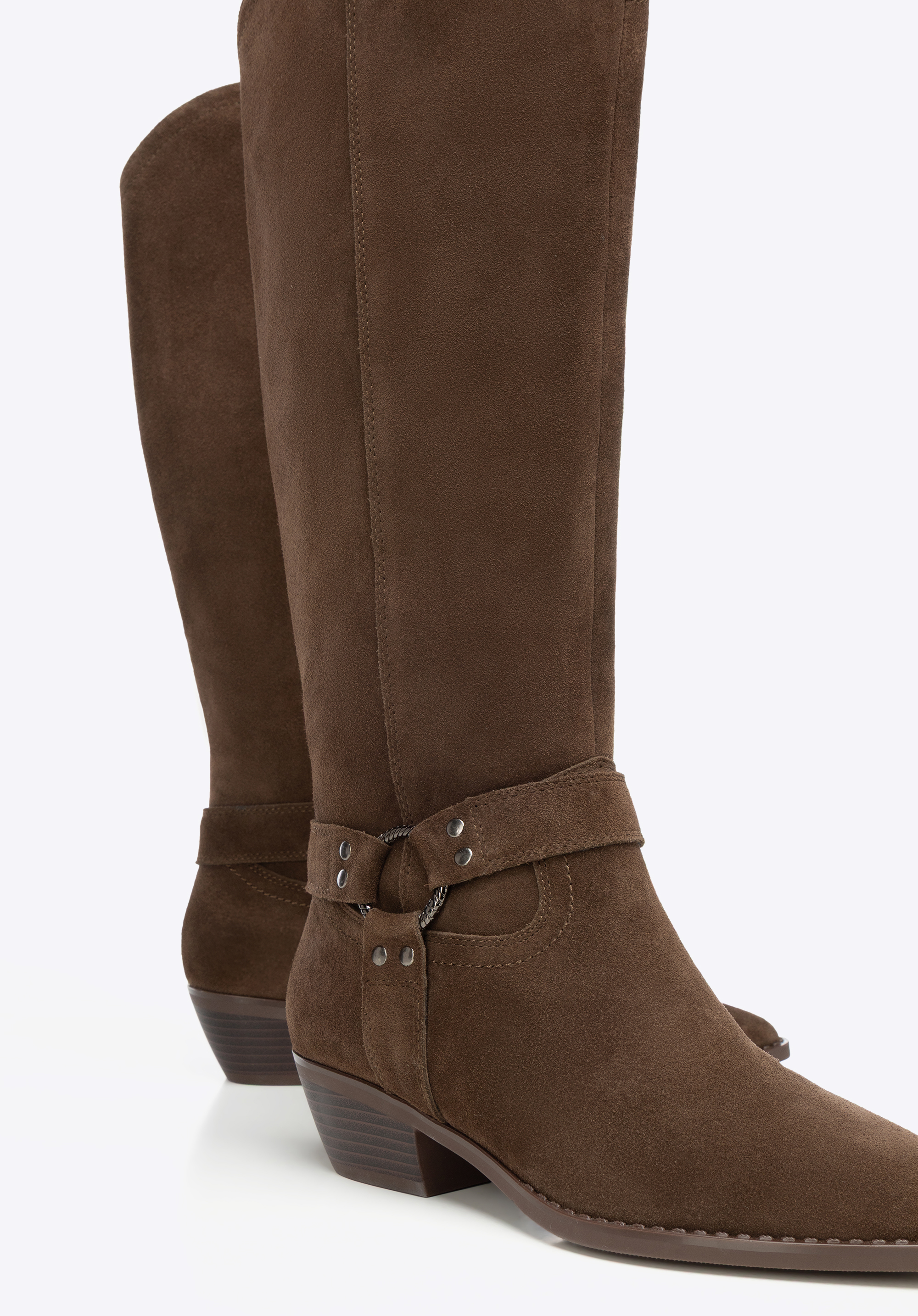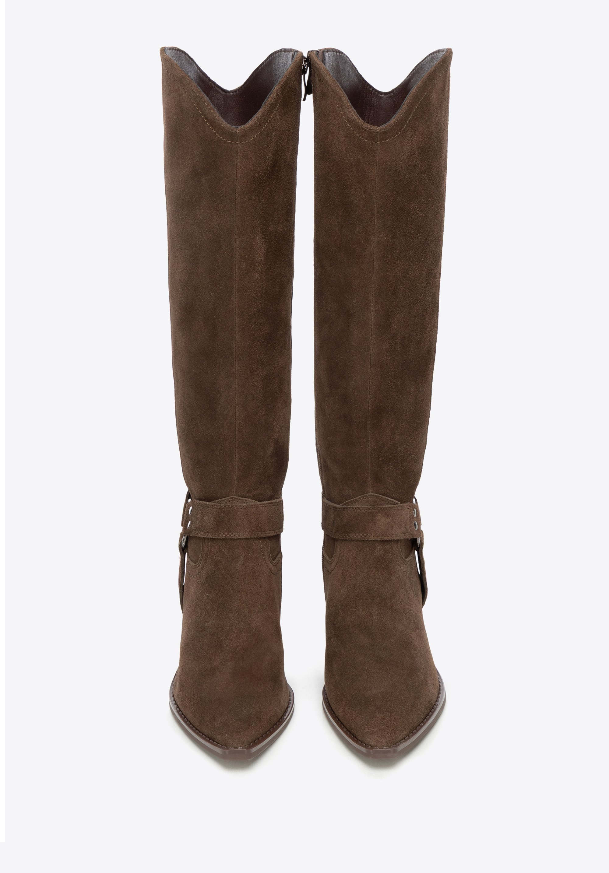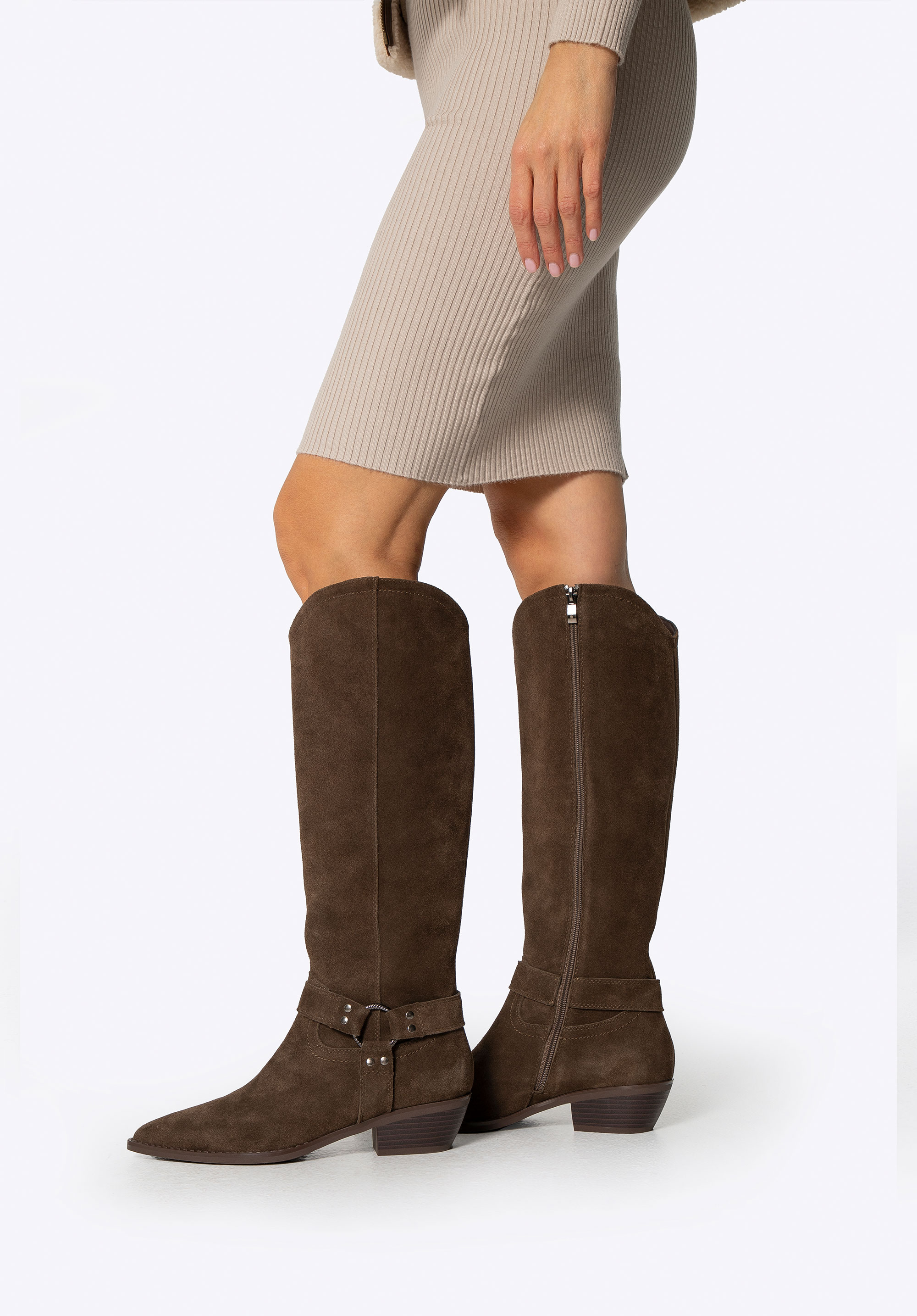 Жіночі довгі ковбойські черевики із замші – елегантність і характер в одному