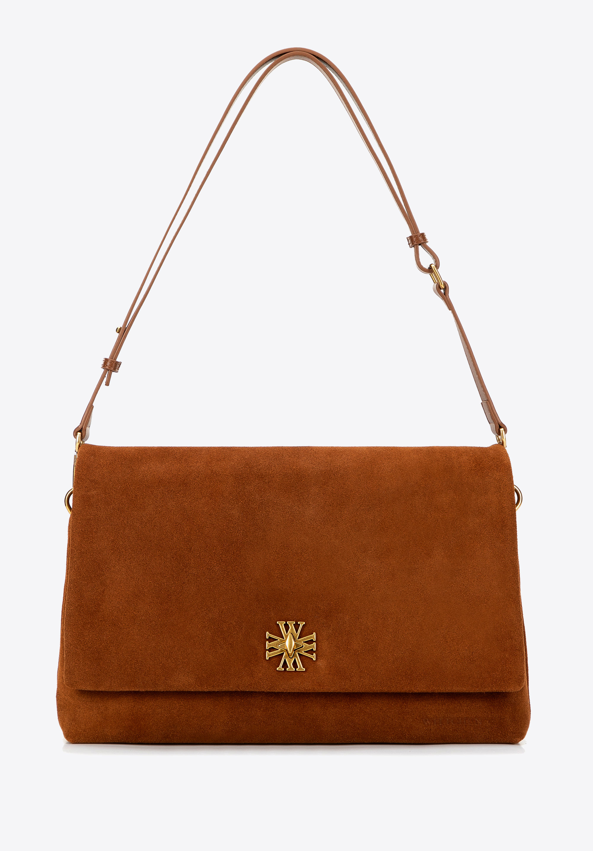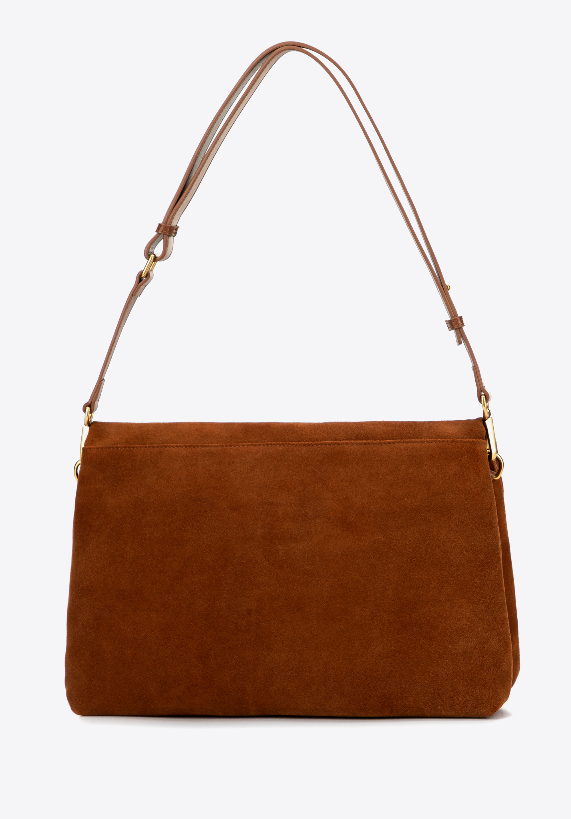 Велика замшева сумка через плече – елегантність, укладена у більшу форму