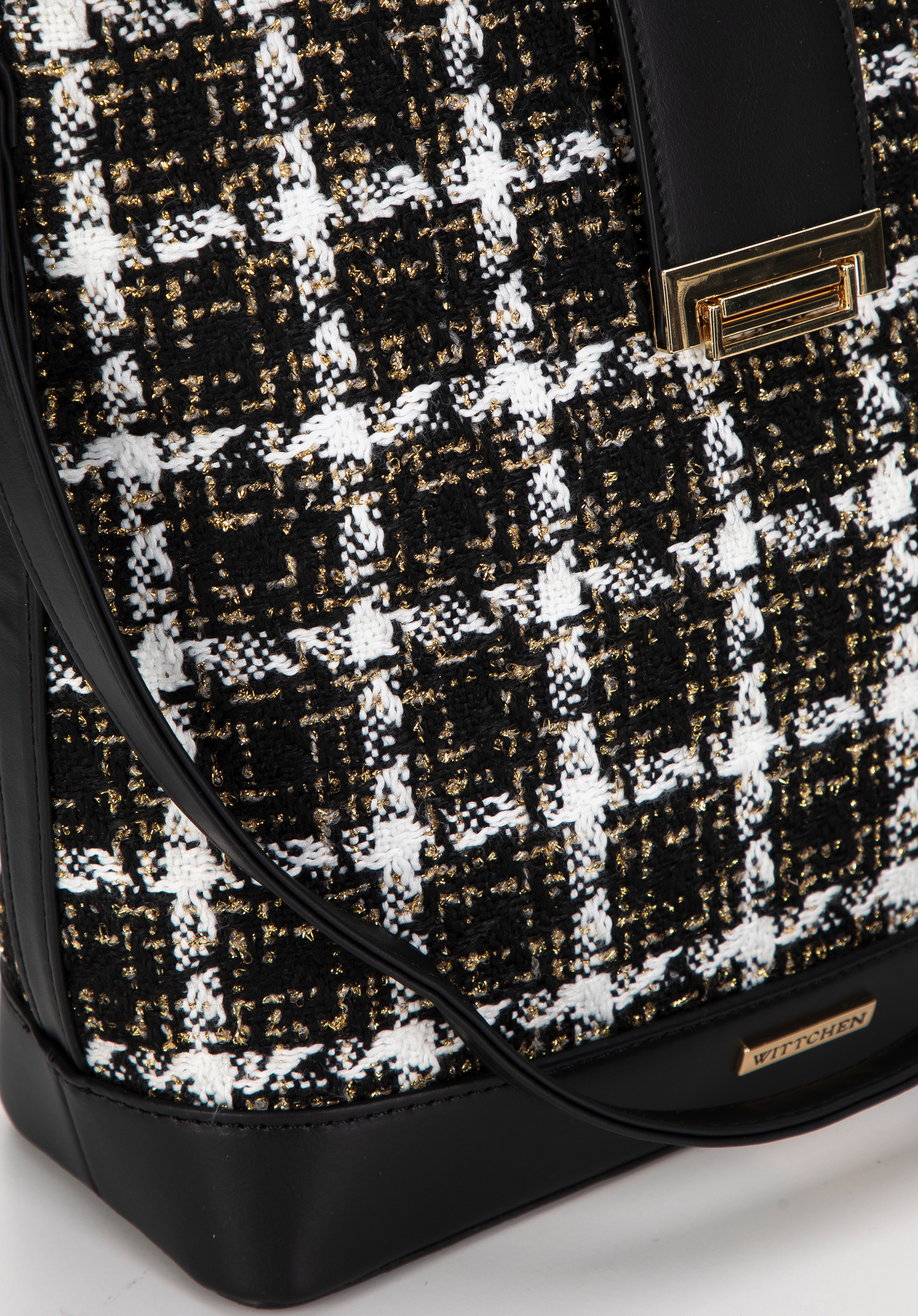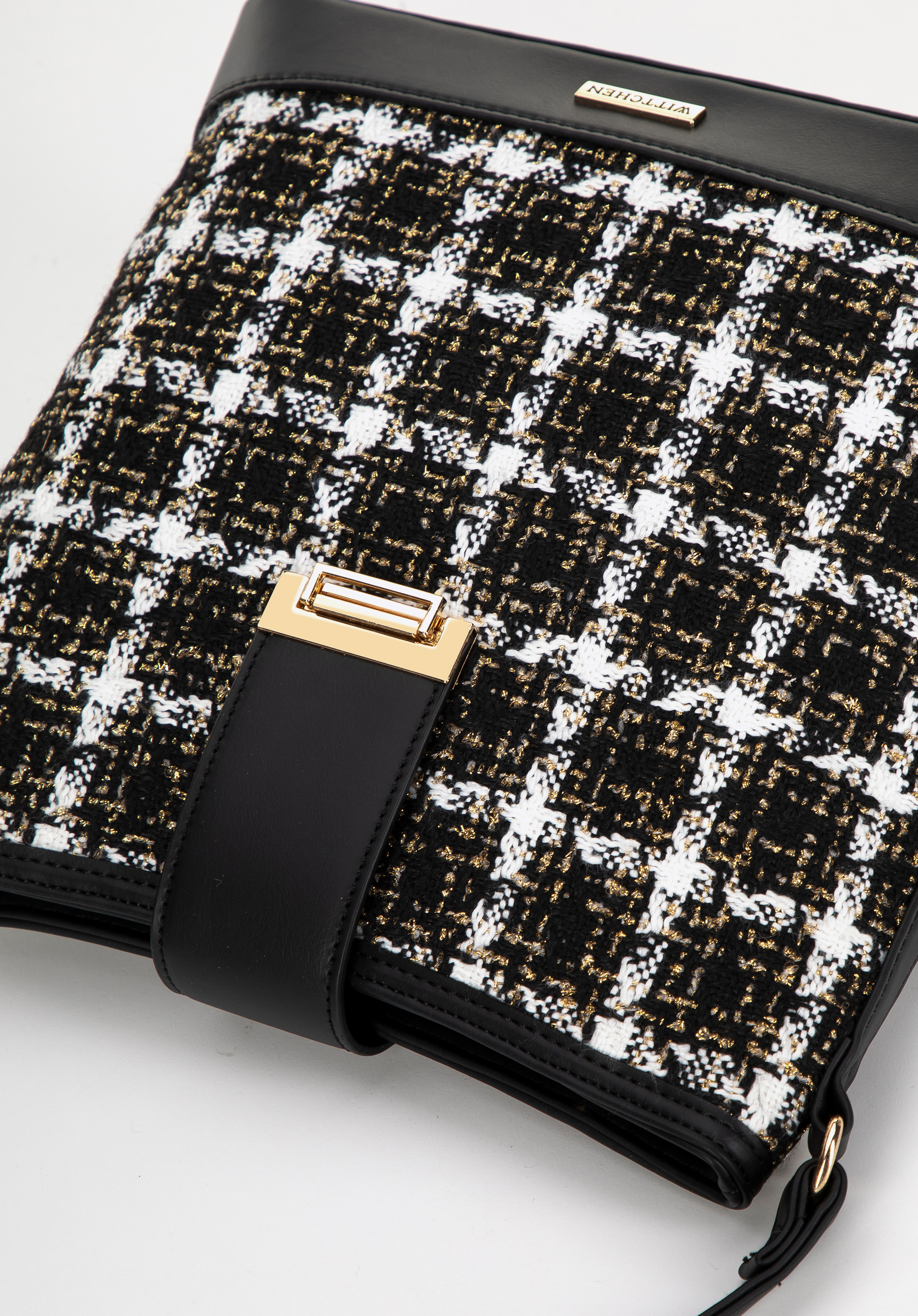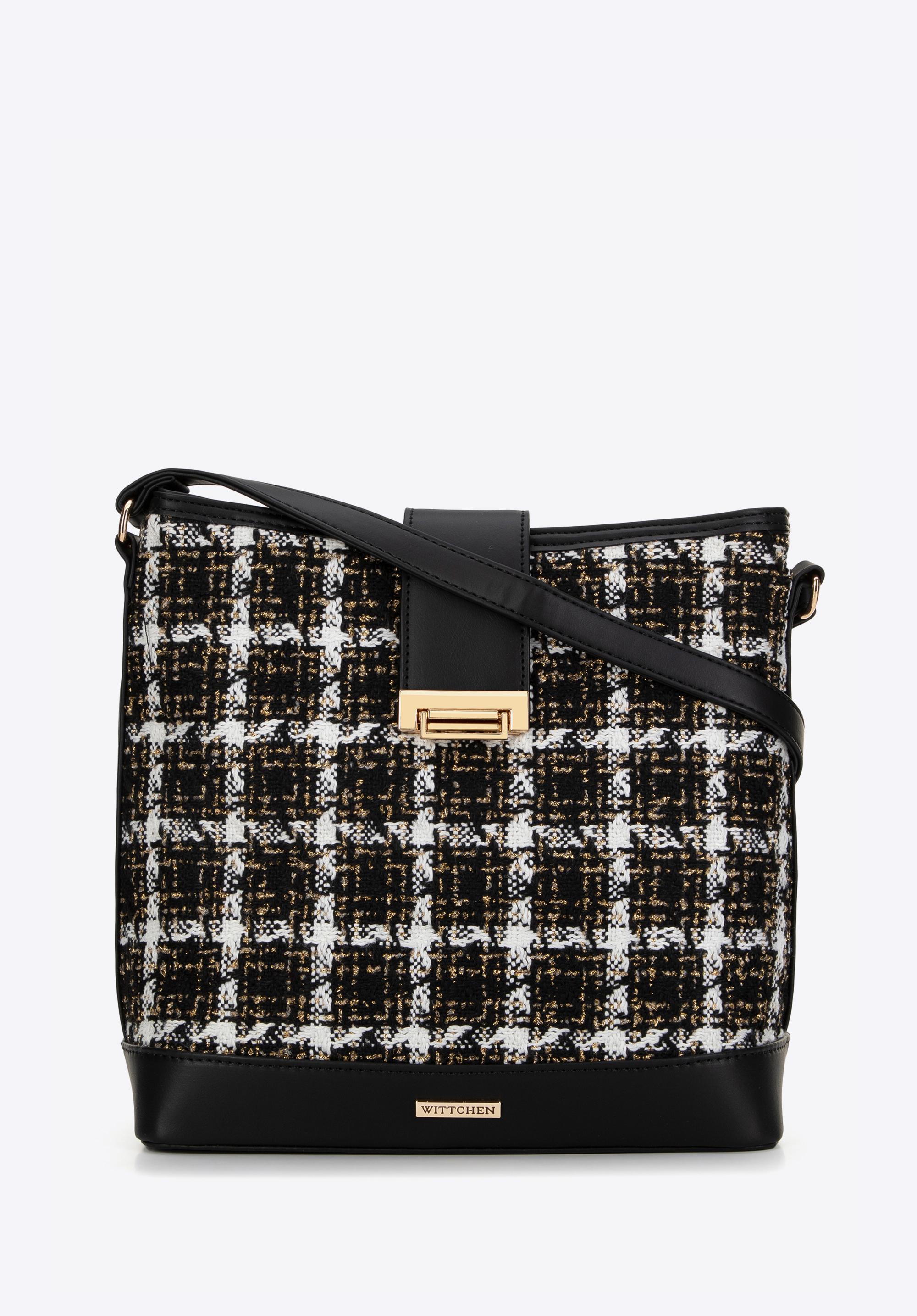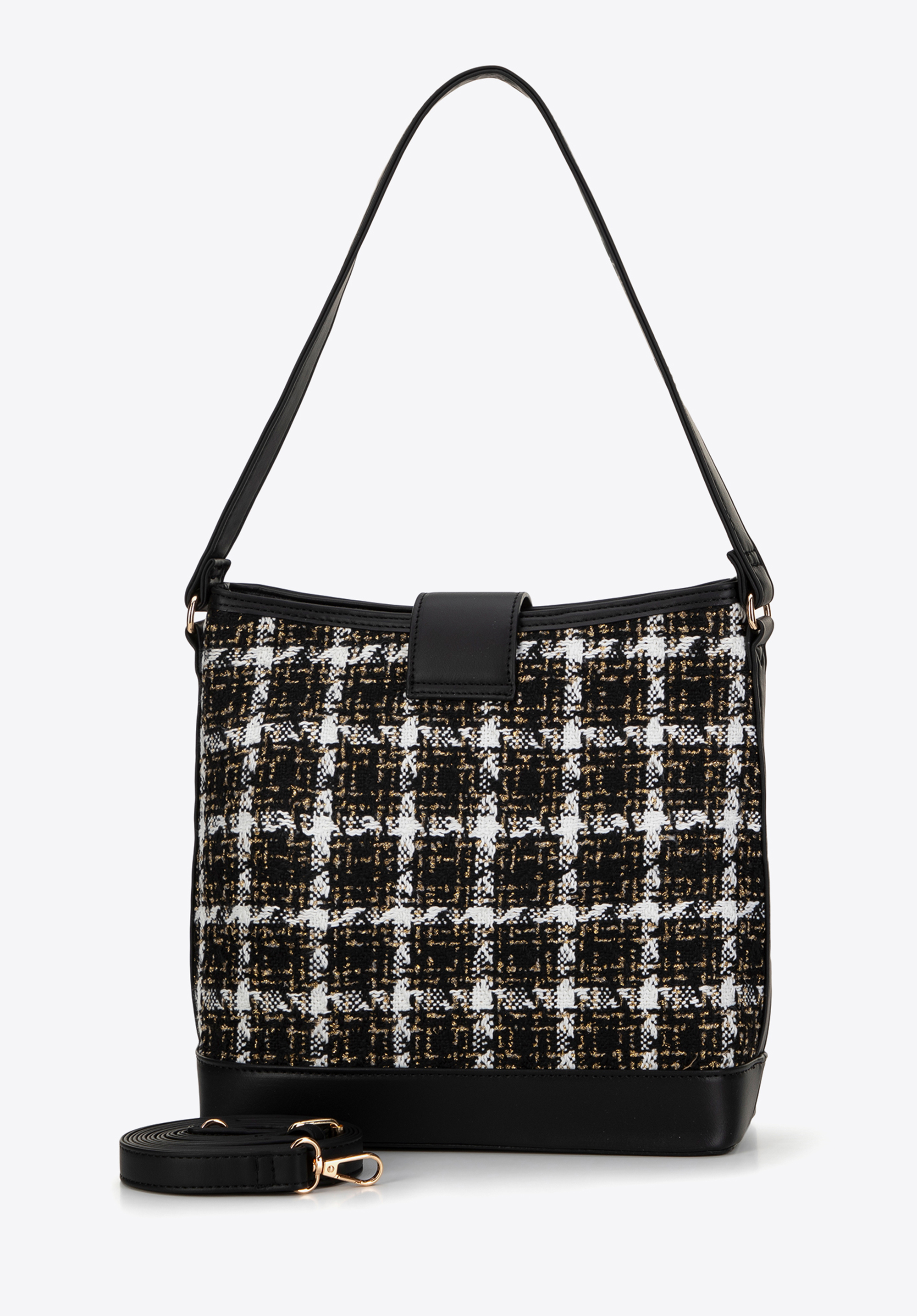Жіноча чорно-біла сумка-хобо з тканини букле Колір: чорно-білий