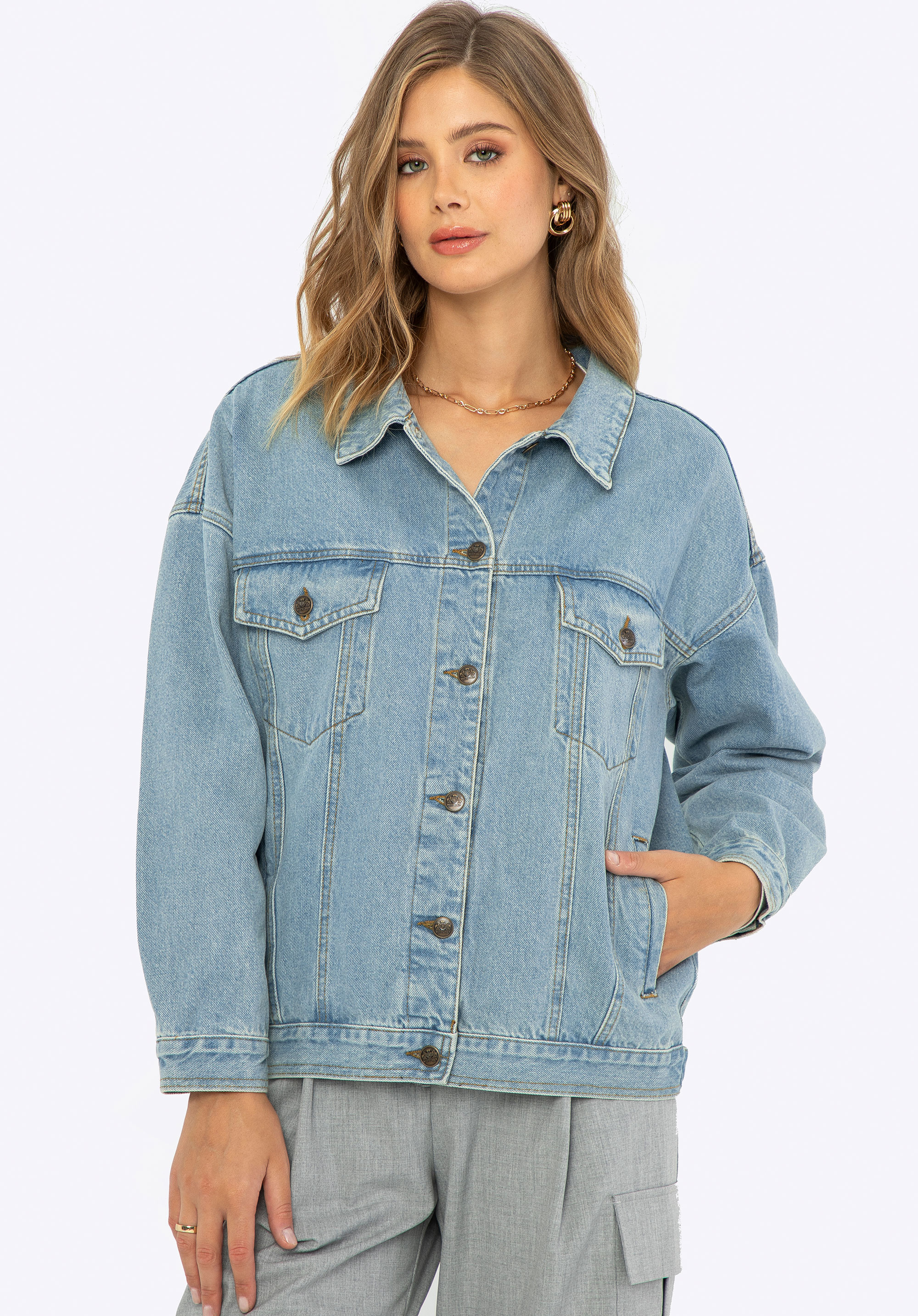 Зручна, універсальна джинсова куртка – обов’язкова річ у гардеробі кожної поціновувачки непідвладного часу стилю. Крій oversize дає вам багато простору для самовираження. Куртка відмінно підійде в багатошарових стилях - це наймодніший тренд майбутнього сезону. Віддаєте перевагу жіночному, романтичному стилю? Поєднуйте її з весняним, квітчастим платтям і кедами. В обох випадках ви будете виглядати дуже стильно і оригінально.