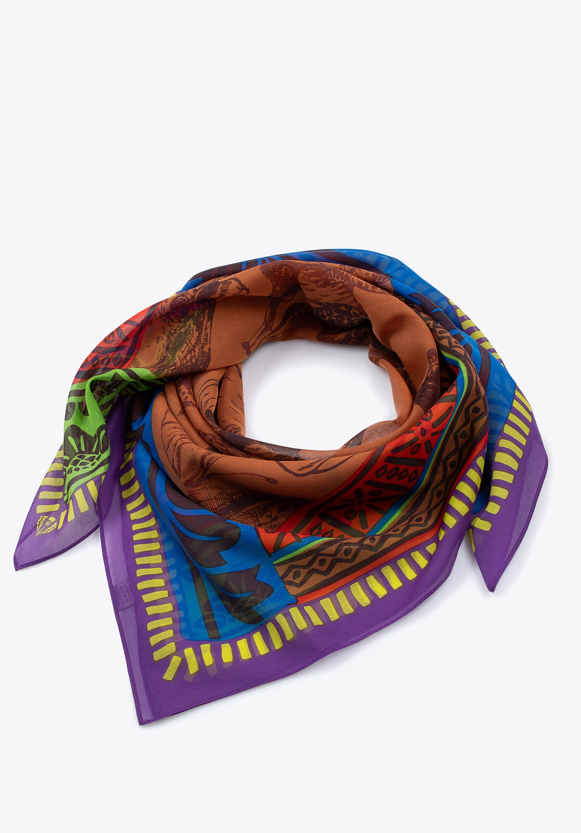 Жіноча хустка - ідеальне доповнення до будь-якого вбрання. Хустка легка, виготовлена з повітряної тканини, а її розмір дозволяє носити її різними способами: як шарф, накидку або пов''язку. Привабливий малюнок неодмінно пожвавить ваш стиль. Жіноча хустка мультисезонна: в залежності від пори року вона може захистити від сонця, вітру і холоду. Це практичне та елегантне доповнення до вашого гардеробу.