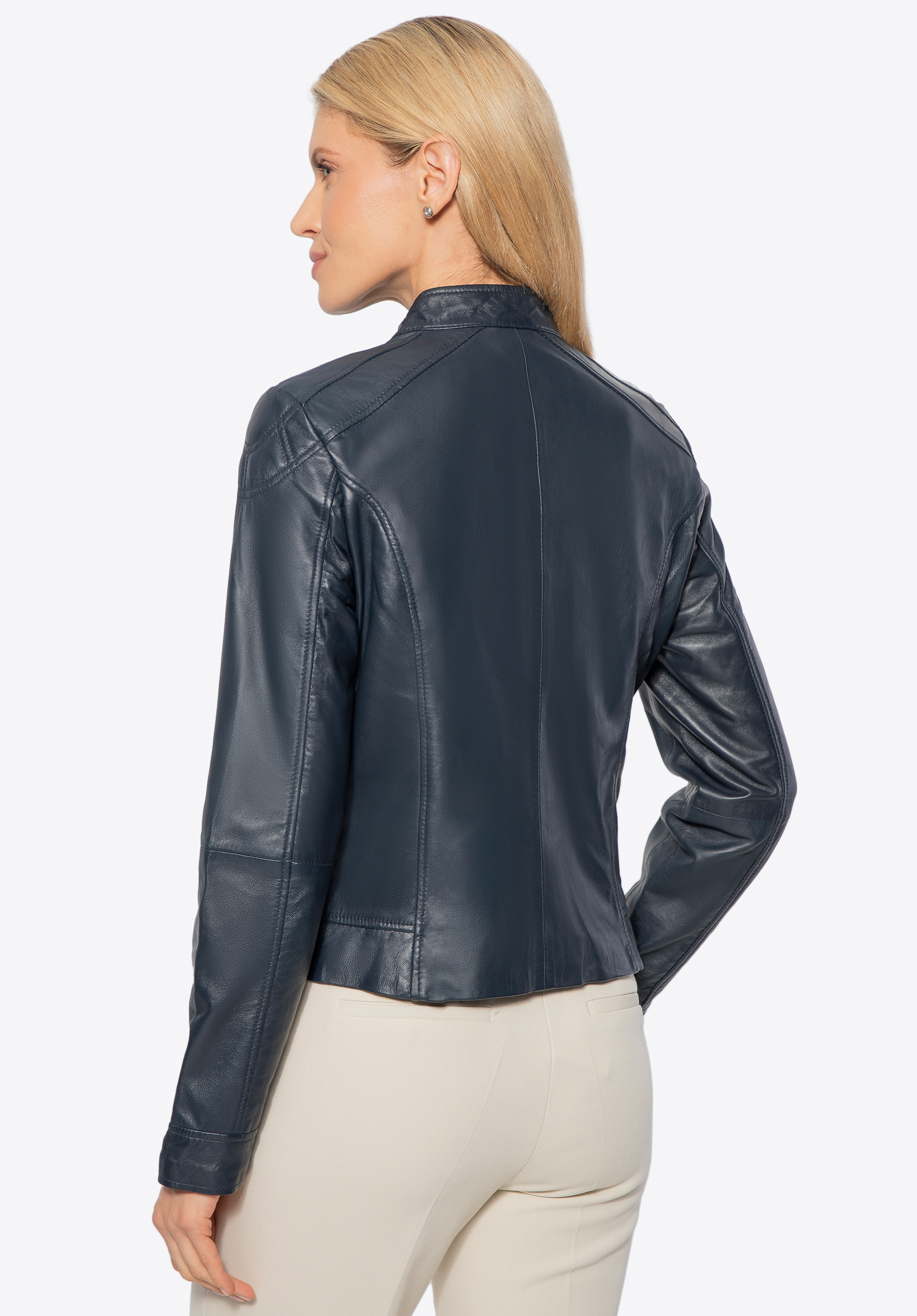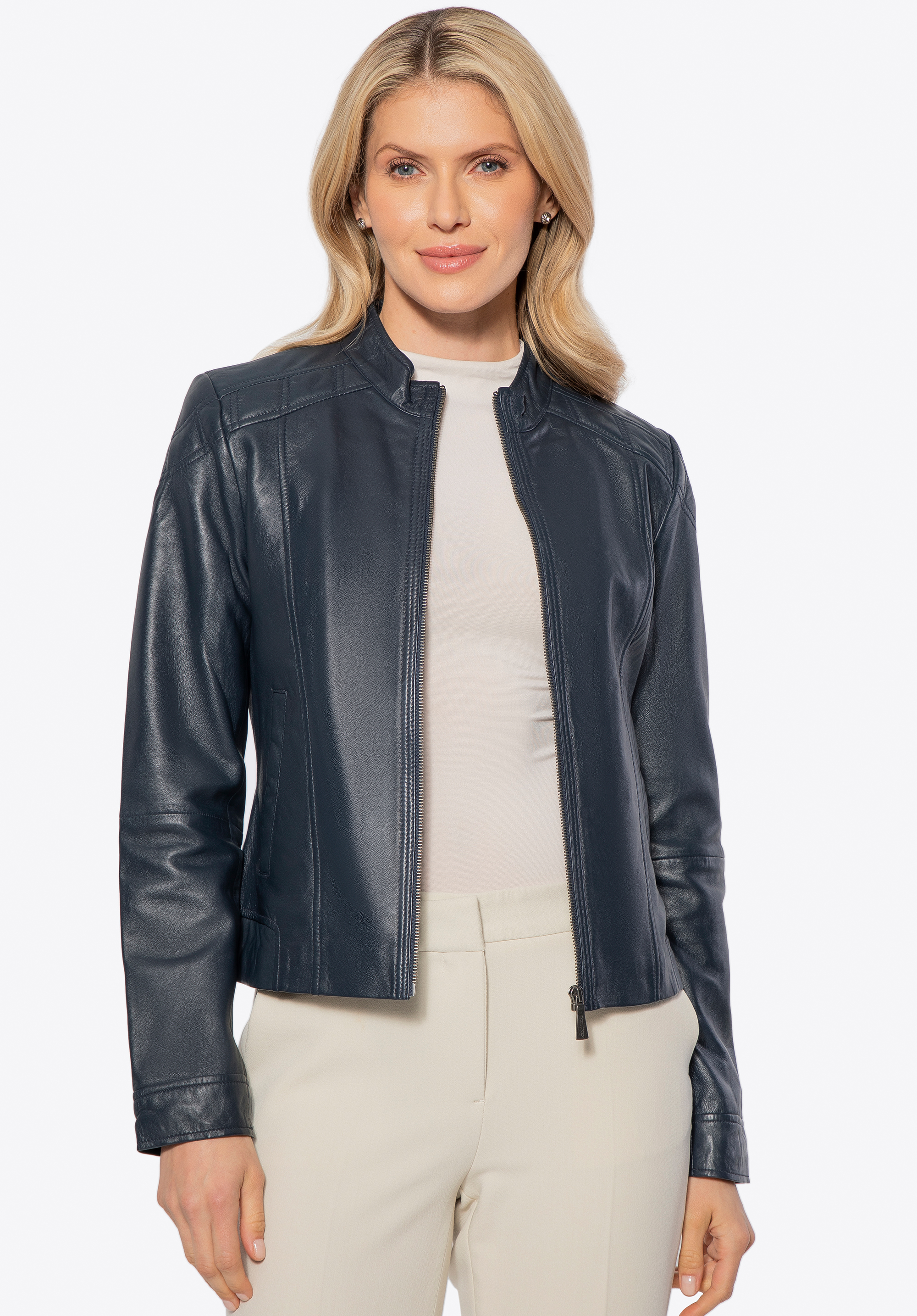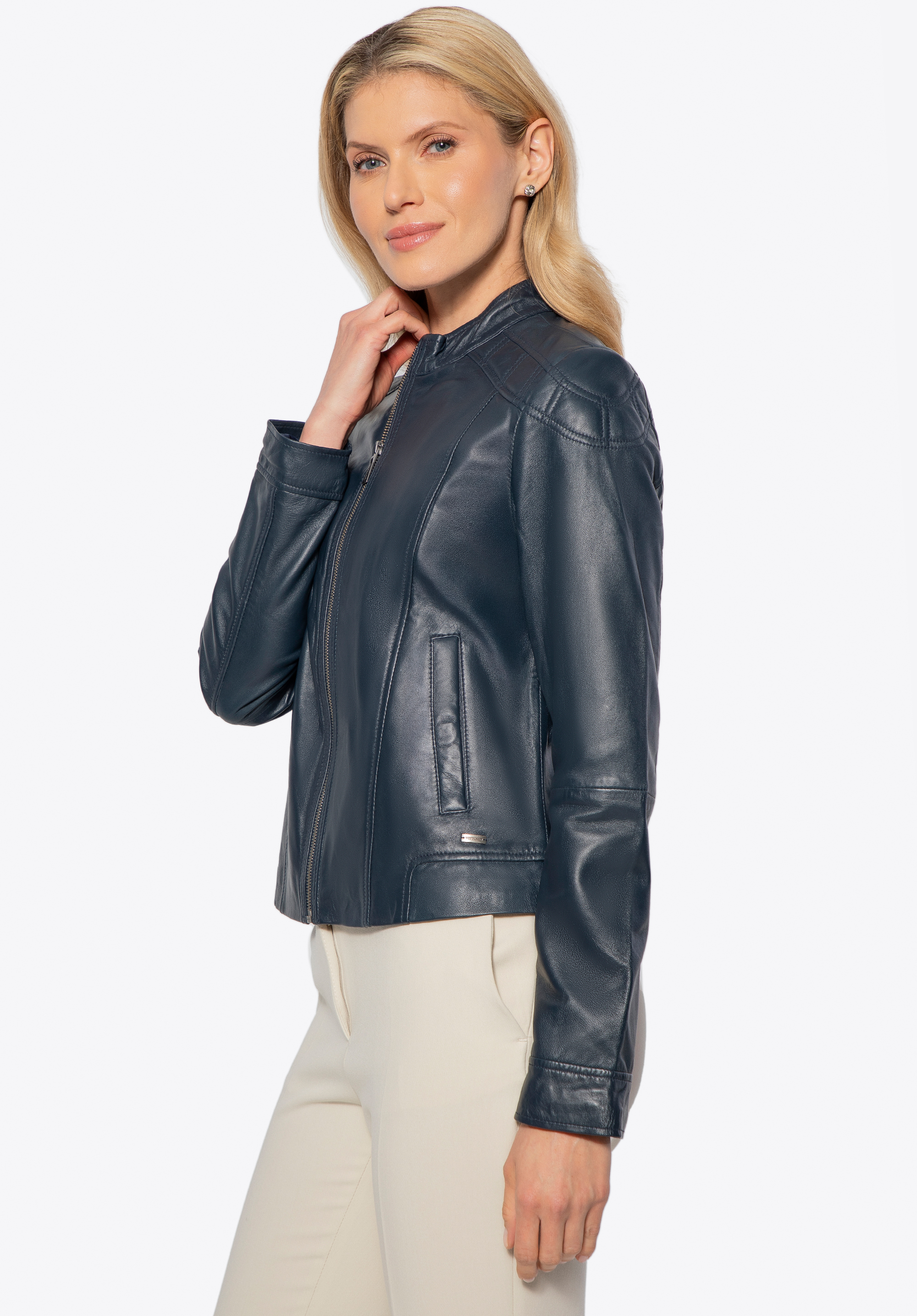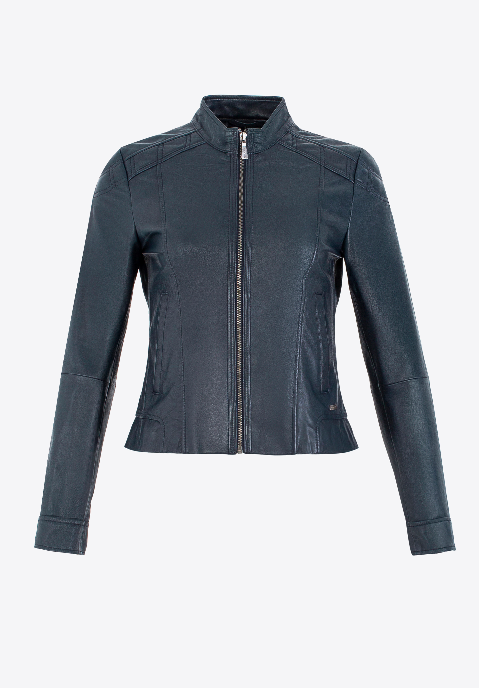 Розкіш у найкращому її прояві. Ця виняткова куртка з натуральної овечої шкіри — це втілення класики в поєднанні з сучасними тенденціями. Досконалий крій, витончені шви на плечах та деталі, що привертають увагу, створюють ідеальну пропозицію для жінок, які цінують високу якість та елегантний вигляд. Коротший, приталений крій підкреслює силует, а класичний комір надає всьому образу шикарного характеру.