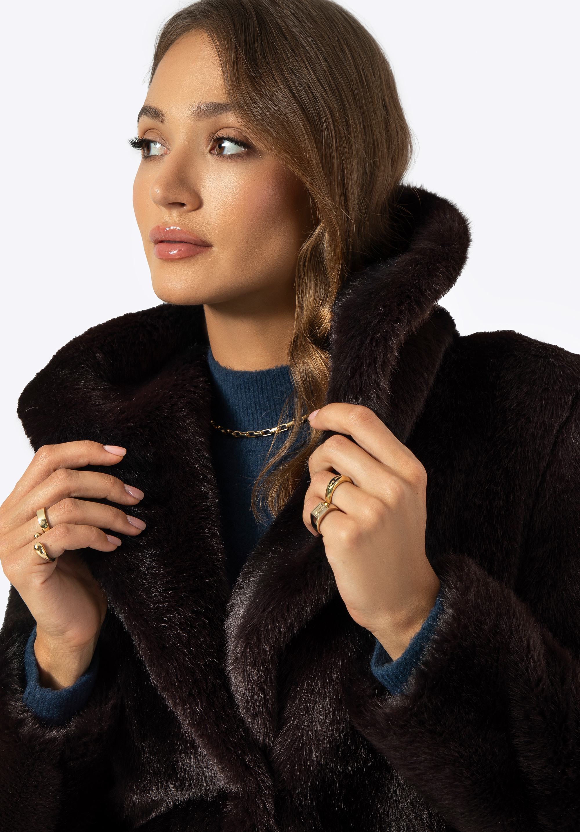- Штучне хутро: м’яке, розкішне – забезпечує комфорт при носінні та чудовий зовнішній вигляд.