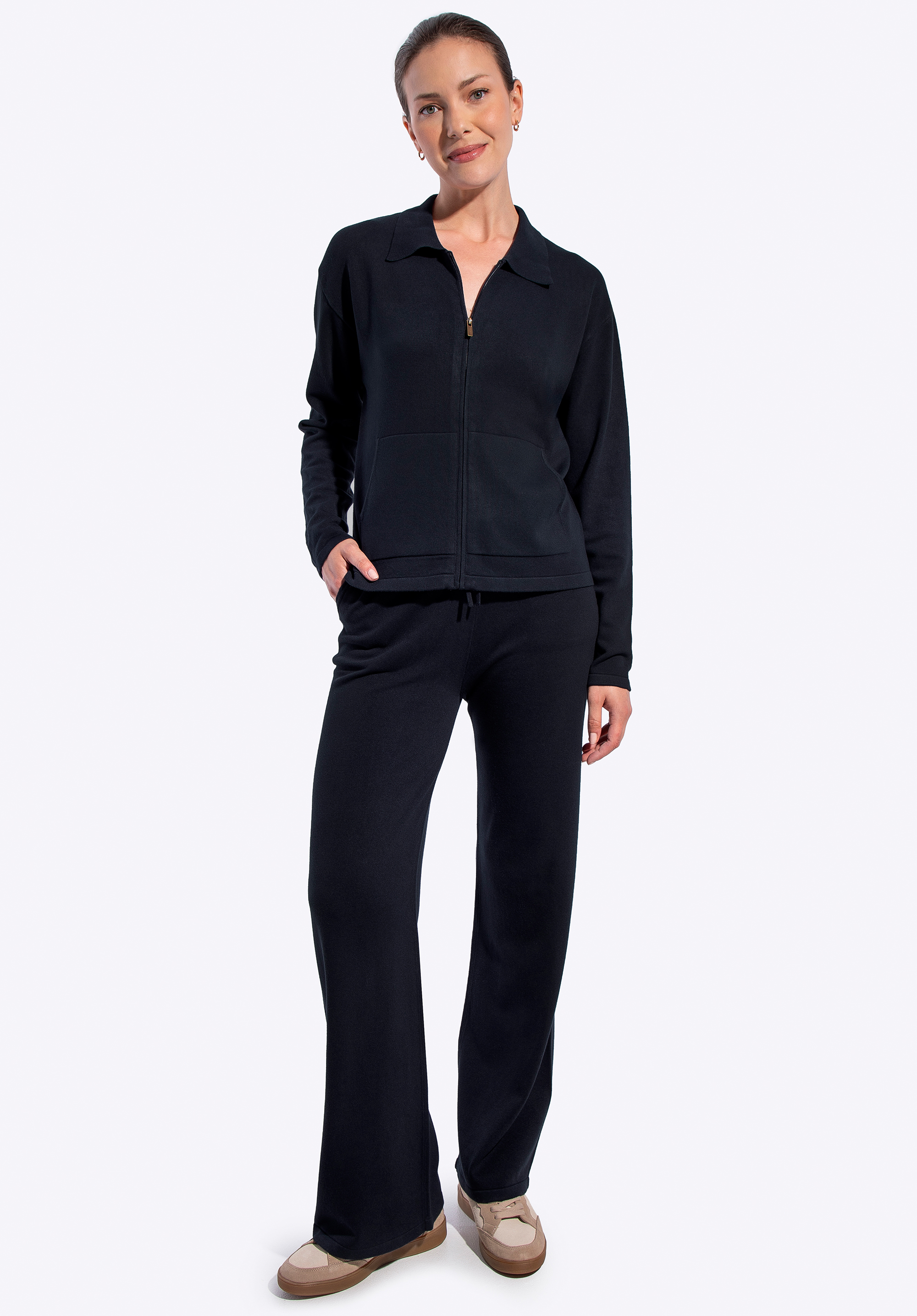 Наша порада: носіть його з джинсами або трикотажними штанами в прохолодні дні. У поєднанні з сорочкою та парою лоферів він створює зручний, але вишуканий образ, ідеальний для осінньо-зимового сезону. Якщо ви любите узгоджені образи, поєднуйте його зі штанами тієї ж в'язки – ви отримаєте готовий комплект, який поєднує комфорт та елегантність.